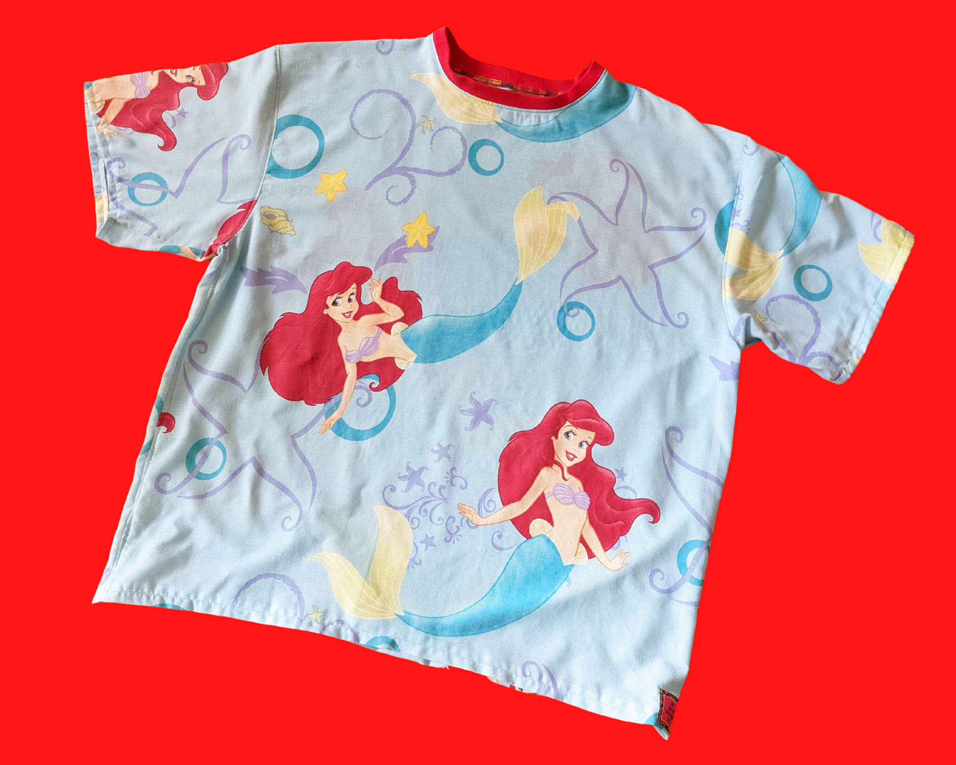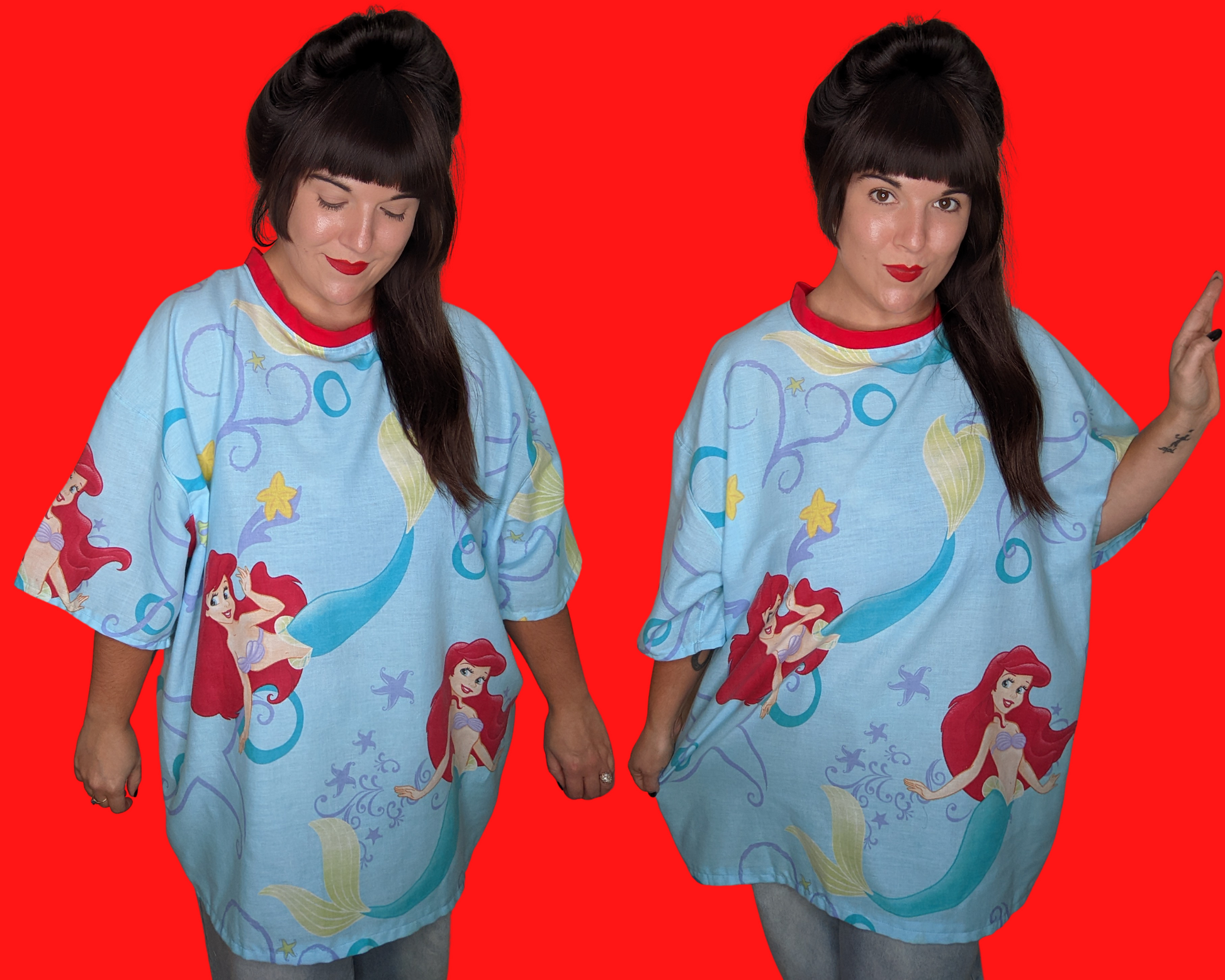 Fait à la main, Upcycled Vintage The Little Mermaid Bedsheet T-Shirt Oversized XL