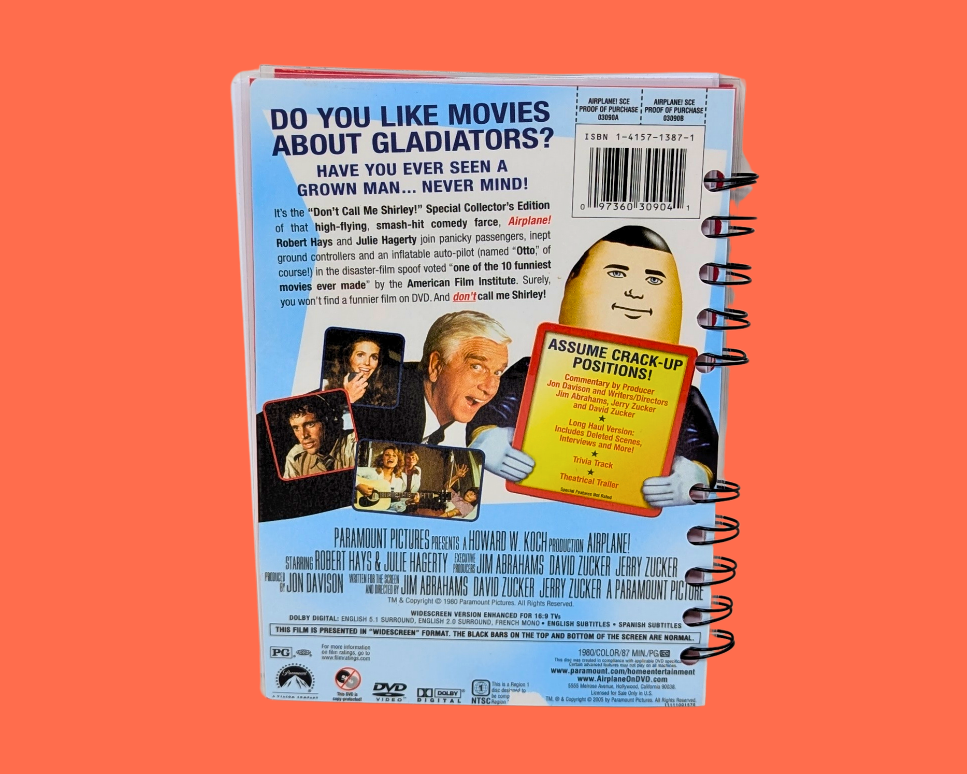• Avion ! Carnet de film DVD fabriqué à partir d'une feuille de DVD vintage recyclée.