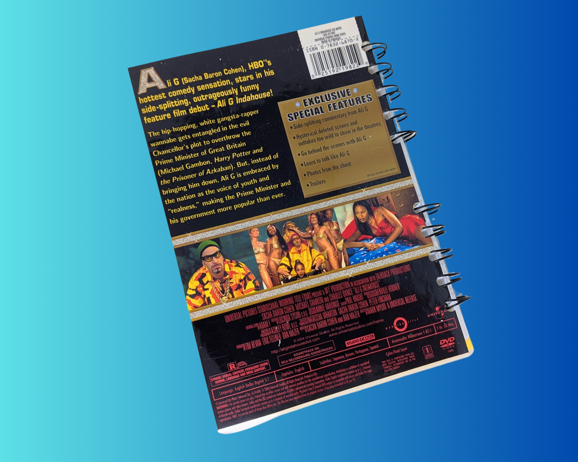 • Ali G INDAHOUSE The Movie DVD Movie Notebook made from a vintage, upcycled DVD sheet.