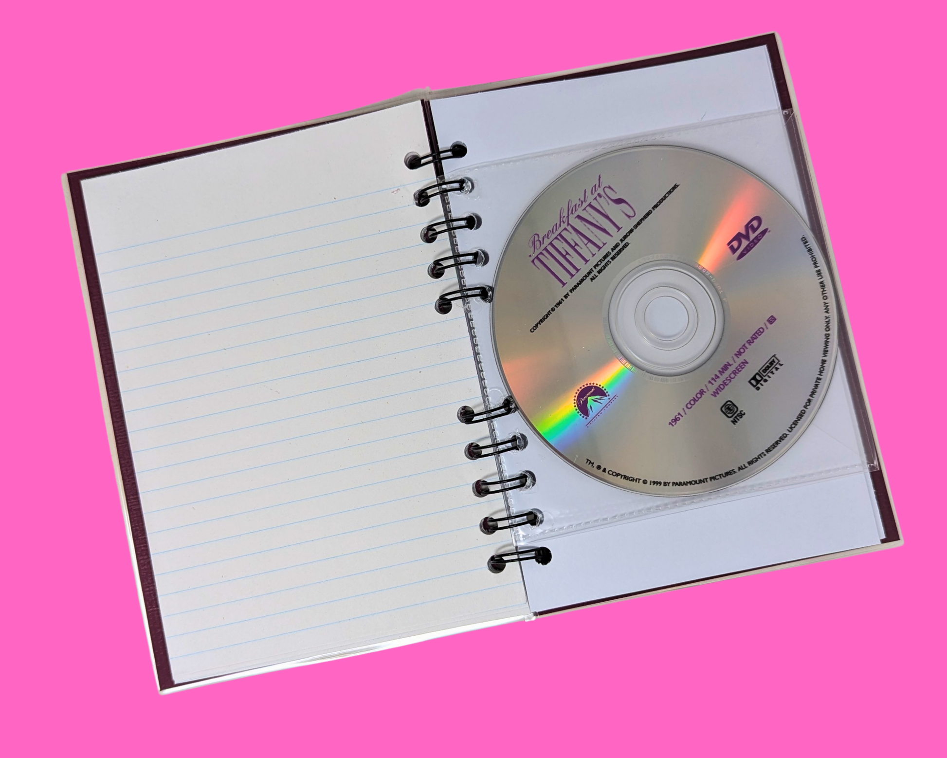 • Carnet de notes du film DVD Breakfast at Tiffany's réalisé à partir d'une feuille de DVD vintage recyclée.