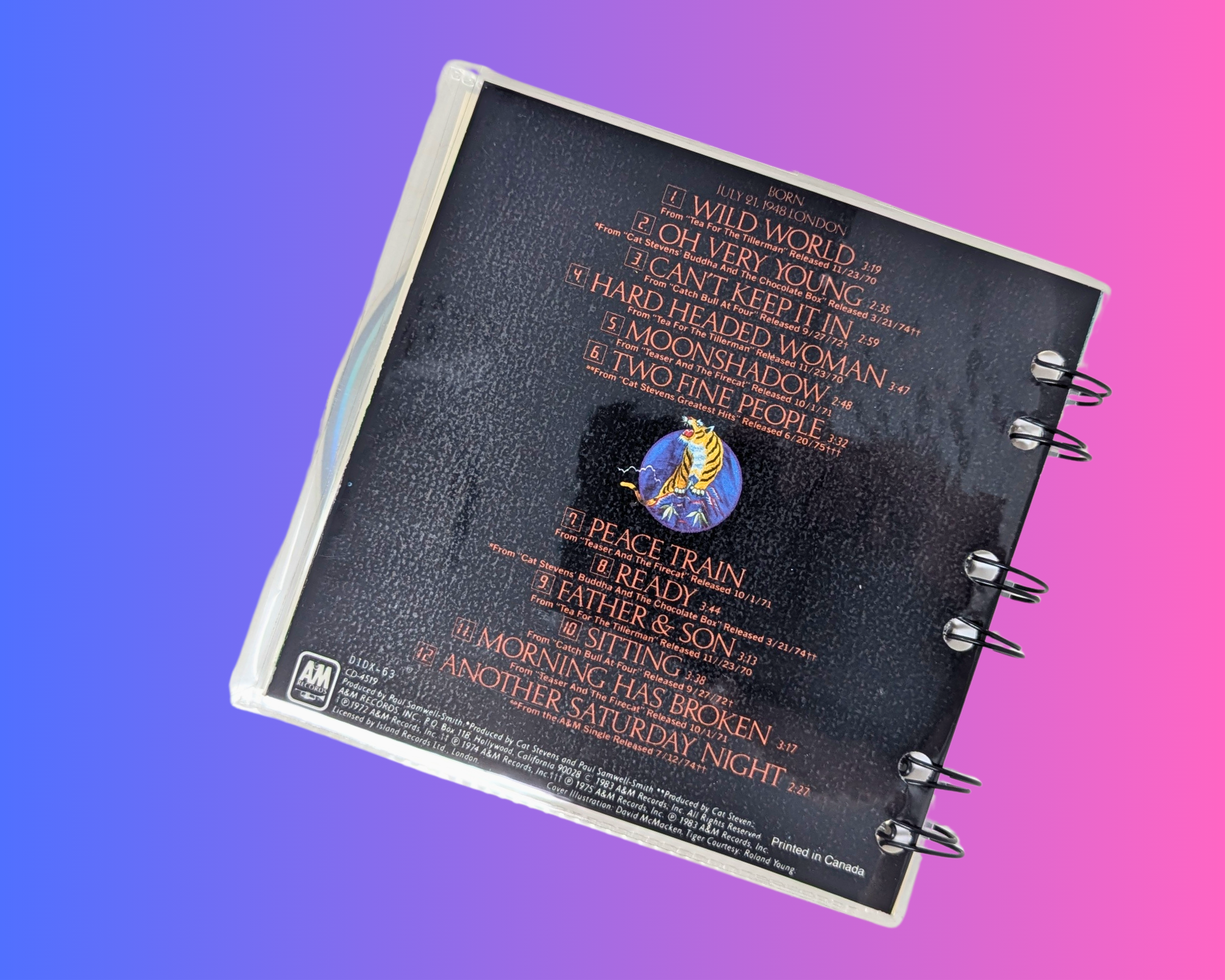 • Carnet CD Cat Stevens, Greatest Hits fabriqué à partir d'une couverture et d'une pochette de CD recyclées.
