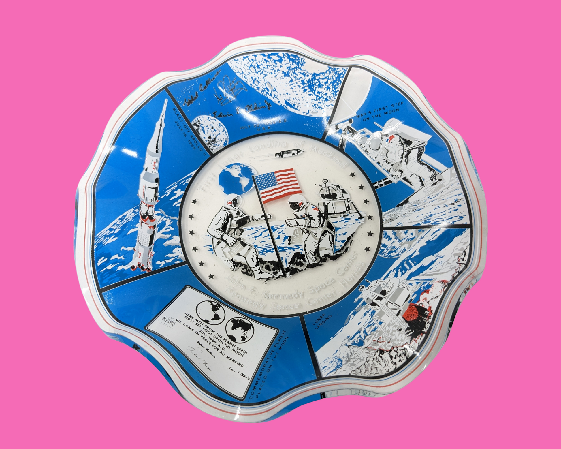 Vintage 1960's John F Kennedy Space Center First Lunar Landing of Mankind Souvenir Tray Dish