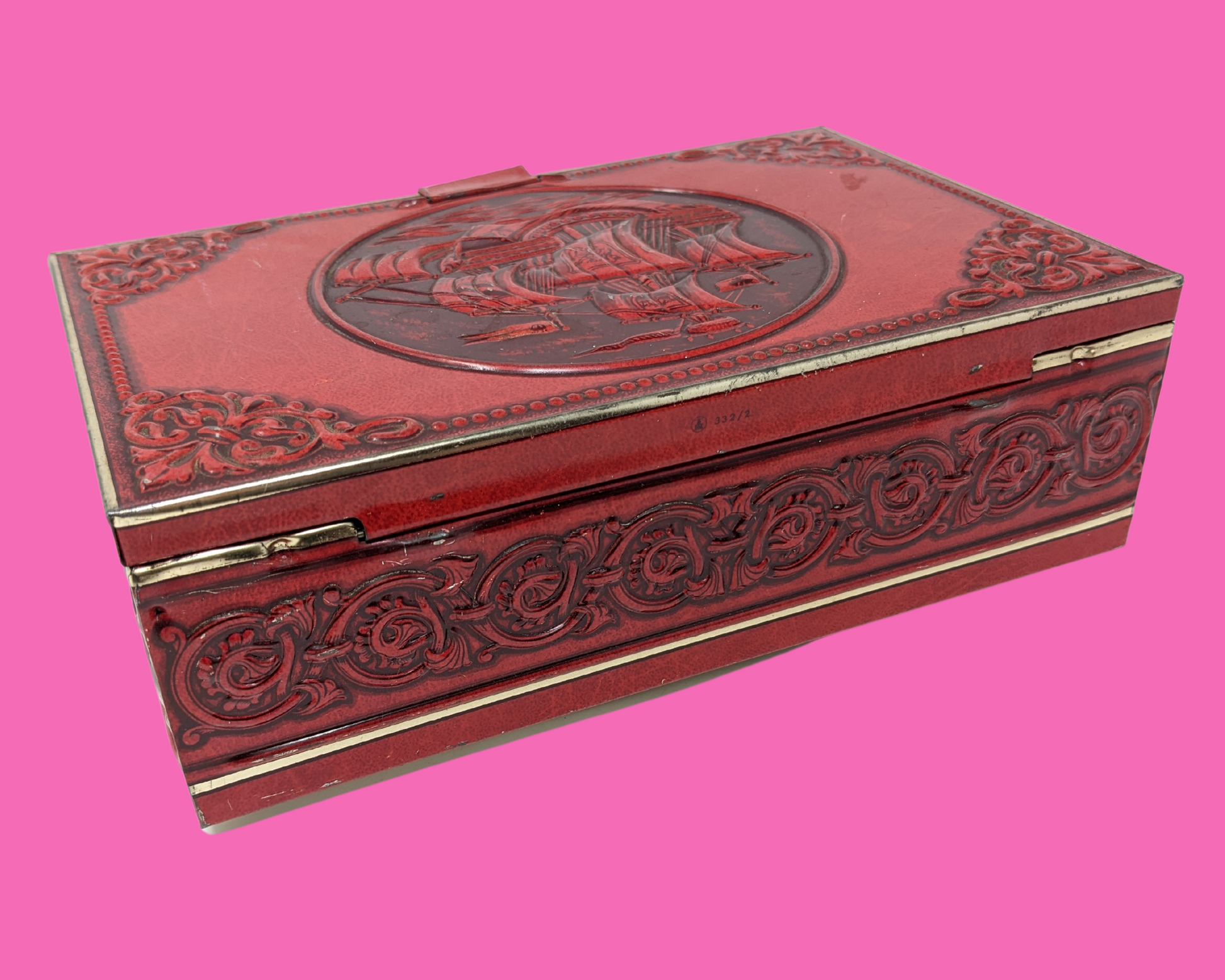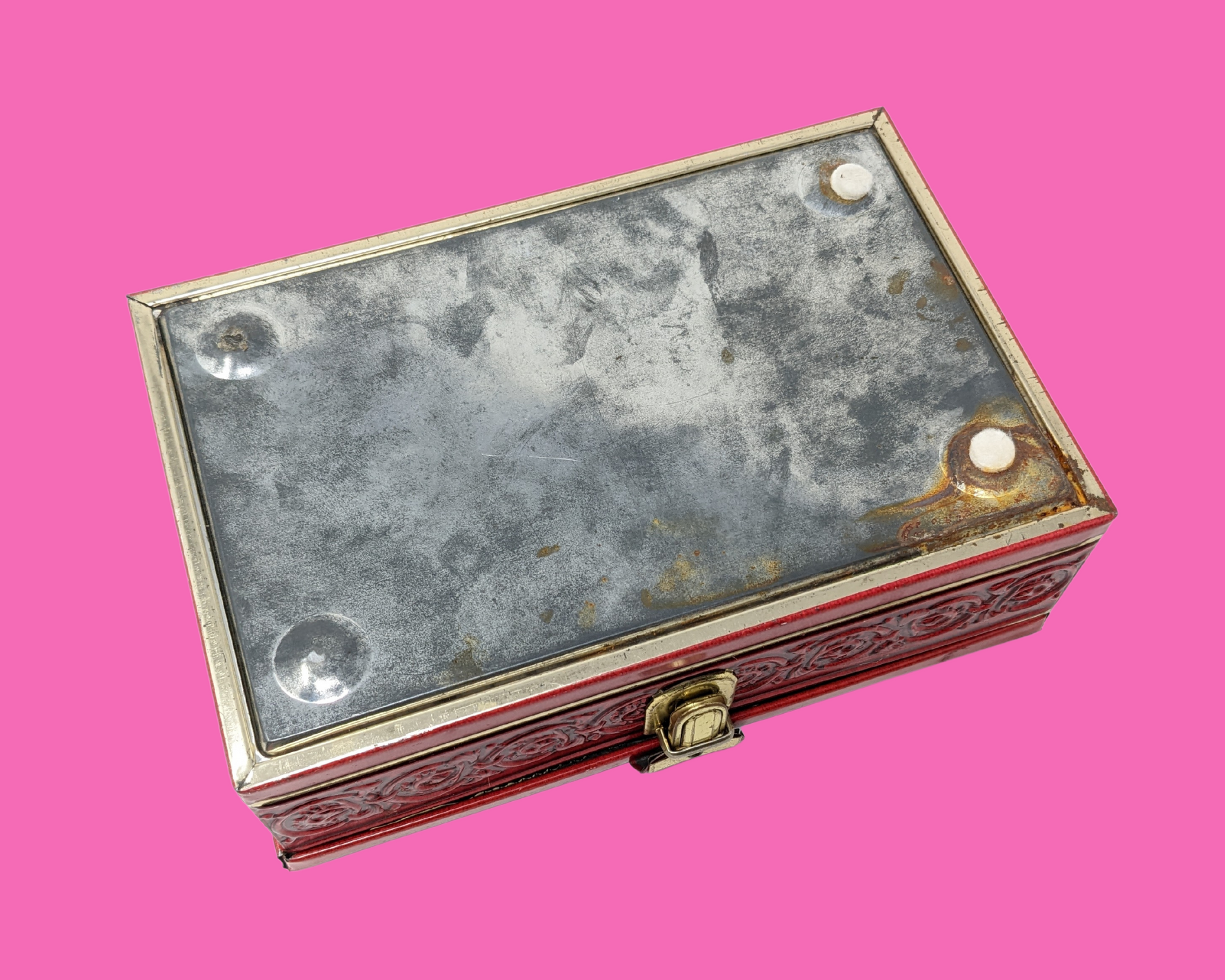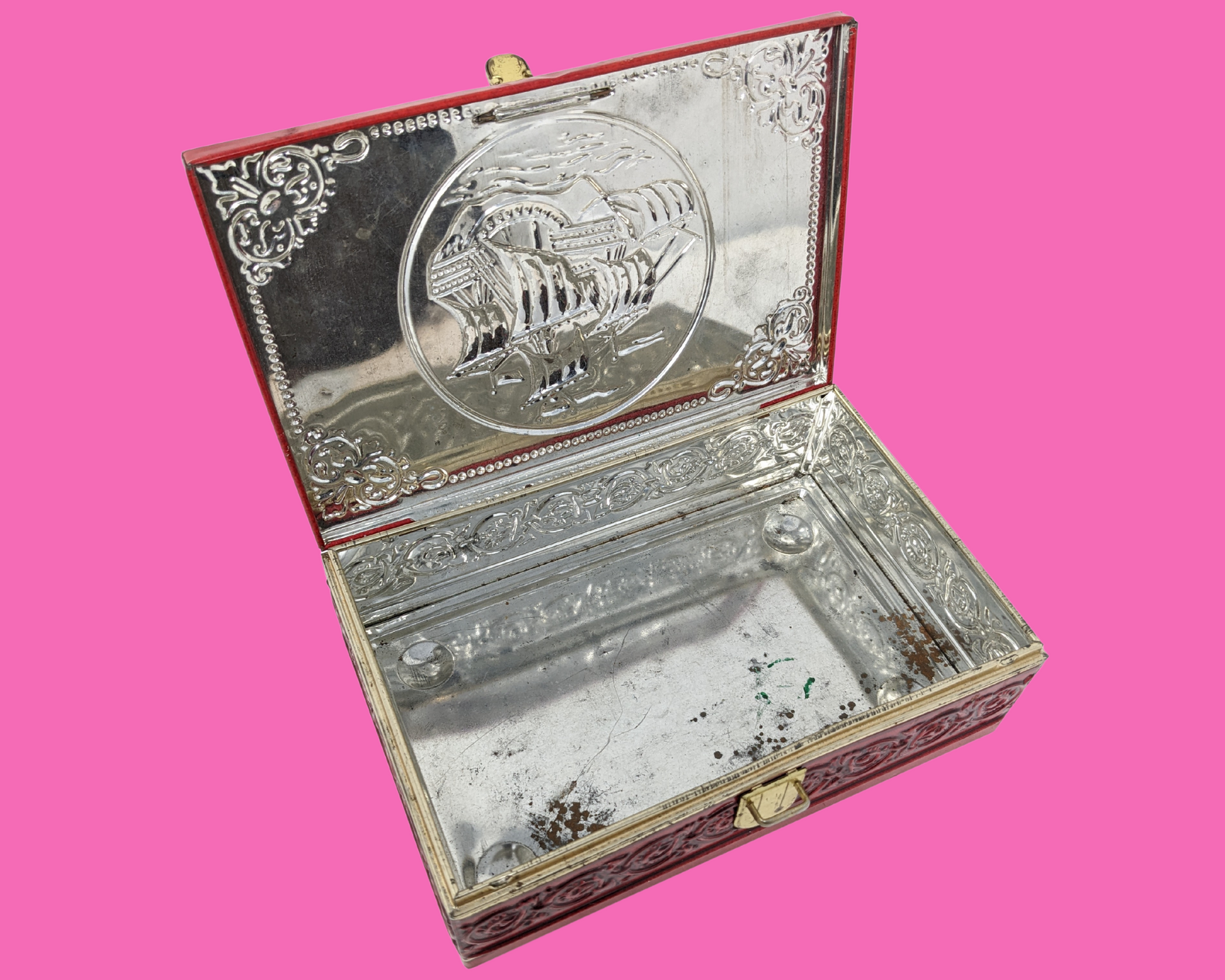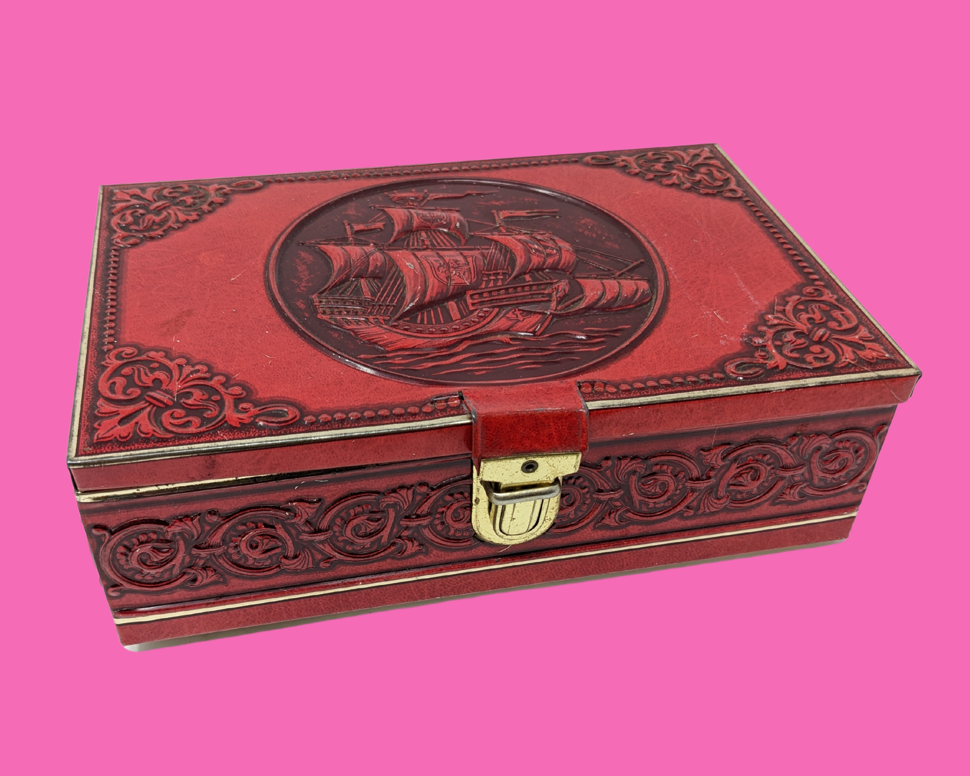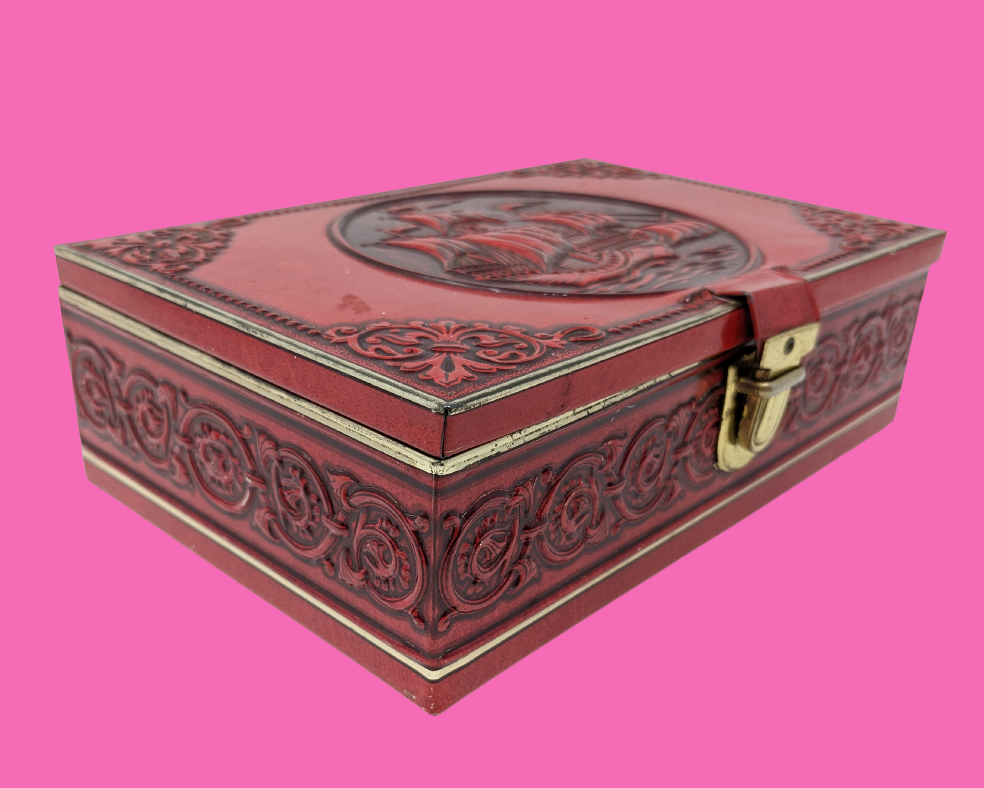 Boîte en étain rouge pour navire d'exploration des années 1980