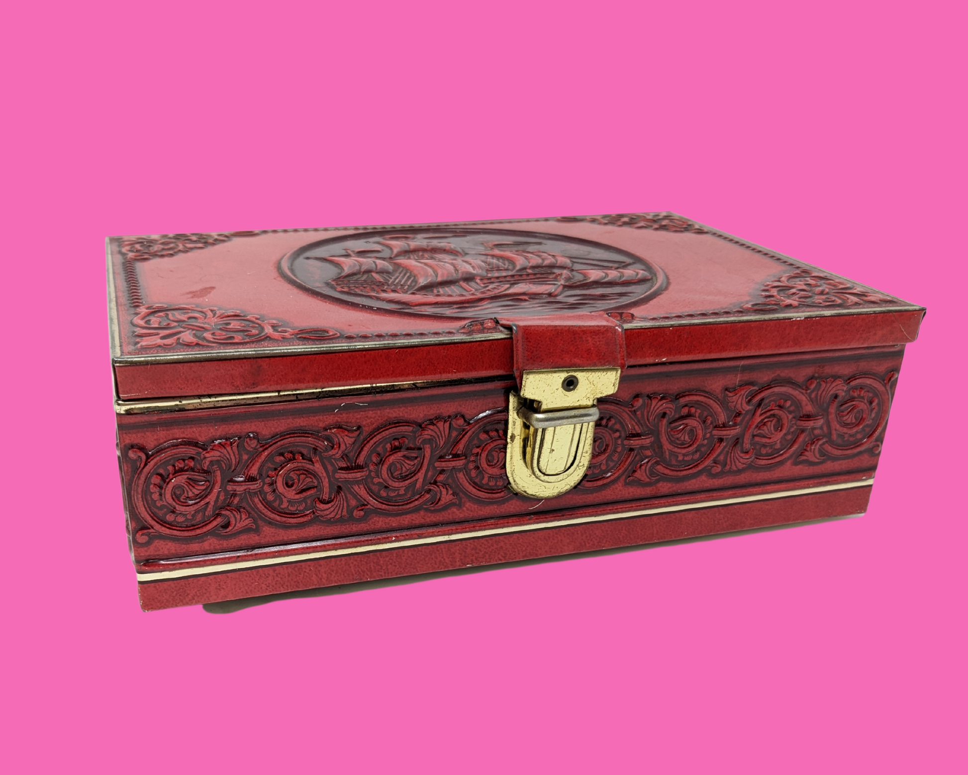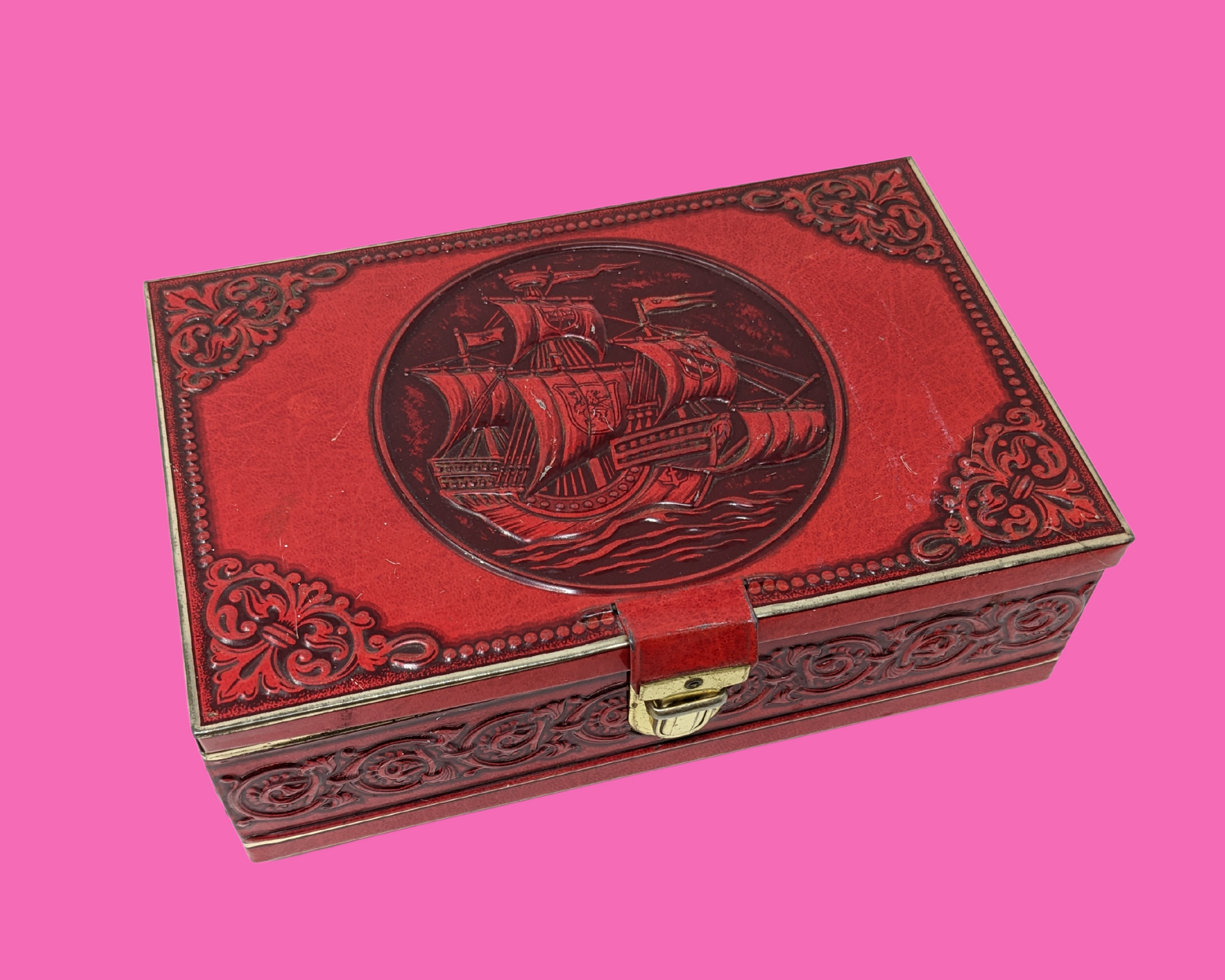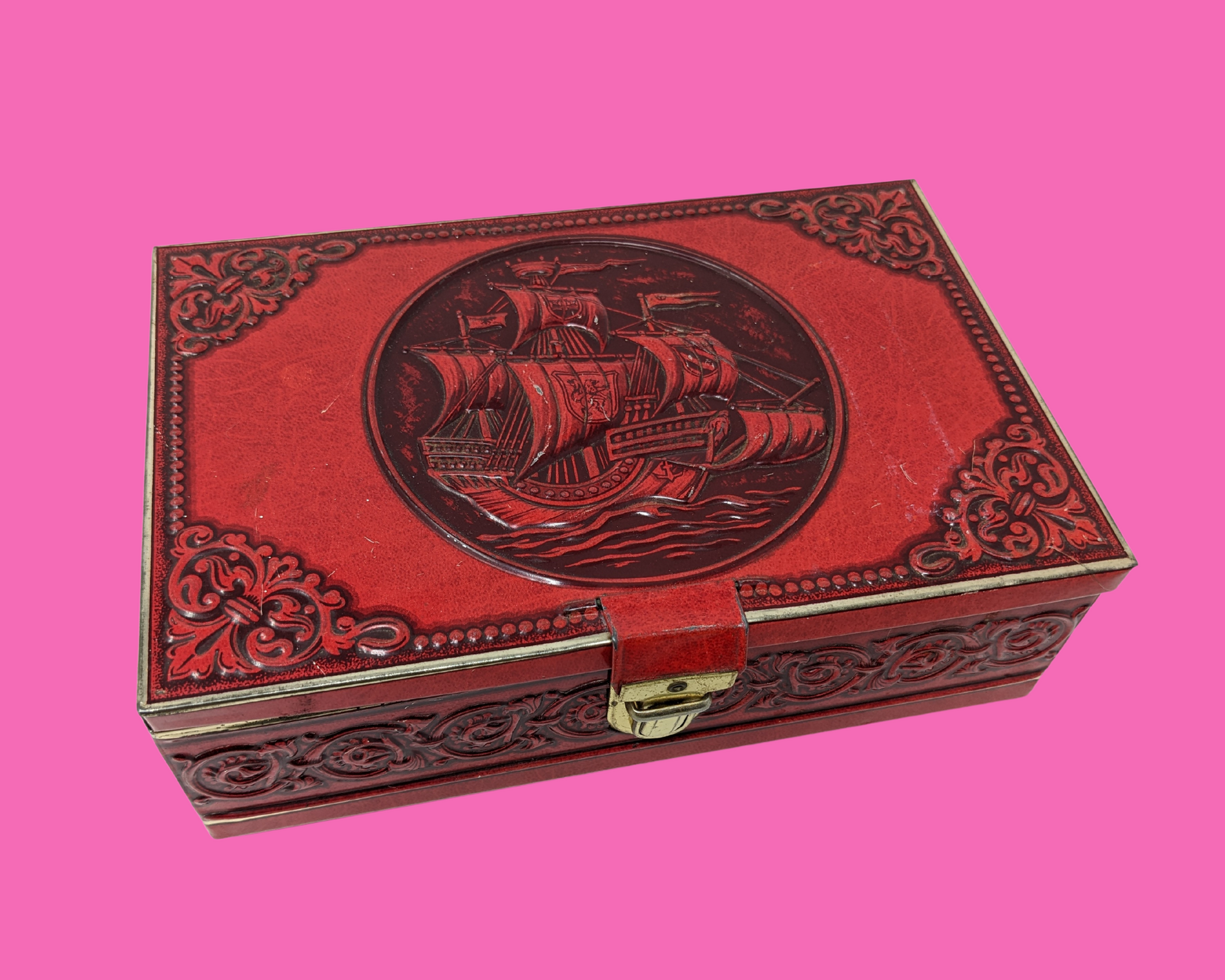 • Boîte en métal rouge pour navire d'exploration vintage des années 1980