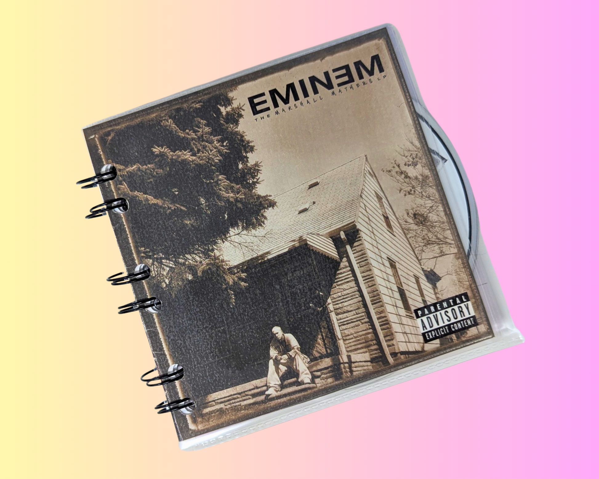 • Carnet CD Eminem, The Marshall Mathers LP fabriqué à partir d'une couverture et d'une pochette de CD recyclées.