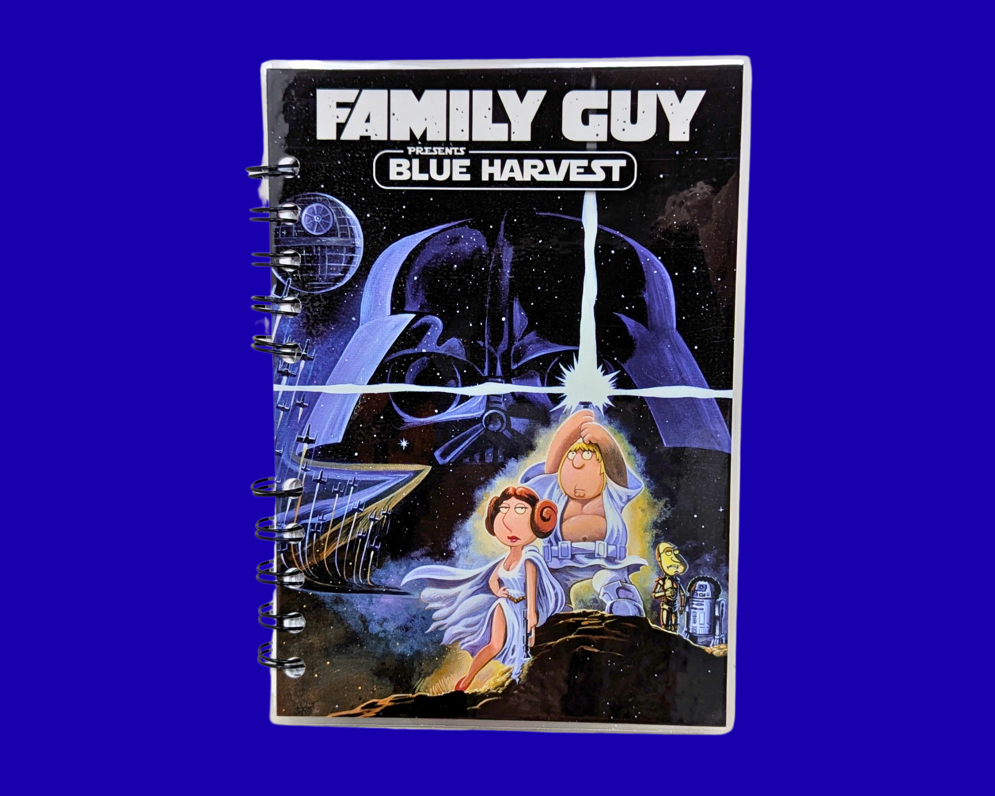• Family Guy présente le carnet de notes du film DVD Blue Harvest fabriqué à partir d'une feuille de DVD vintage recyclée.