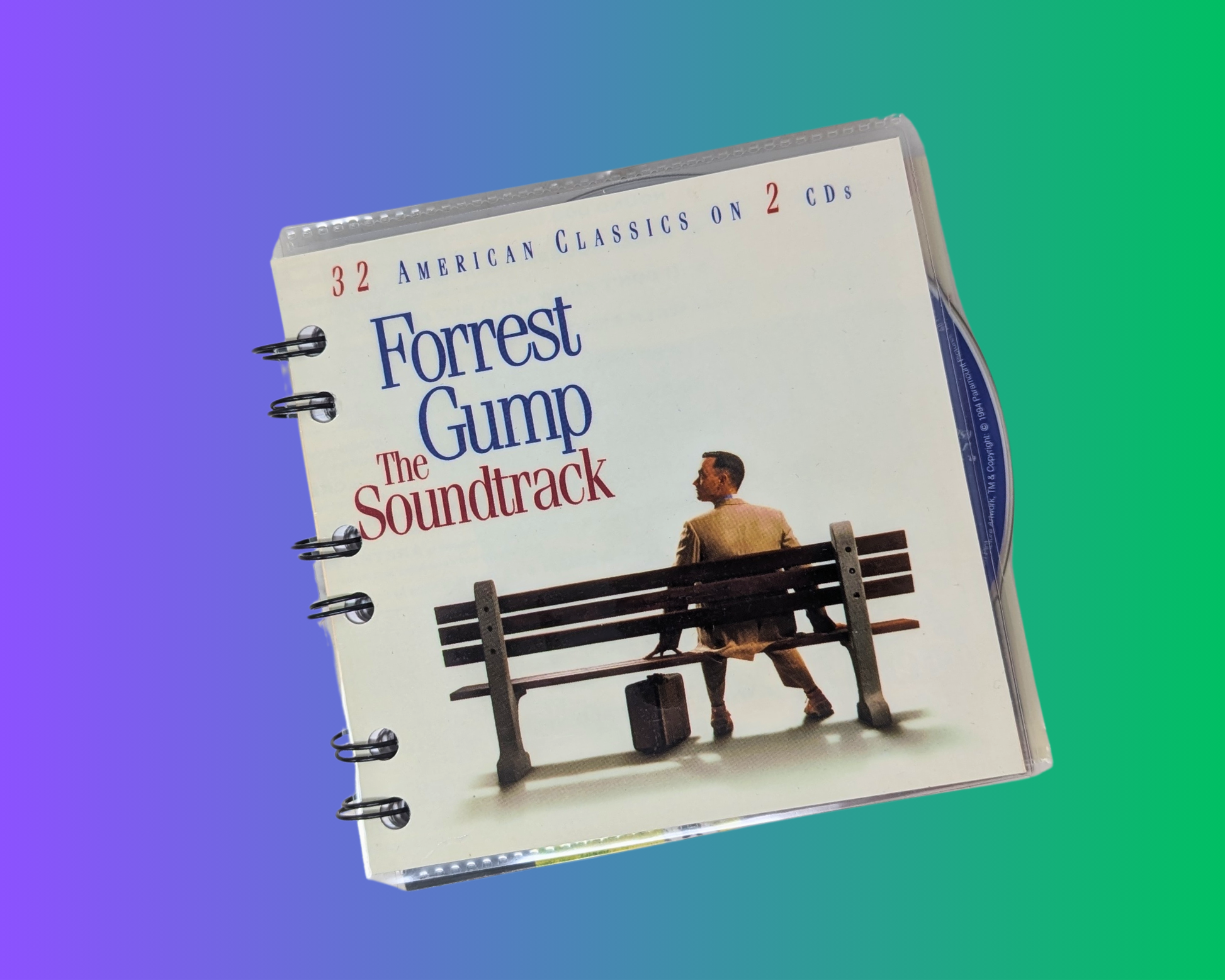 • Forrest Gump The Soundtrack CD Notebook made from an upcycled CD cover and sleeve.