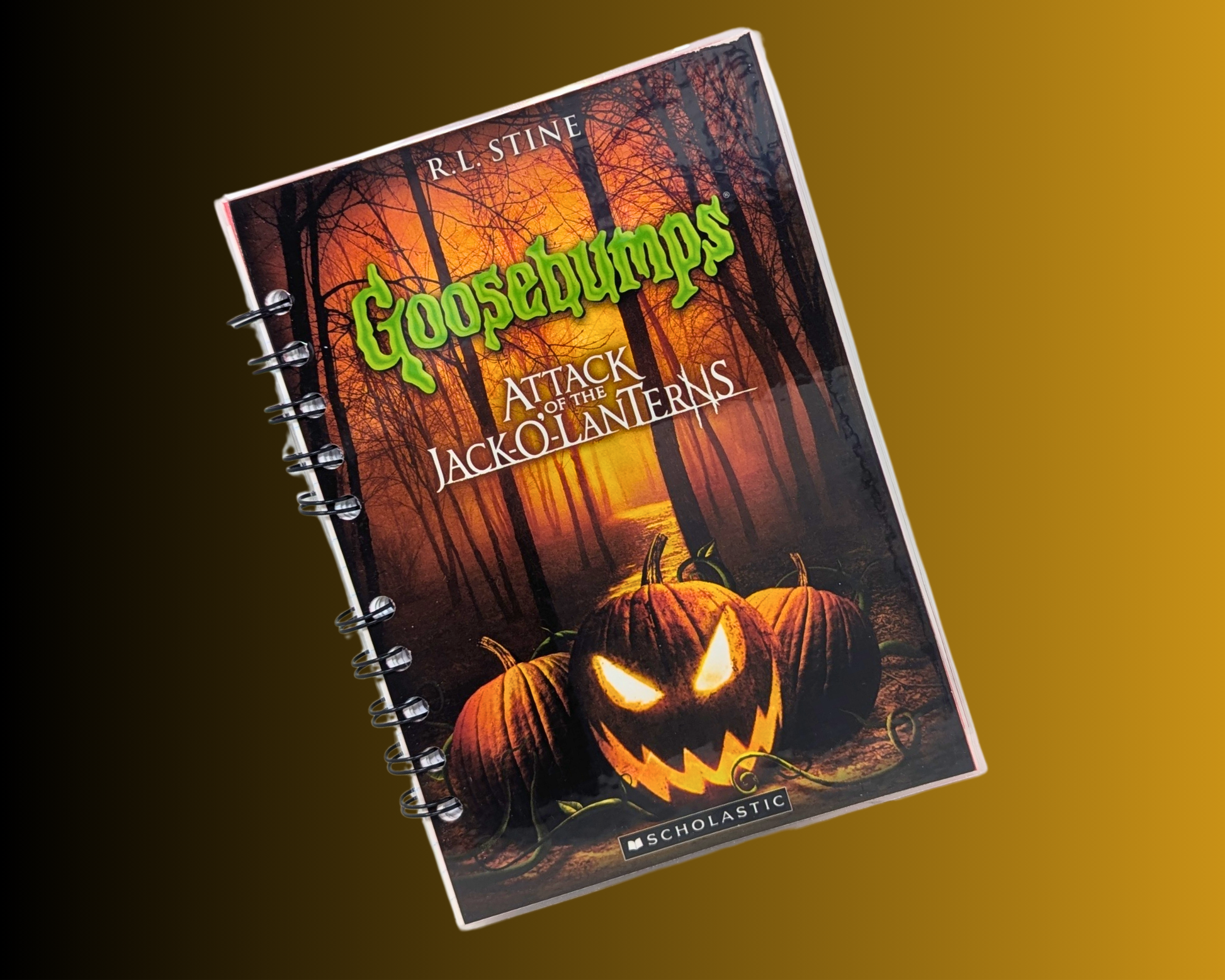 • Carnet de notes du film DVD Chair de poule, L'Attaque des Jack-O-Lanterns fabriqué à partir d'une feuille de DVD vintage recyclée.
