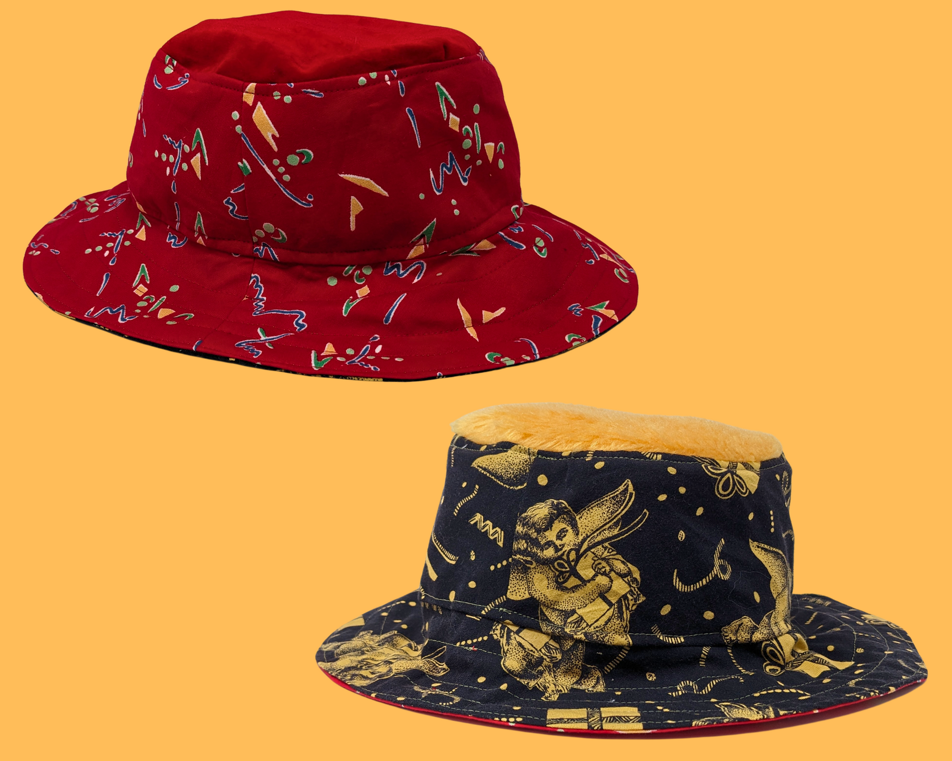• Chapeau seau réversible en tissu fait main et recyclé des années 90 et Y2K pour sac de sport