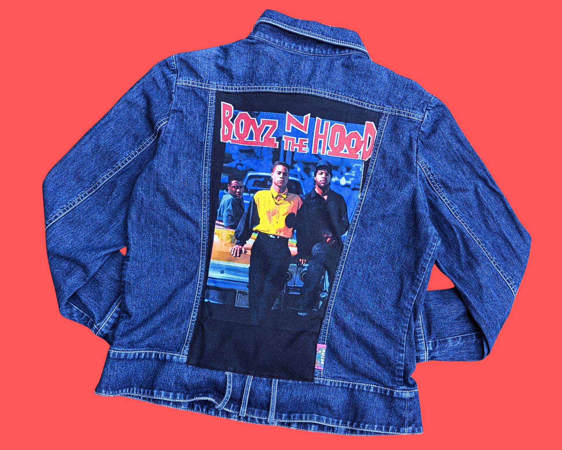 • Veste en jean Boyz N The Hood faite à la main et recyclée, taille L-XL