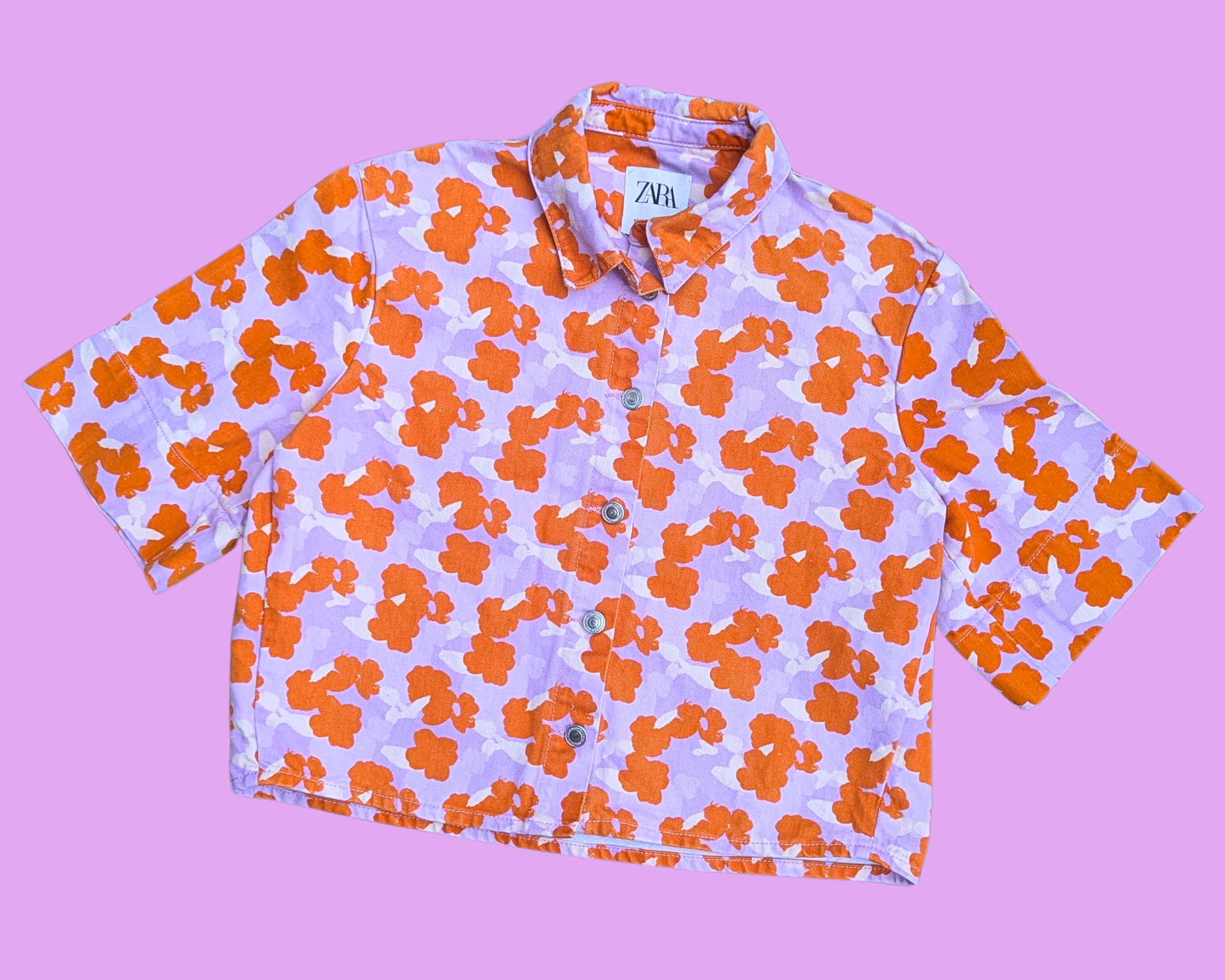 • Handmade, Upcycled Britney Spears, Short Sleeves, Floral Denim Jacket Size XS