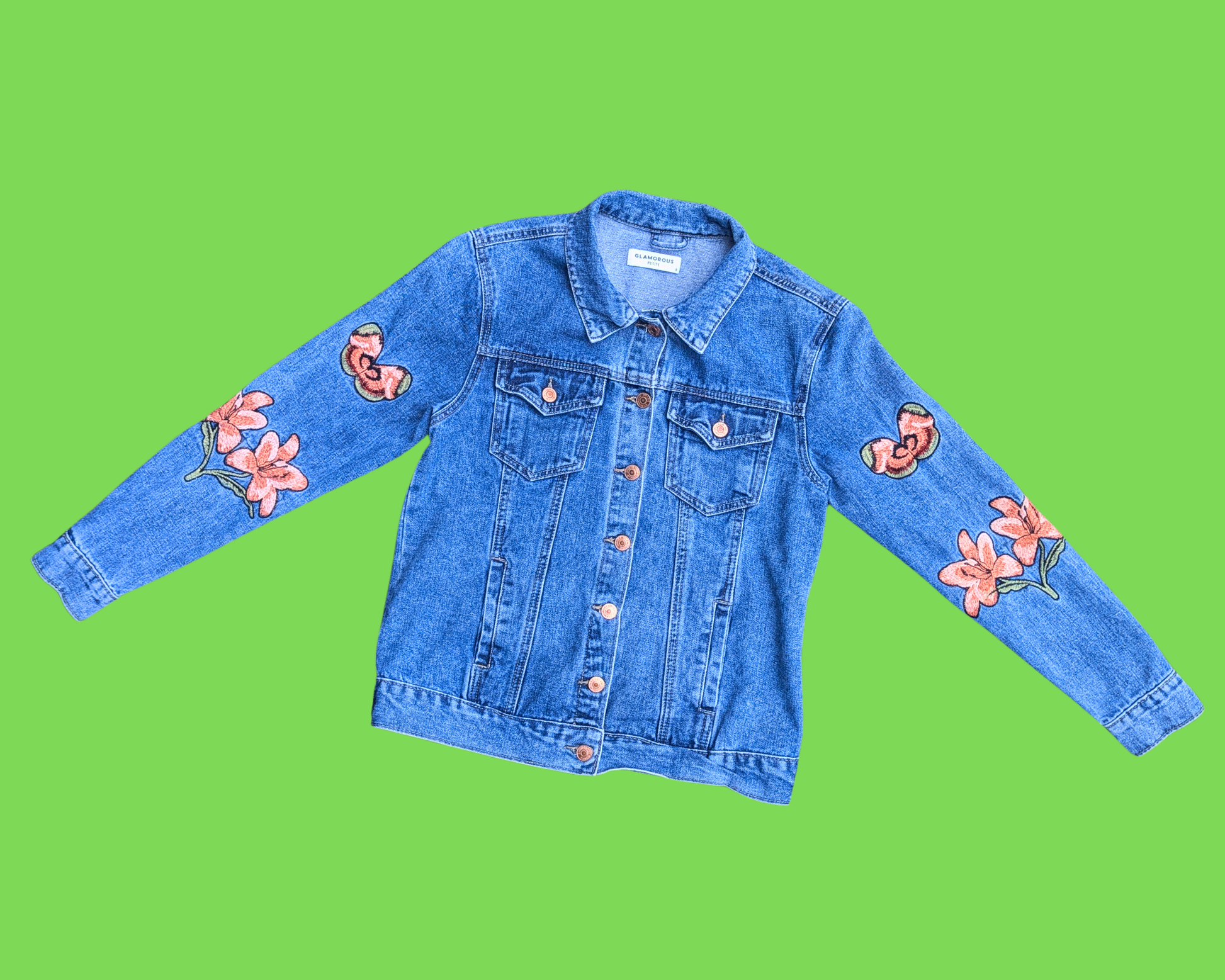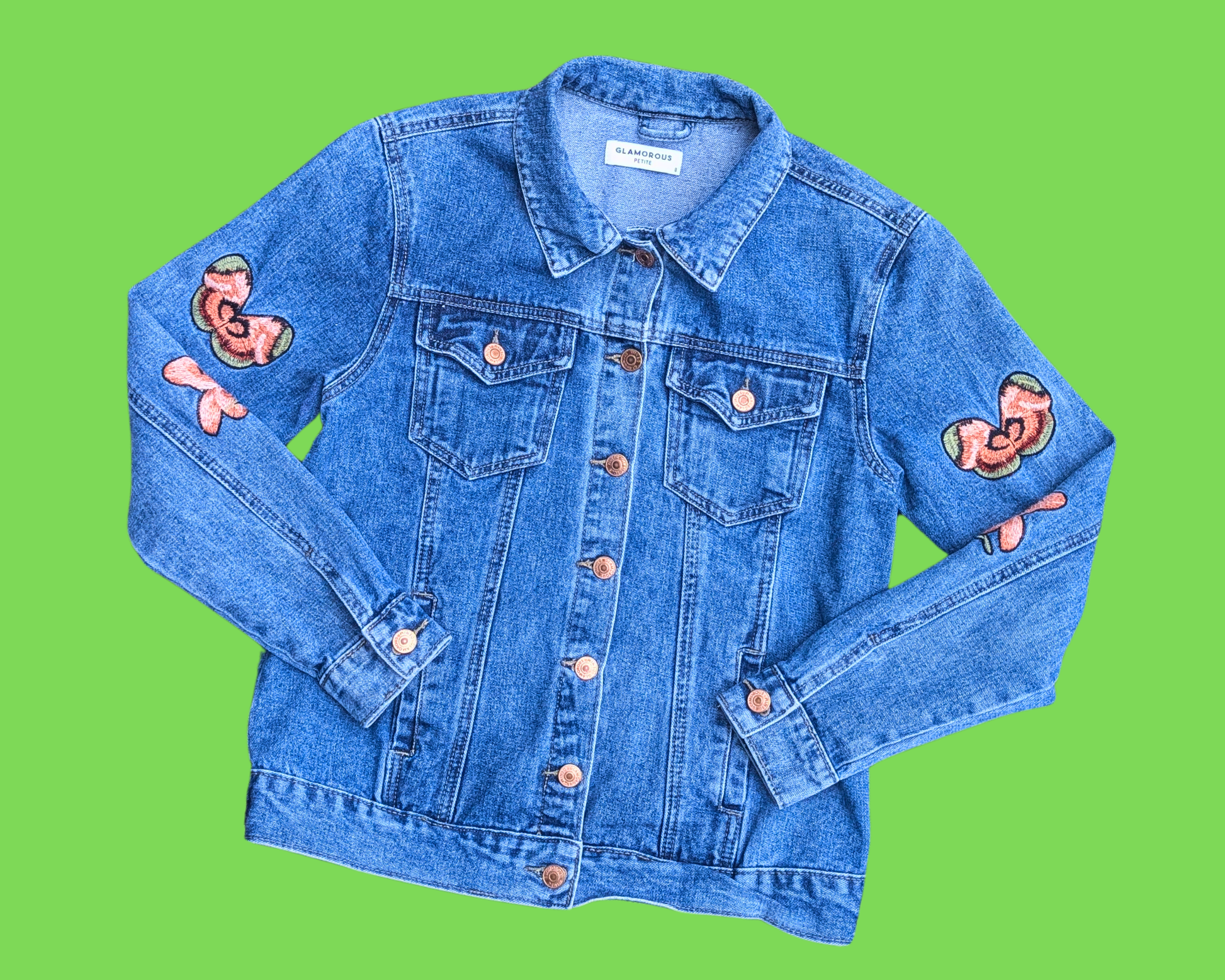 Handmade, Upcycled Cheshire Cat from Alice in Wonderland Denim Jacket Size 8 (M)