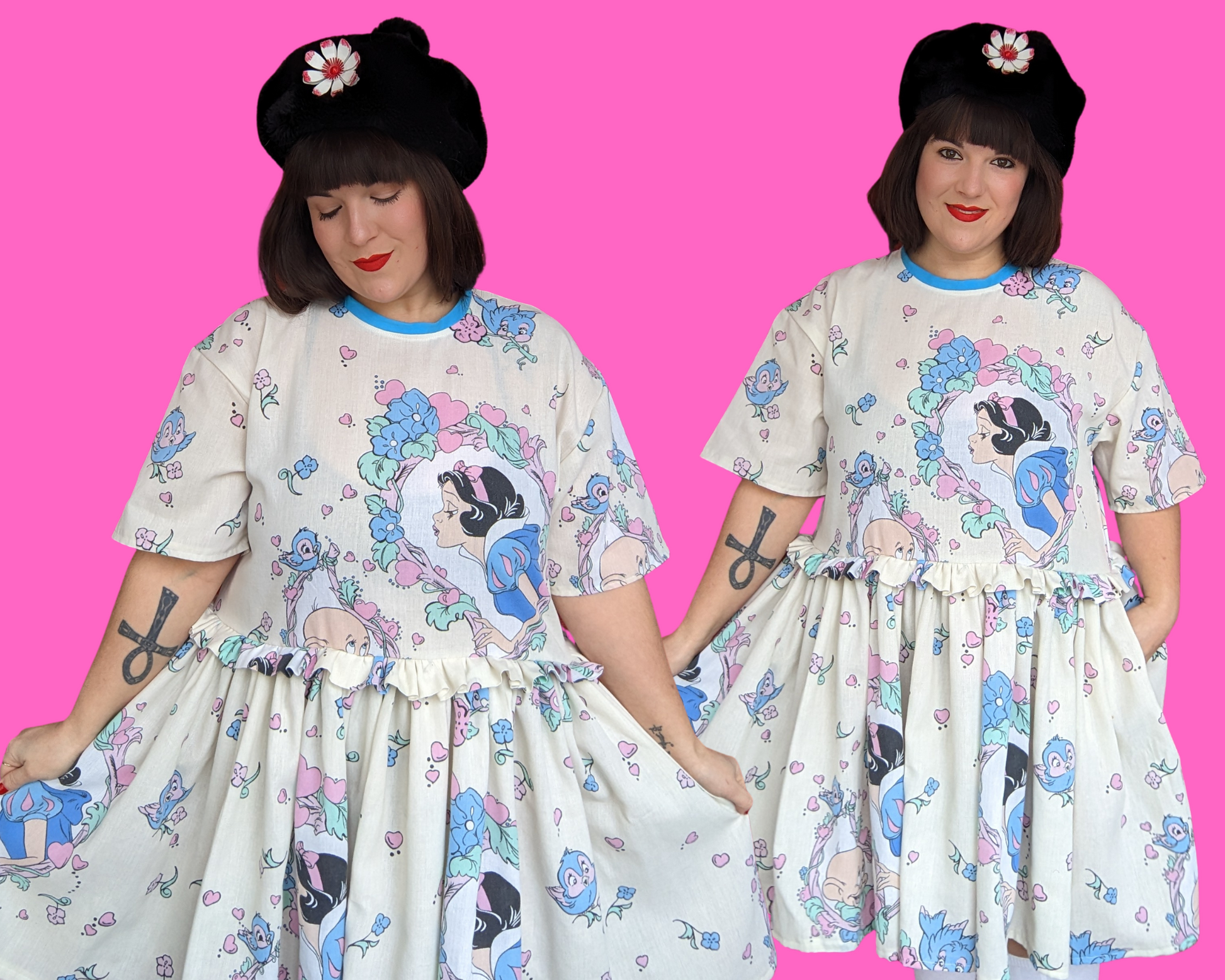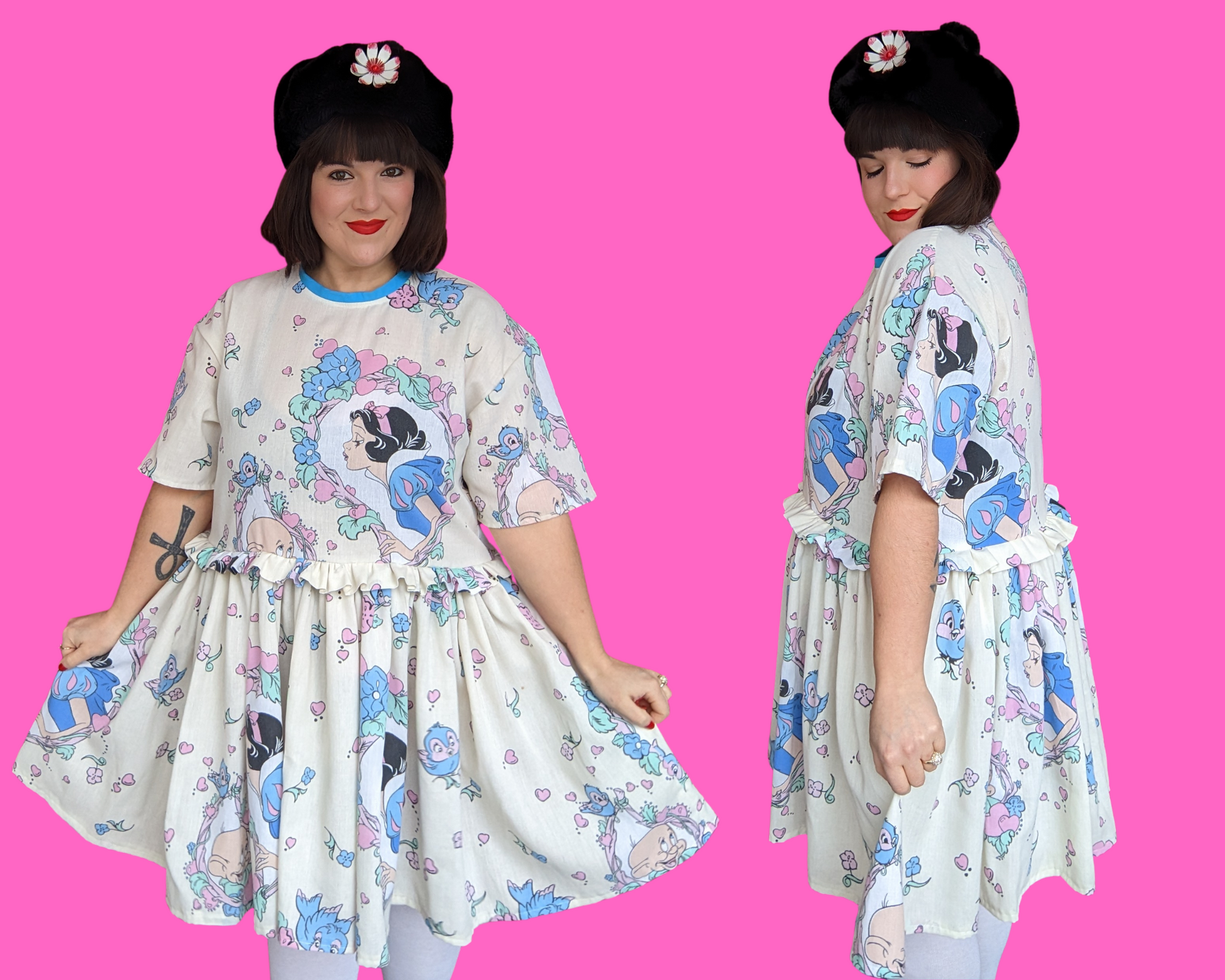 Veuillez considérer que ces robes sont faites à la main et fabriquées à partir de t-shirts, de tissus ou de draps vintage. Des imperfections sont à prévoir. Les plus grosses taches, les trous seront mentionnés ci-dessous. Attendez-vous à des défauts plus petits qui peuvent ne pas être spécifiés, ainsi qu'à des points imparfaits. Attention, ne tirez pas trop dessus.