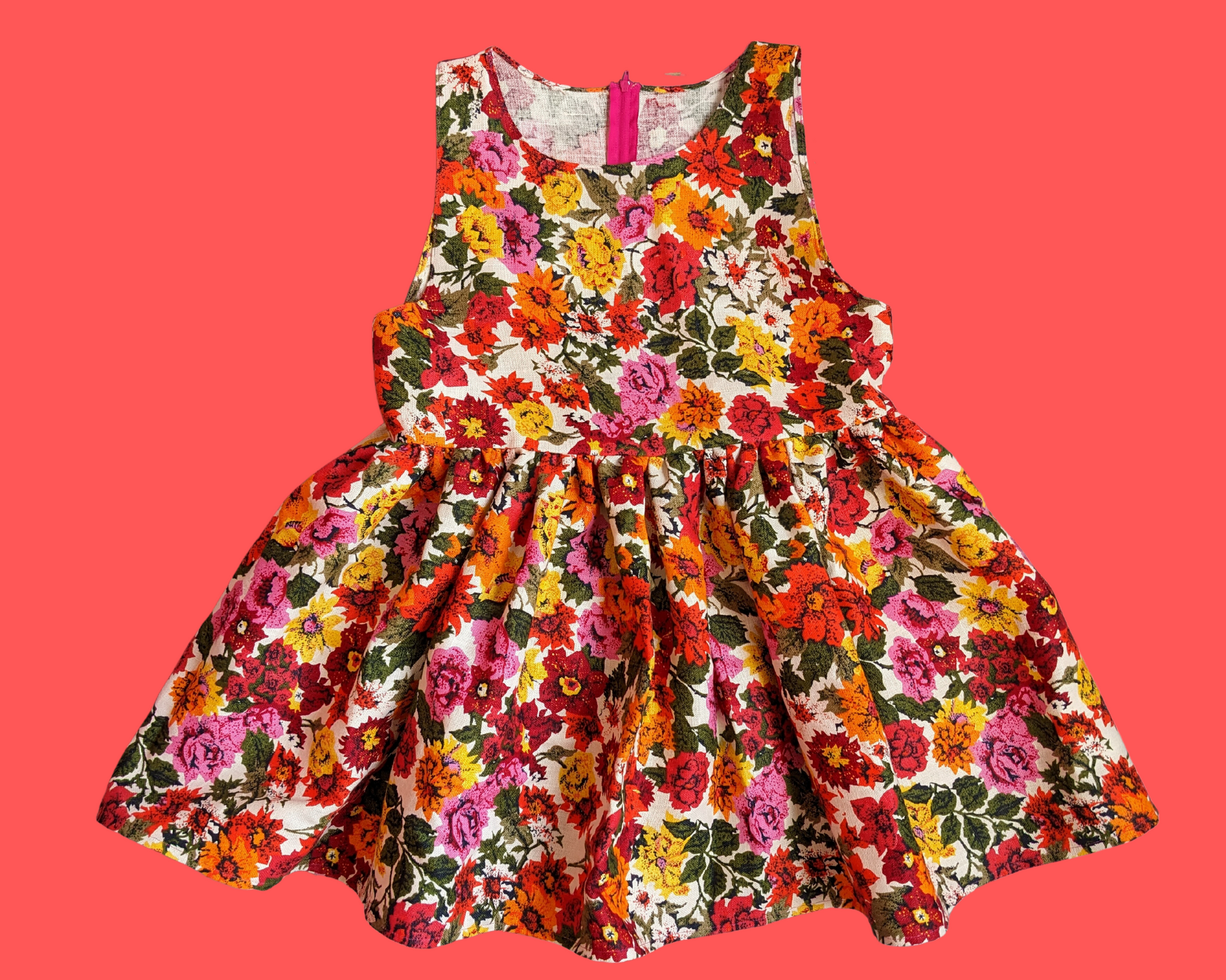 Fait à la main, modèle LOLA Lola recyclé, drap de lit Holly Hobbie, robe sans manches, corsage doublé et poches taille SM