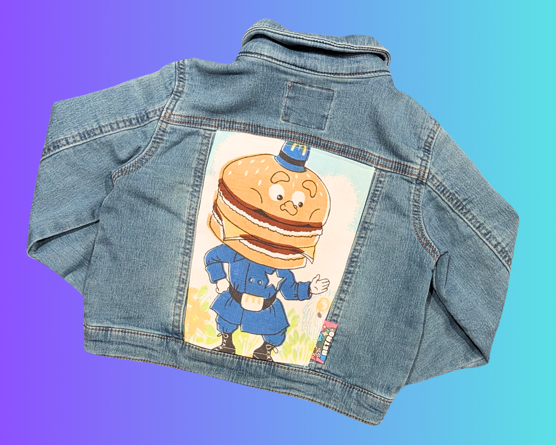 • Handmade, Upcycled McDonald's Officer Big Mac Denim Jacket Size 3 Years Old