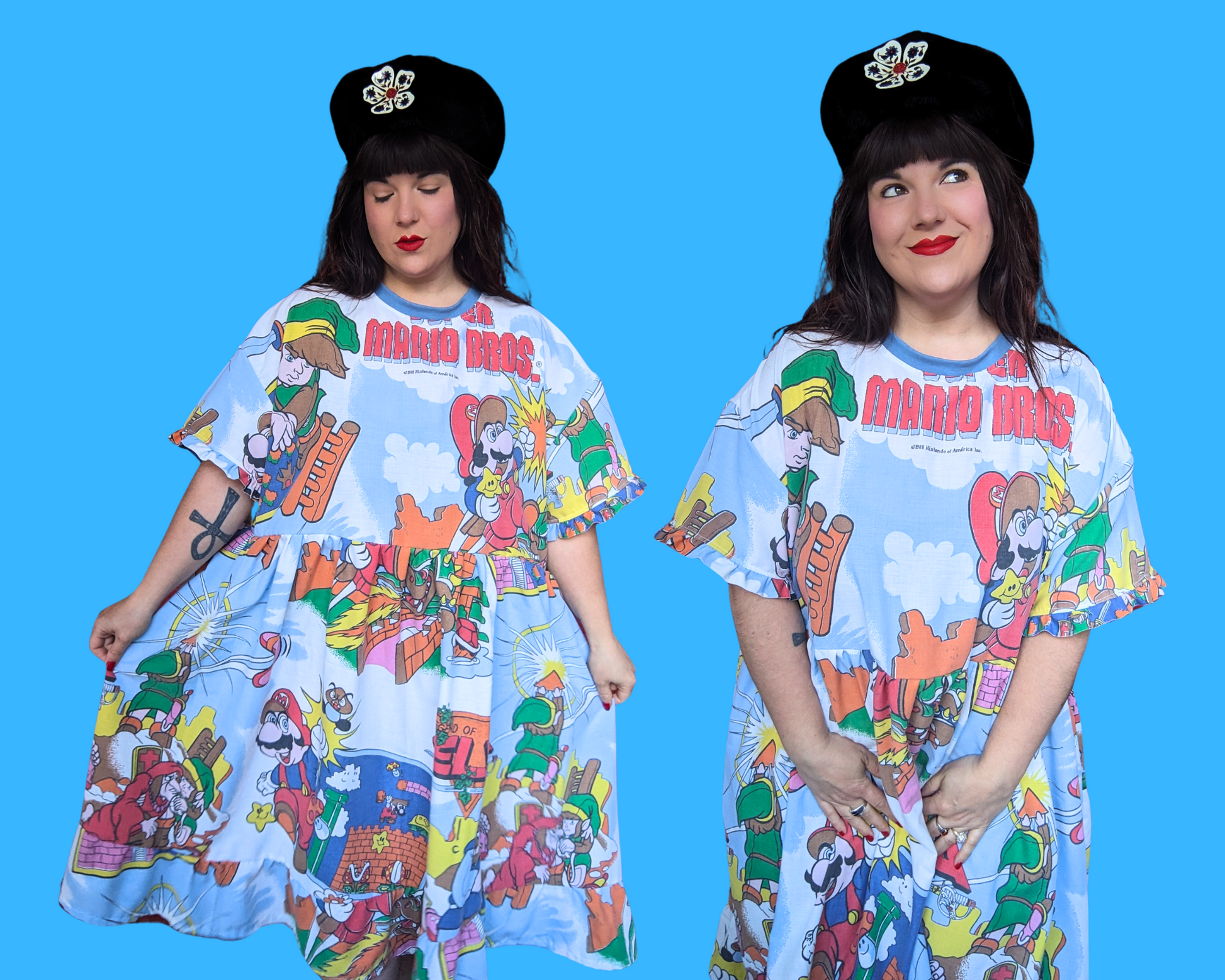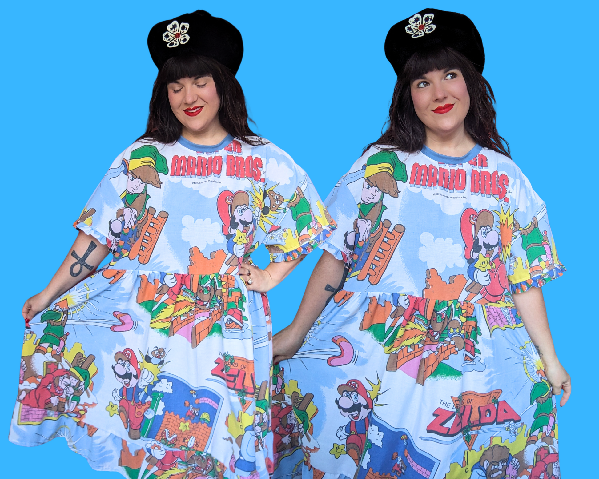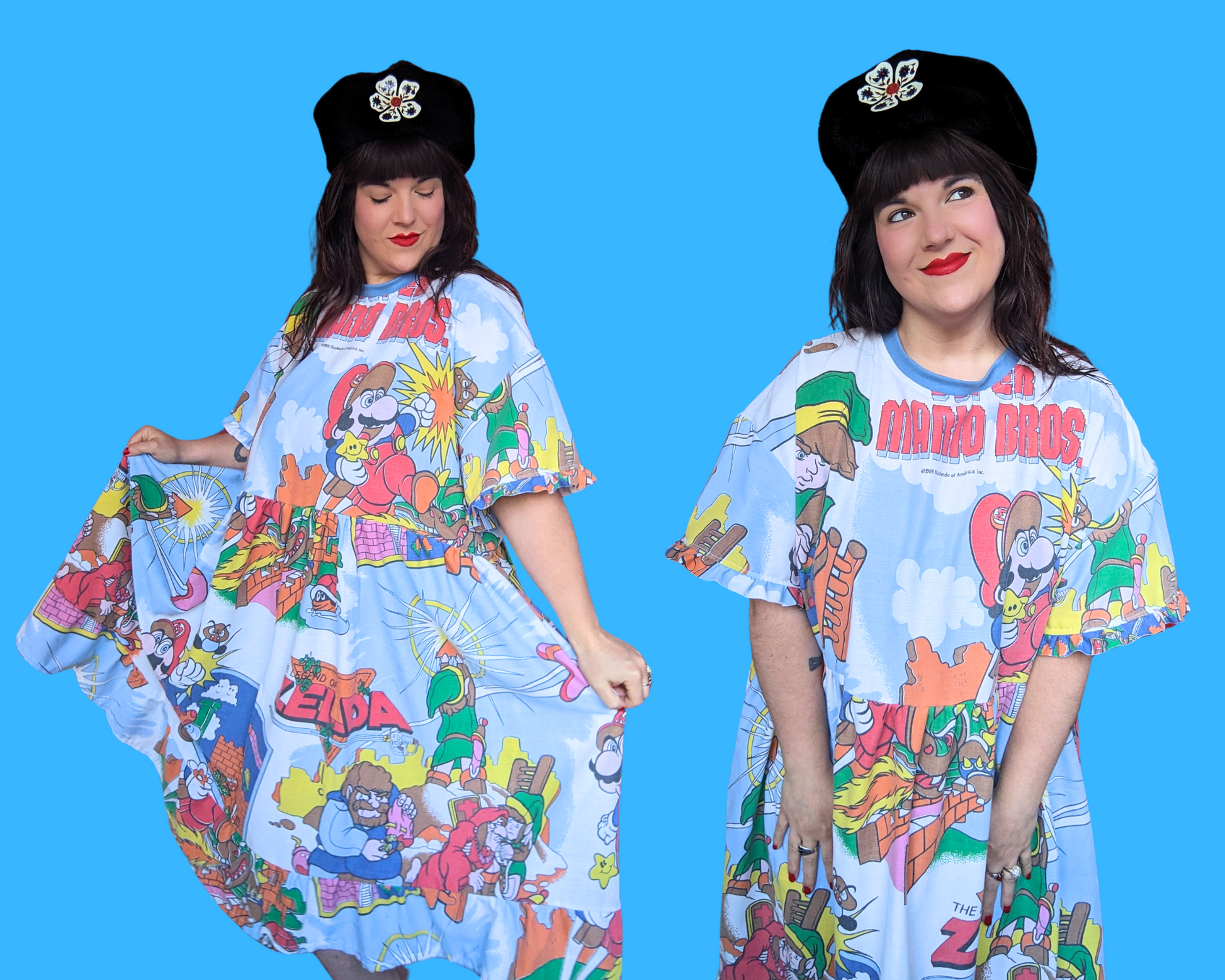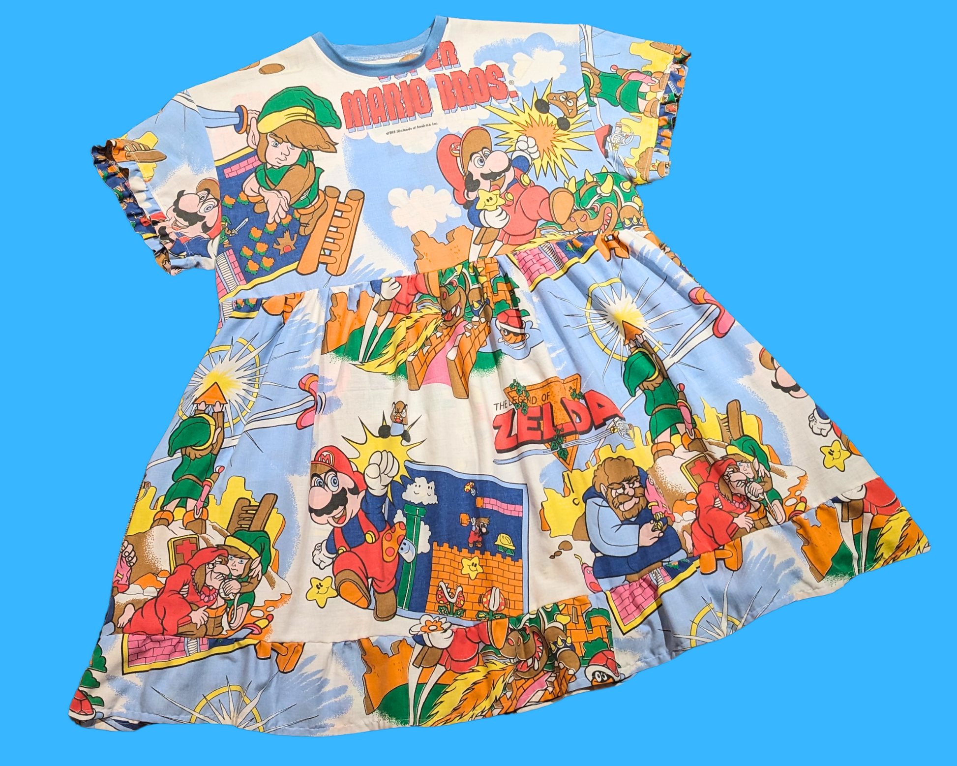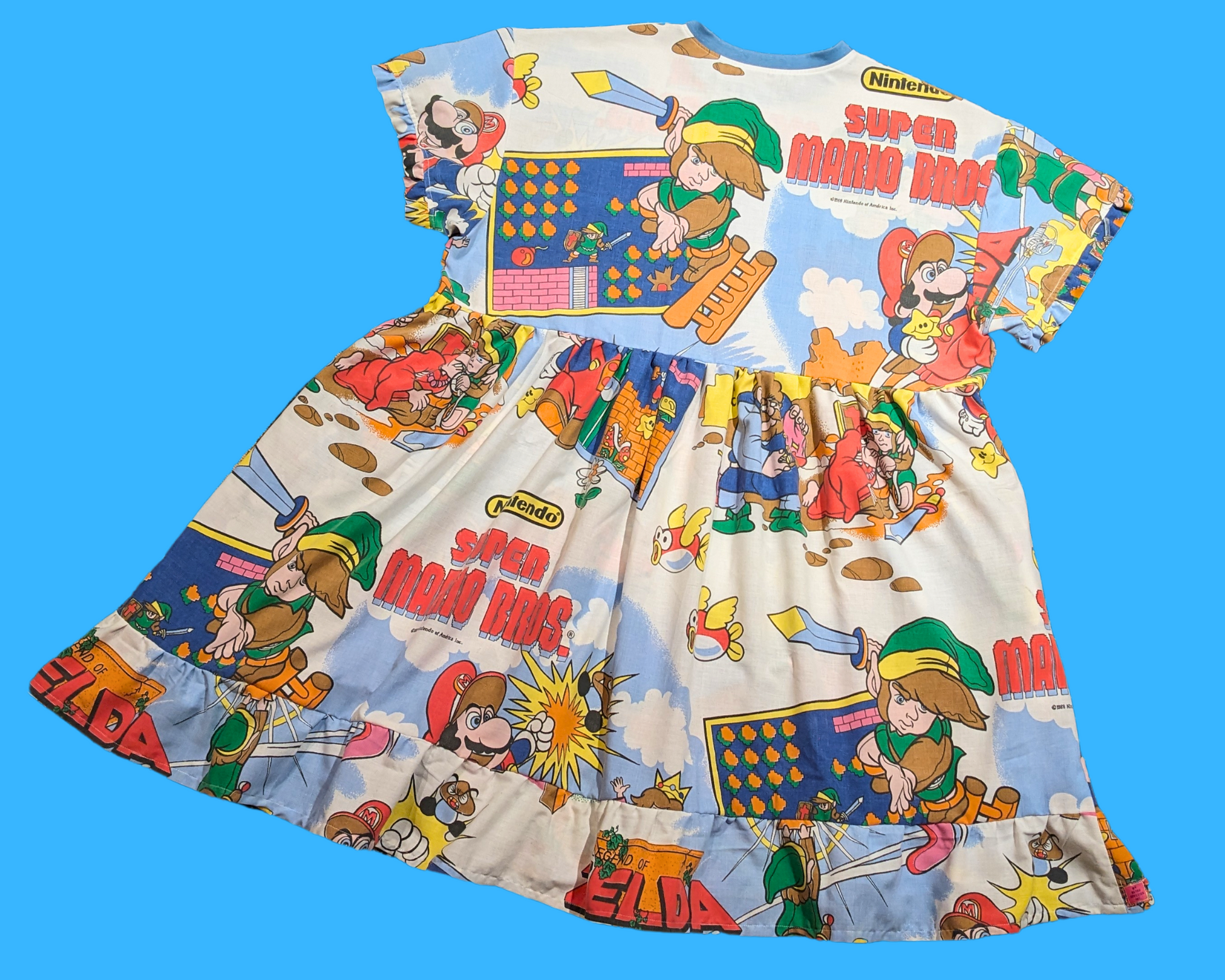 • Robe t-shirt drapée Nintendo 1988 Super Mario Bros et Zelda faite à la main et recyclée, taille 2XL