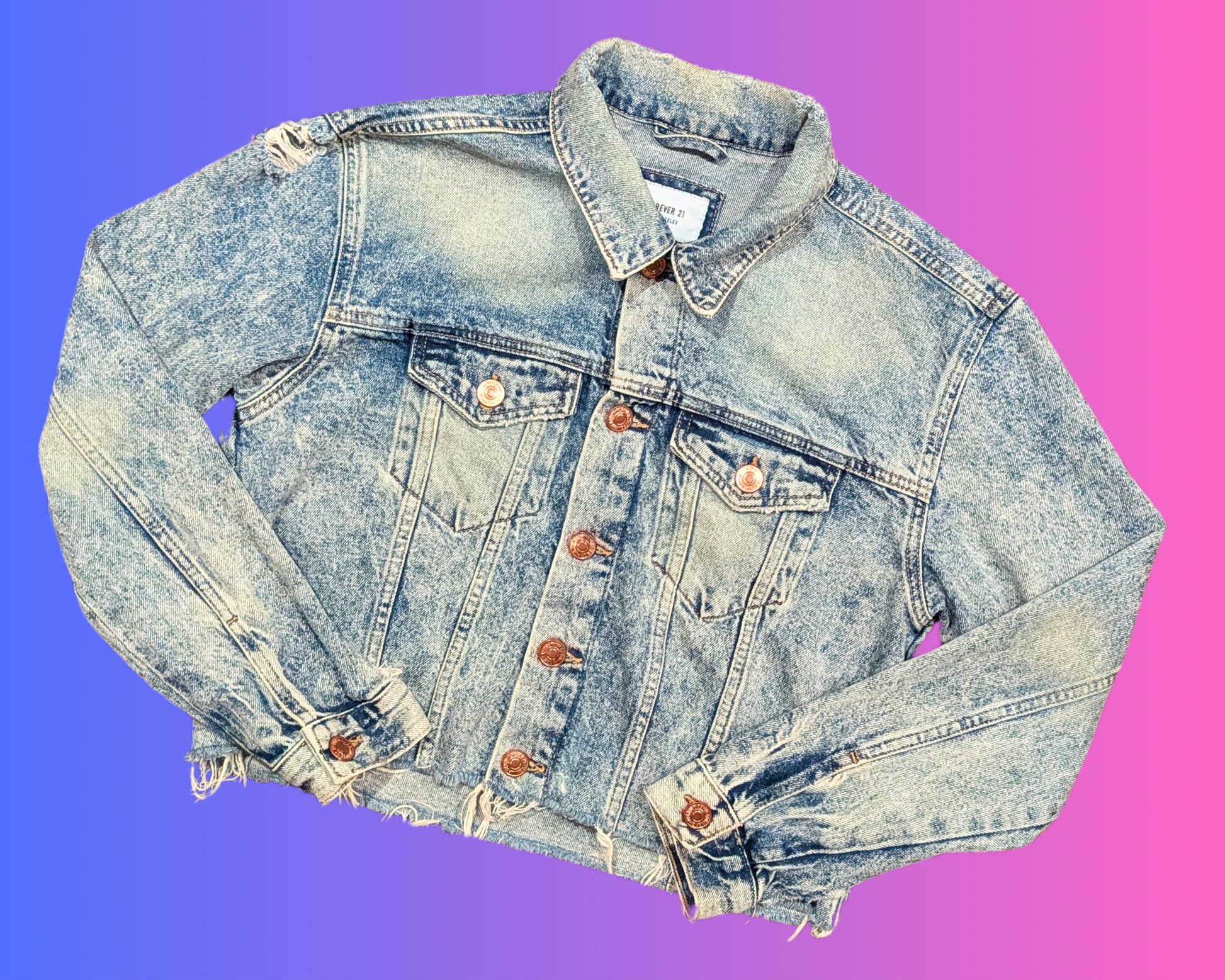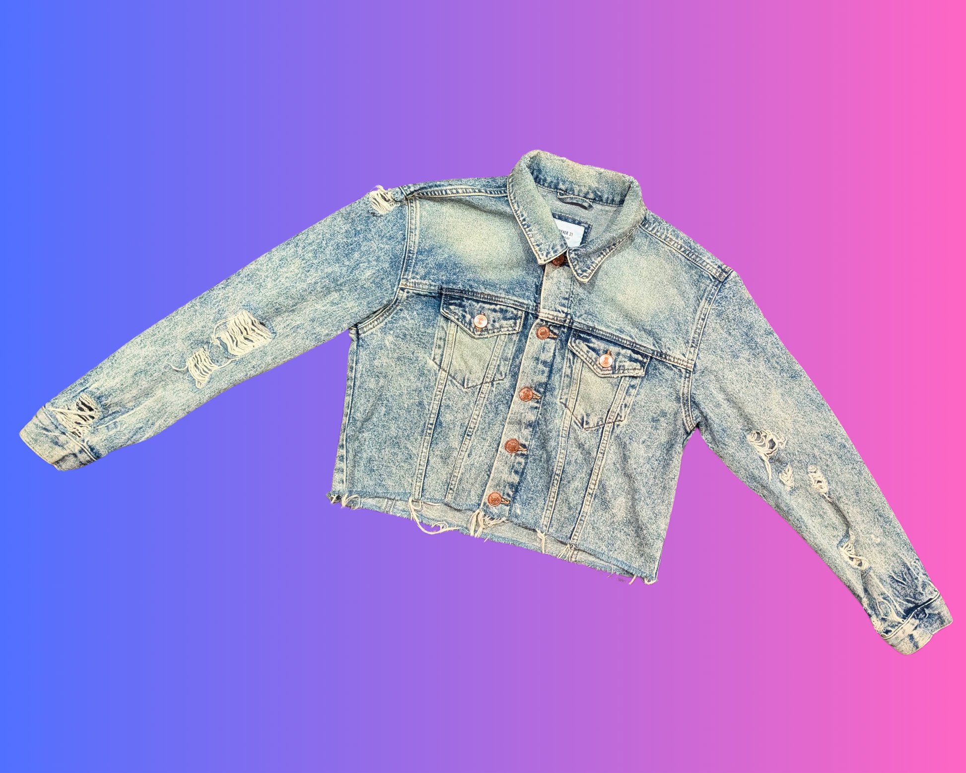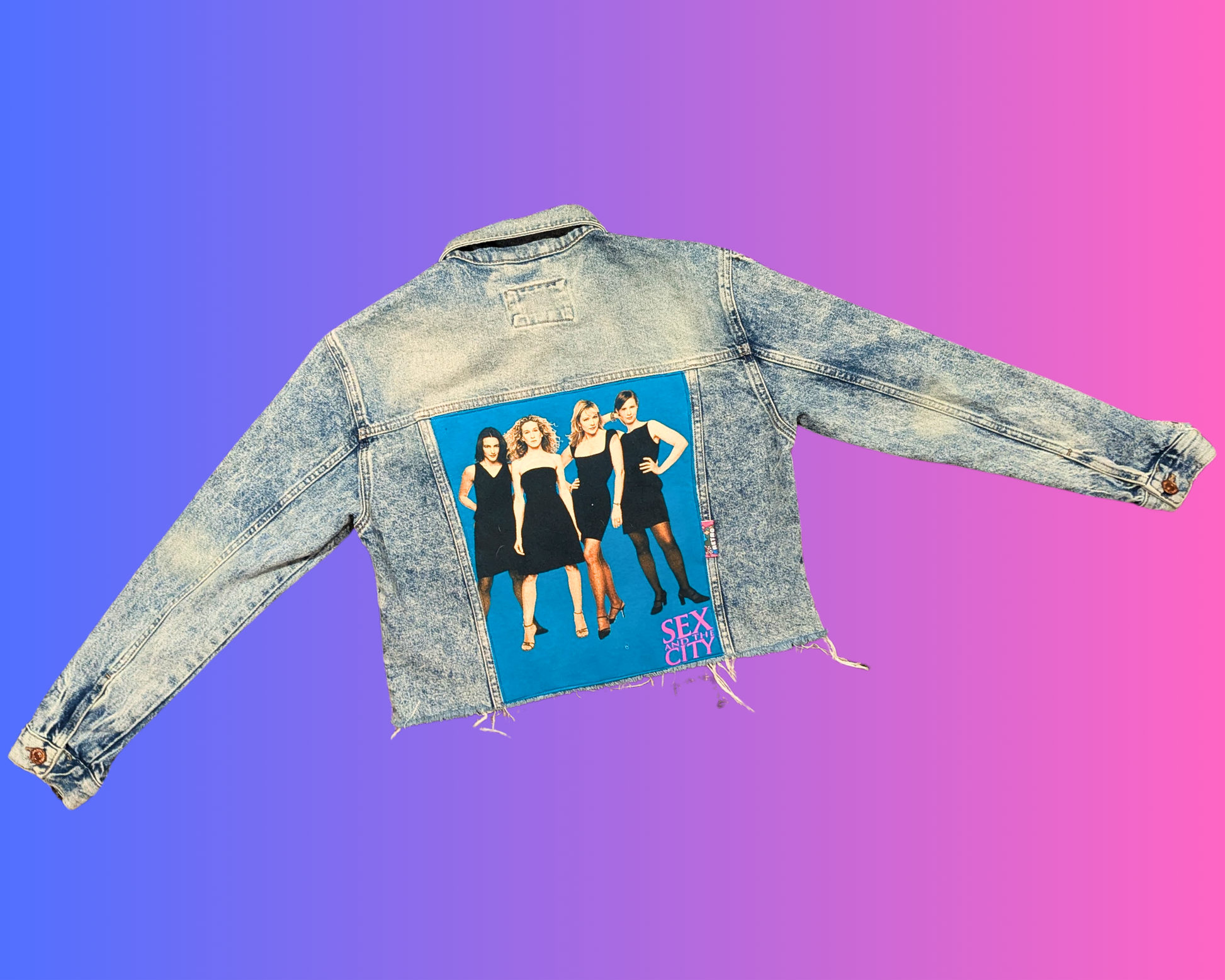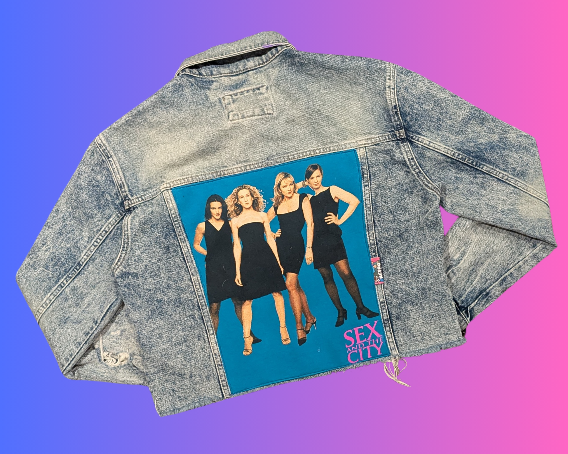 Veste en jean Sex and the City faite à la main et recyclée, taille M