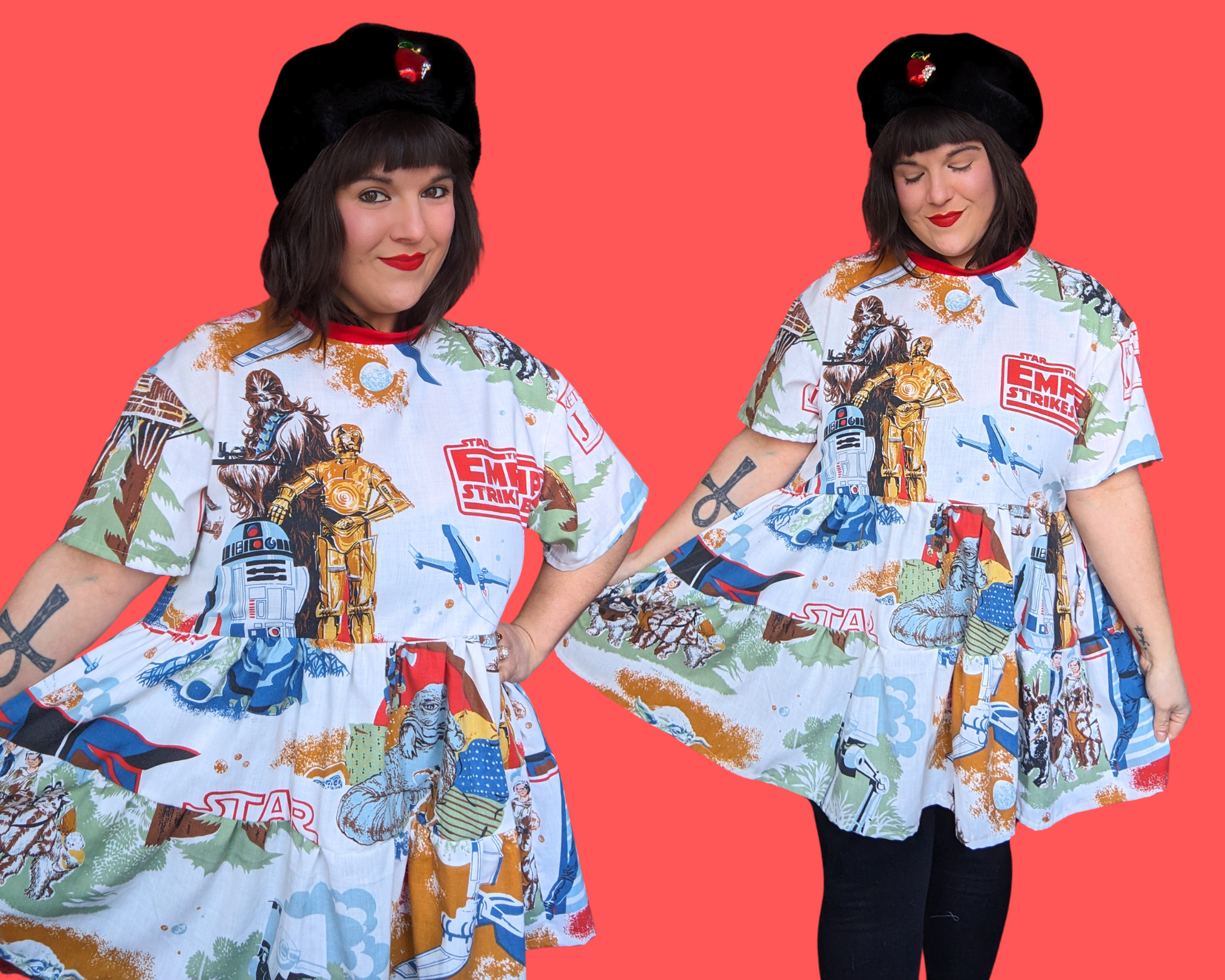 Robe t-shirt drapée Star Wars Le Retour du Jedi et L'Empire contre-attaque, fabriquée à la main et recyclée, taille S à XL