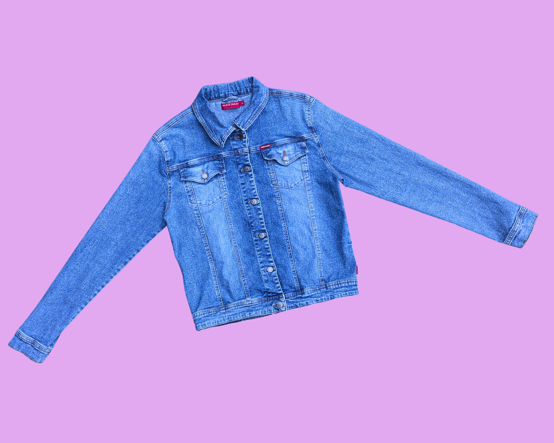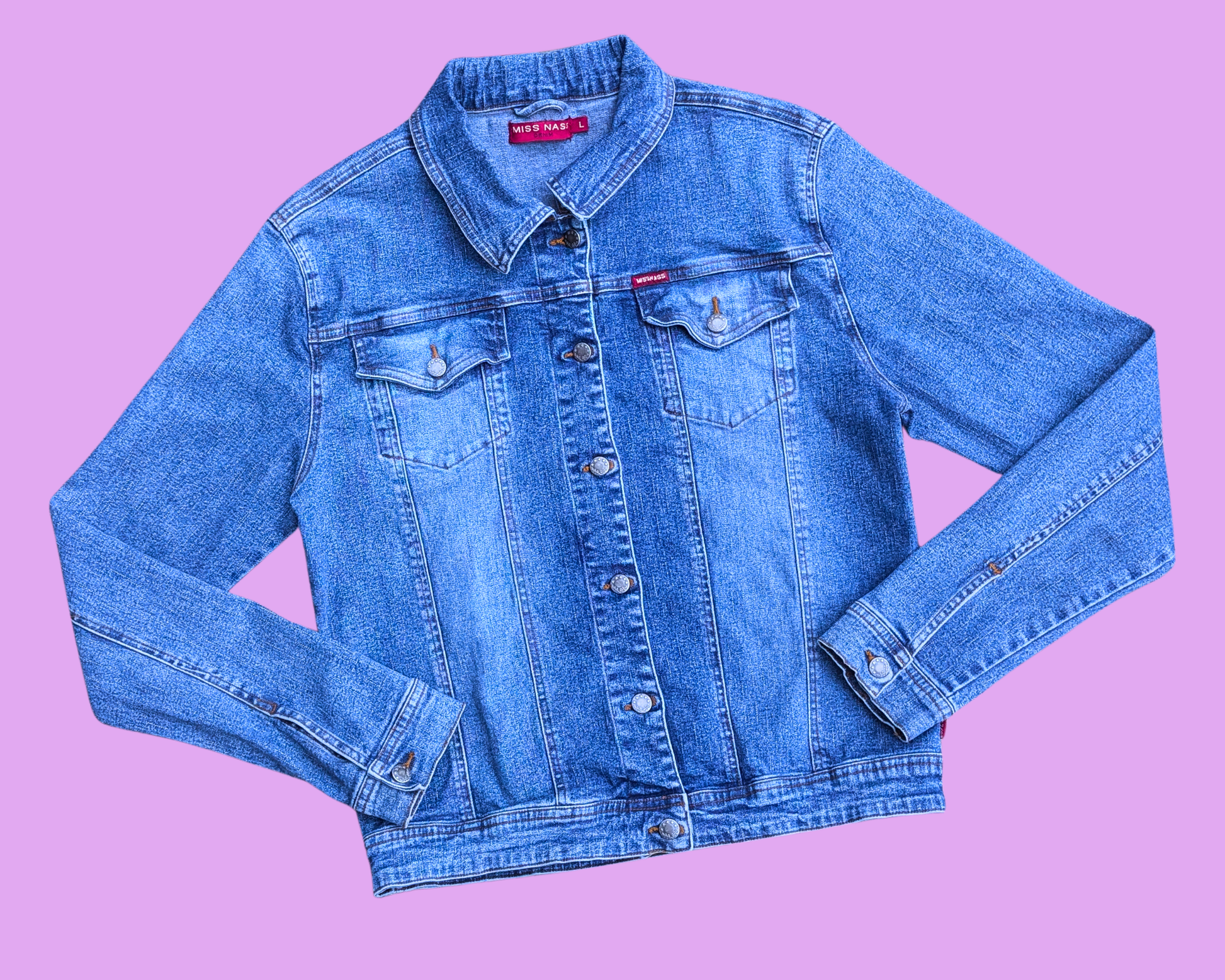 • Veste en jean Charlotte aux fraises faite à la main et recyclée, taille L