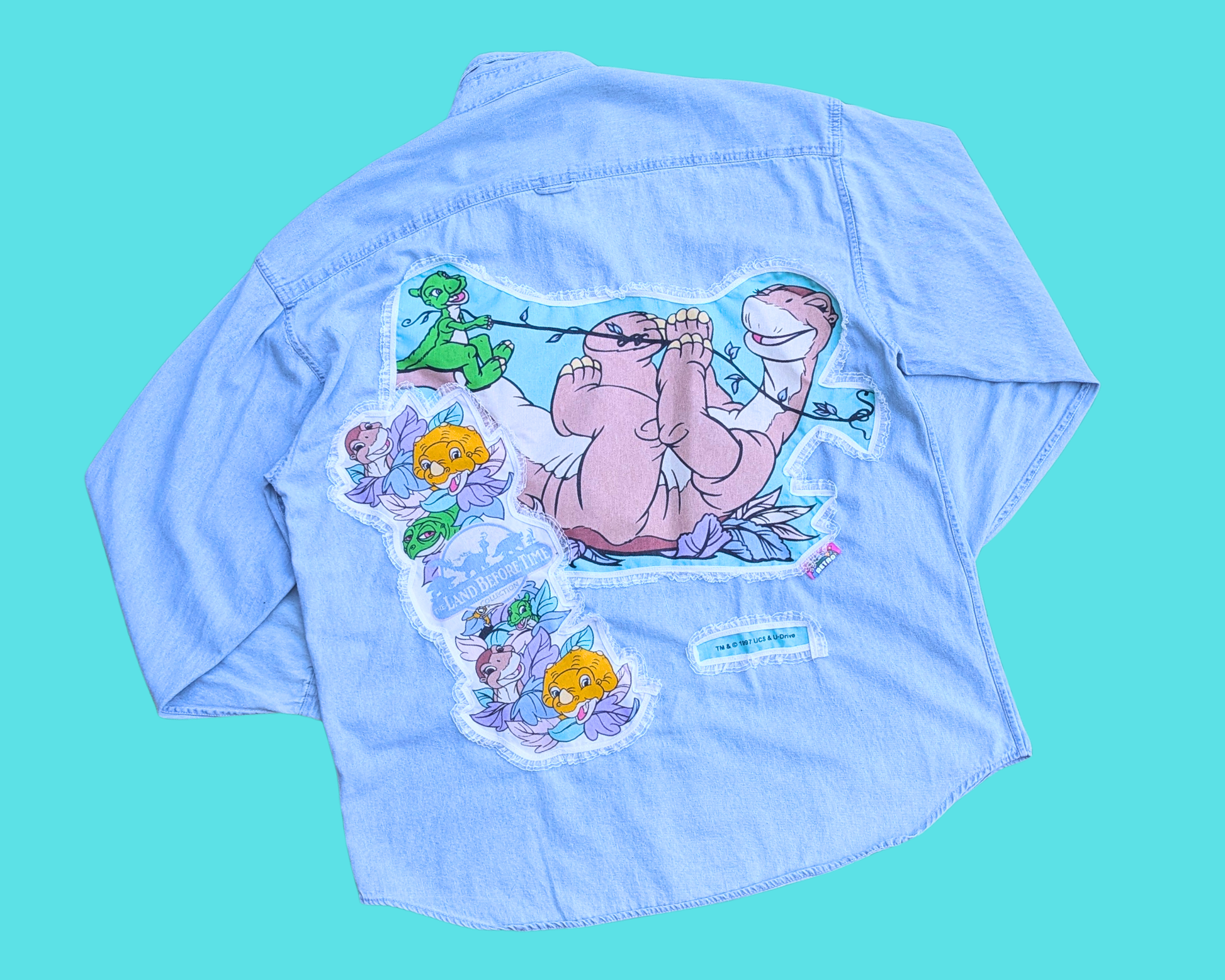 • Chemise/veste en jean The Land Before Time faite à la main et recyclée, taille 2XL