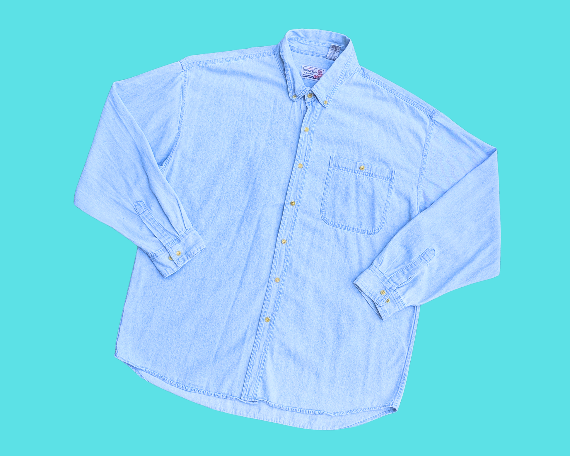 Chemise/veste en jean The Land Before Time, fabriquée à la main et recyclée, taille 2XL