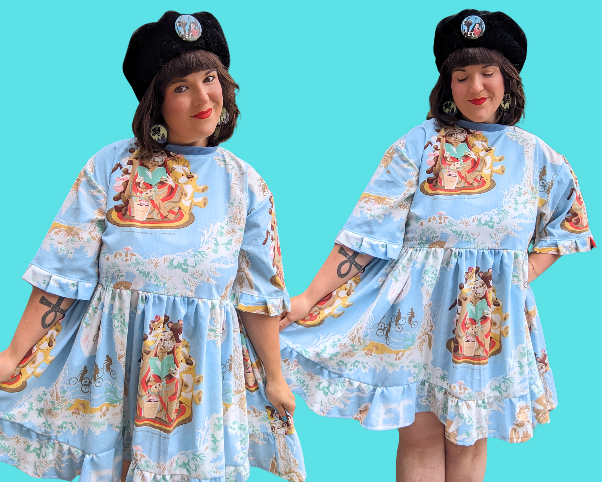 Veuillez noter que ces robes sont faites main et confectionnées à partir de t-shirts, de tissus ou de draps vintage. Des imperfections sont à prévoir. Les taches et les trous les plus importants seront mentionnés ci-dessous. Attendez-vous à quelques petits défauts non spécifiés, ainsi qu'à des coutures imparfaites. Attention à ne pas trop tirer dessus.