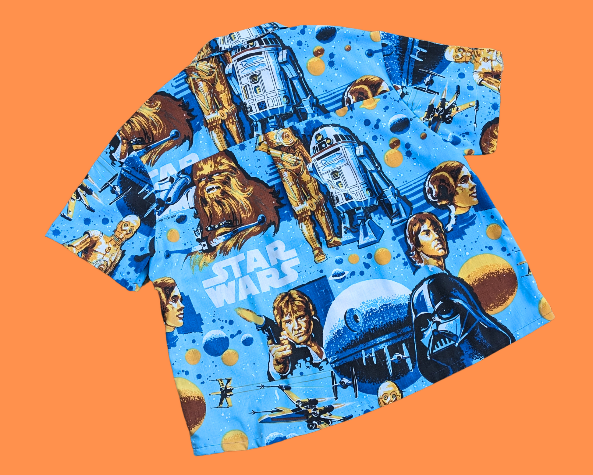Chemise boutonnée à manches courtes, drap de lit Star Wars vintage 1977, fait main et recyclé, taille XL