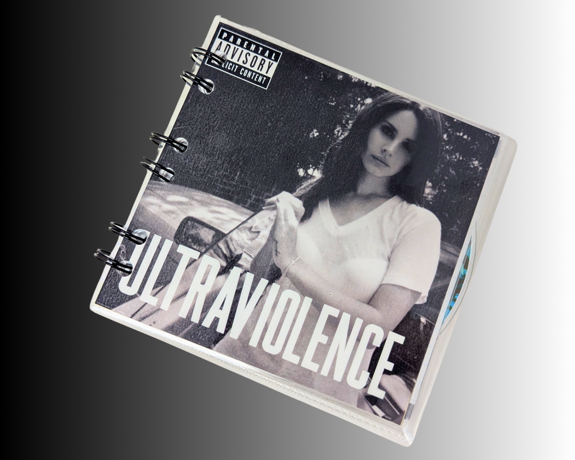• Carnet CD Lana Del Rey, Ultraviolence réalisé à partir d'une pochette et d'une couverture de CD recyclées.