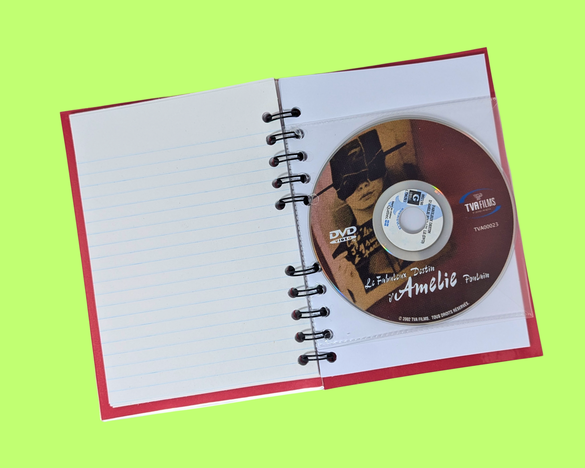 • Le Fabuleux Destin d'Amélie Poulain DVD Movie Notebook made from a vintage, upcycled DVD sheet.