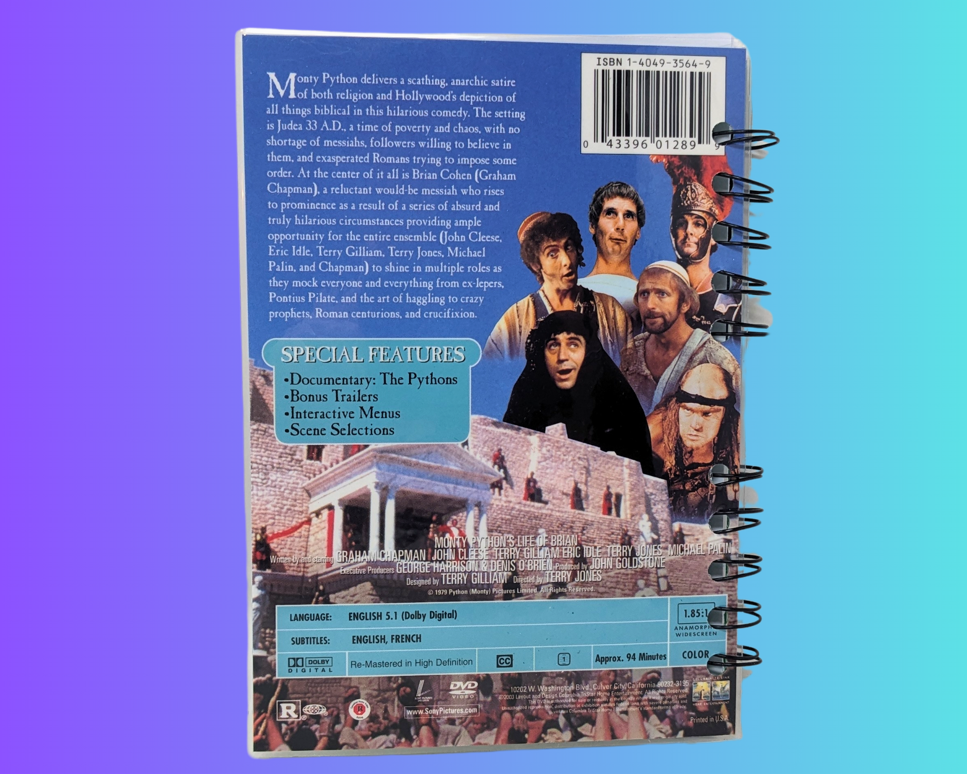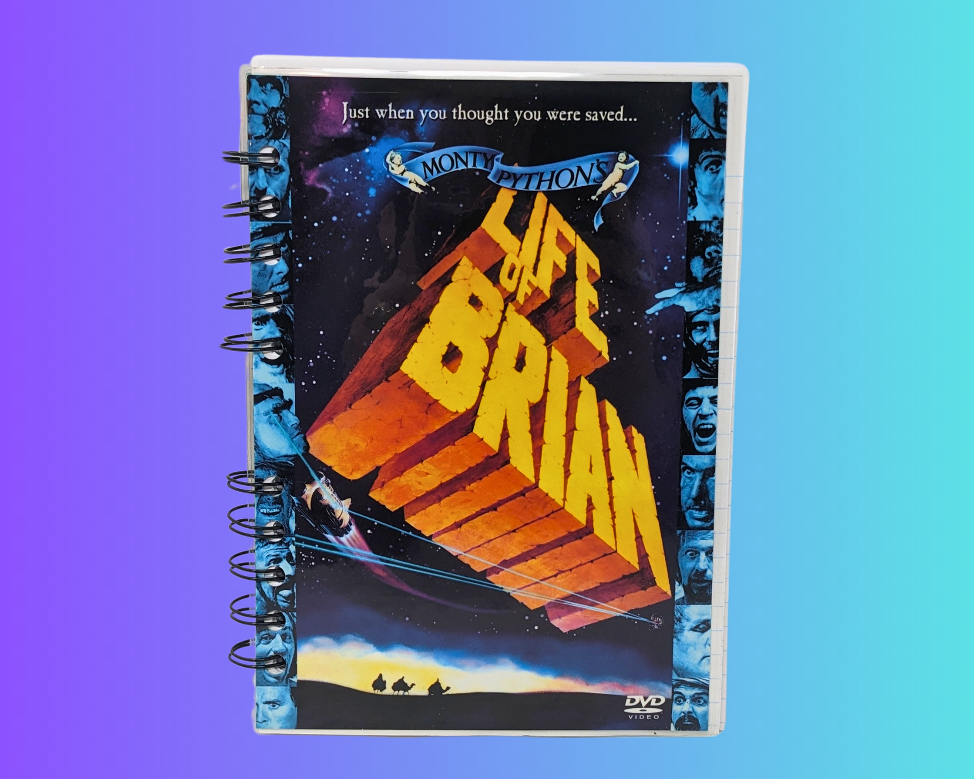 • Carnet de film DVD La vie de Brian fabriqué à partir d'une feuille de DVD vintage recyclée.