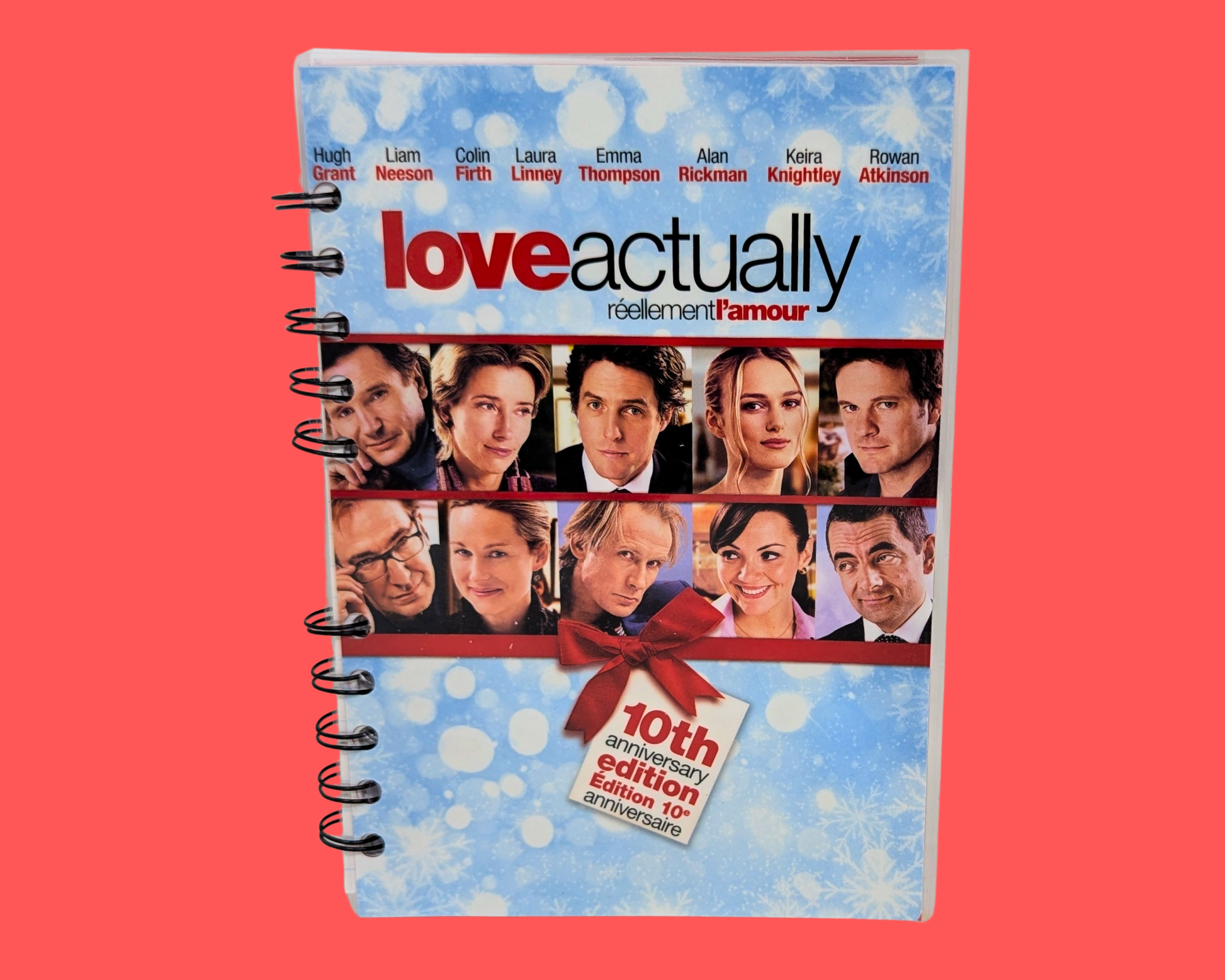 • Carnet de notes du film DVD Love Actually fabriqué à partir d'une feuille de DVD vintage recyclée.