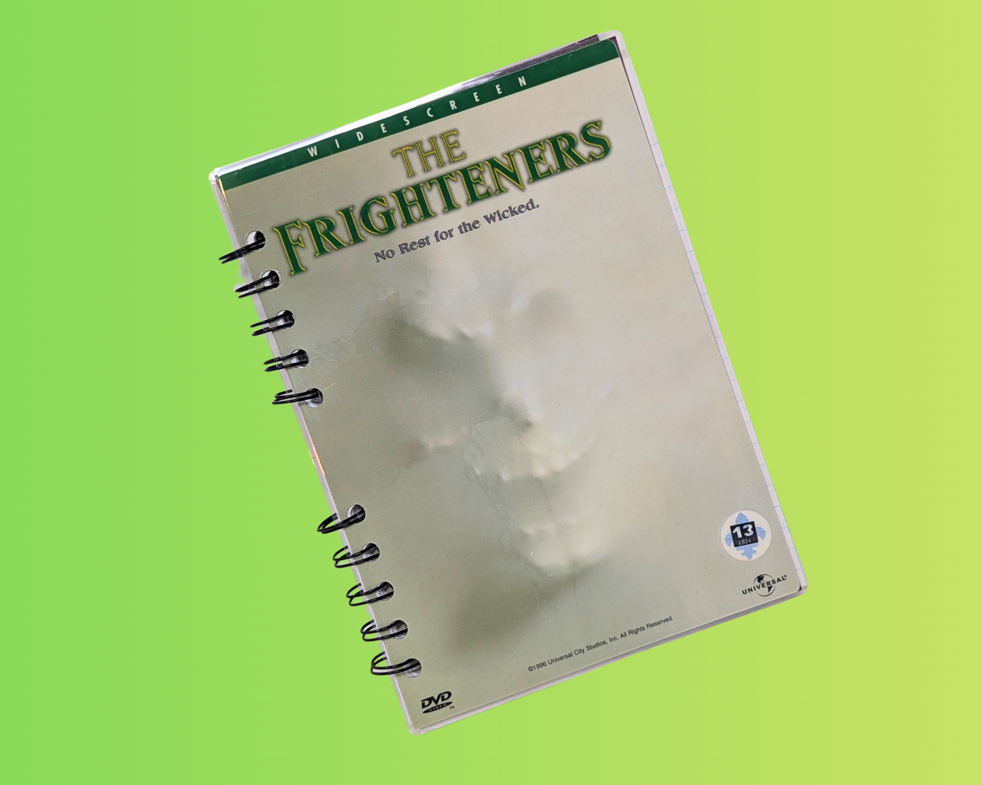 • Carnet de notes du film DVD The Frighteners fabriqué à partir d'une feuille de DVD vintage recyclée.