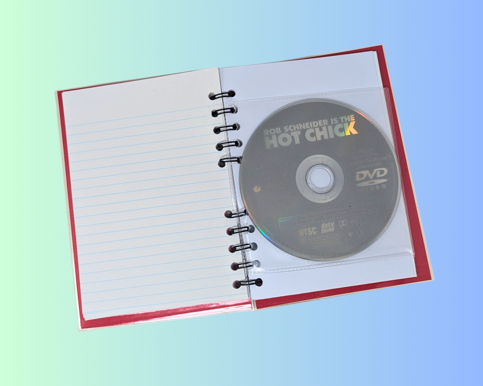 • The Hot Chick DVD Movie Notebook made from a vintage, upcycled DVD sheet.
