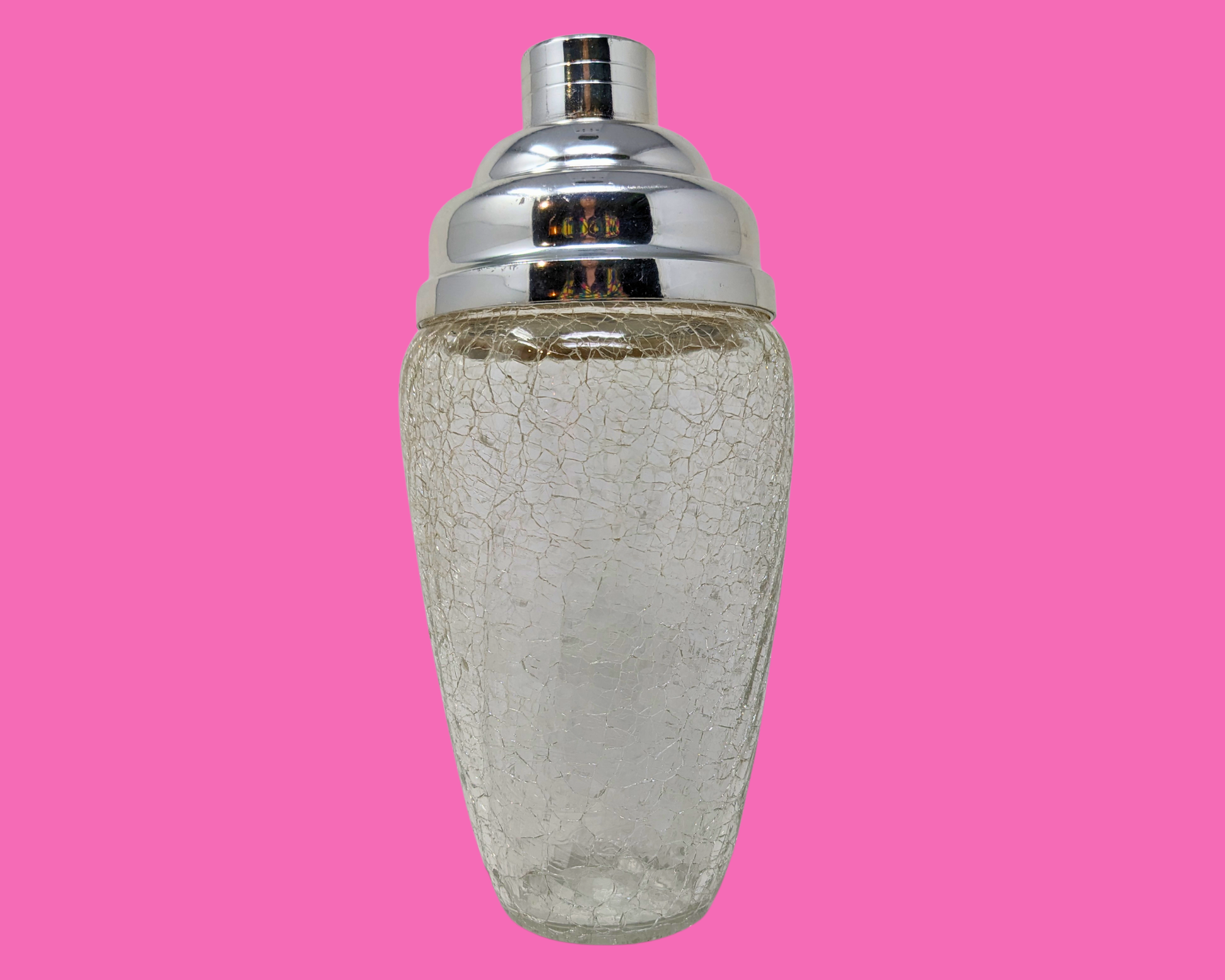 • Shaker à cocktail vintage en verre brisé des années 1960
