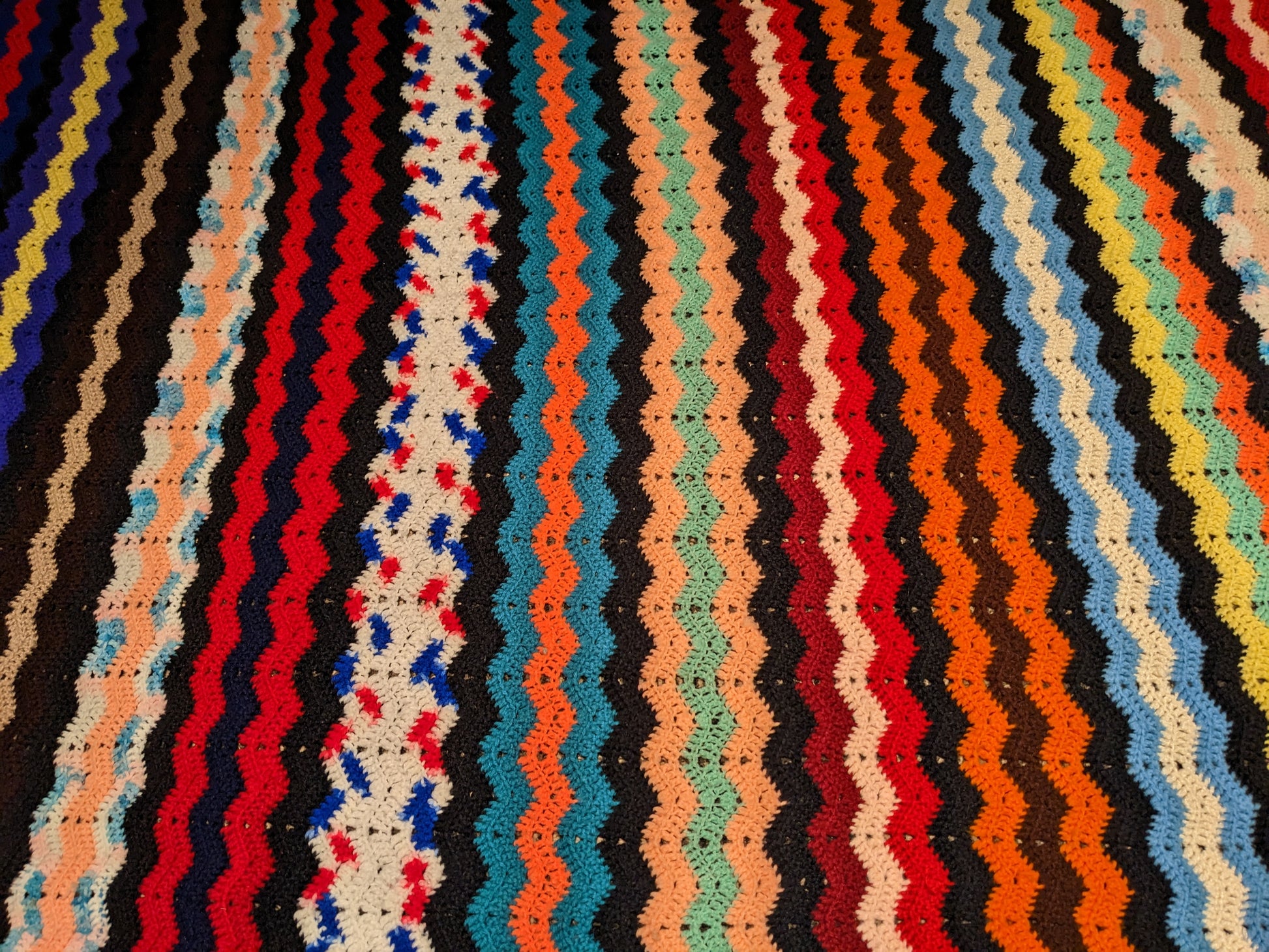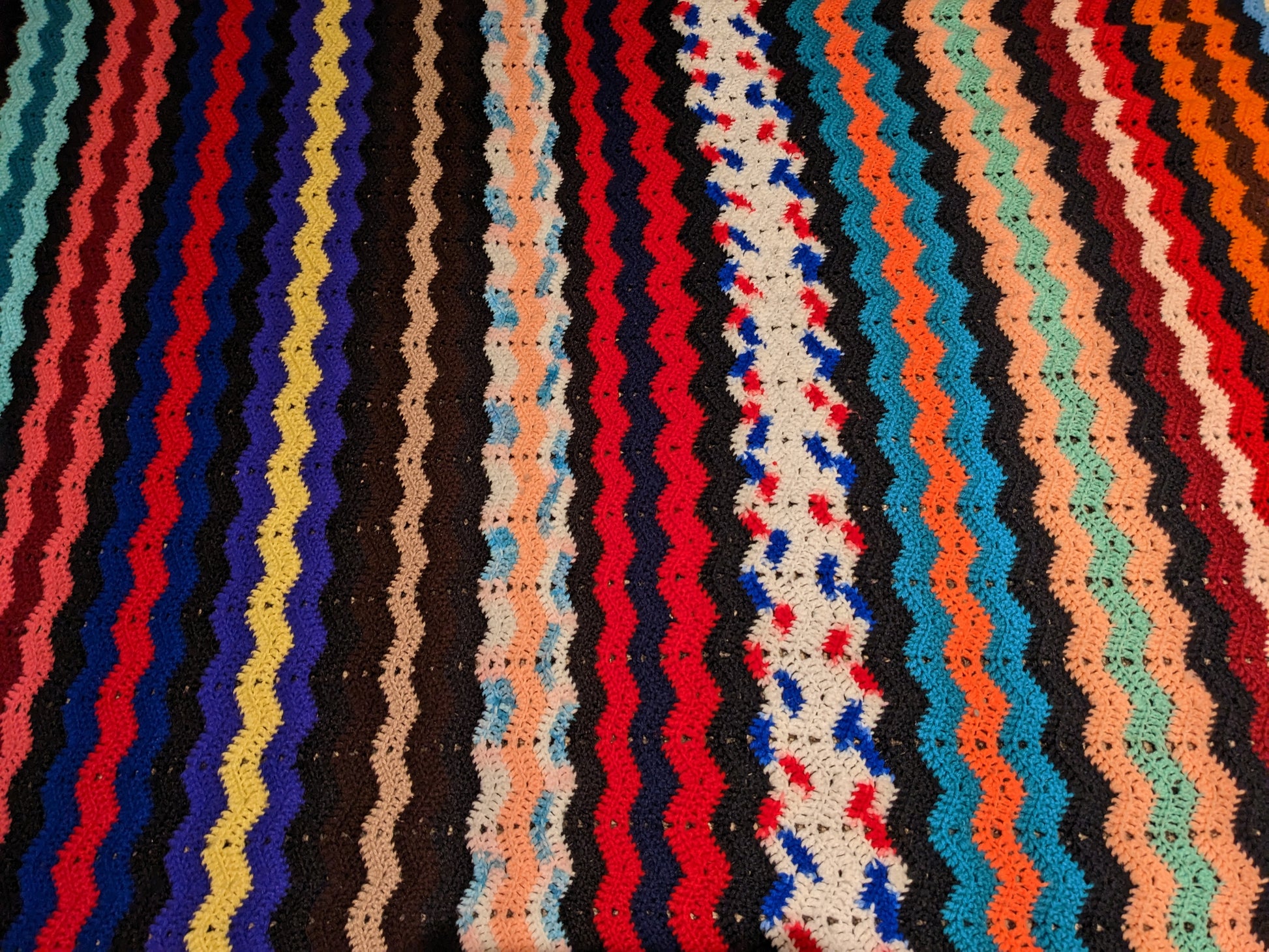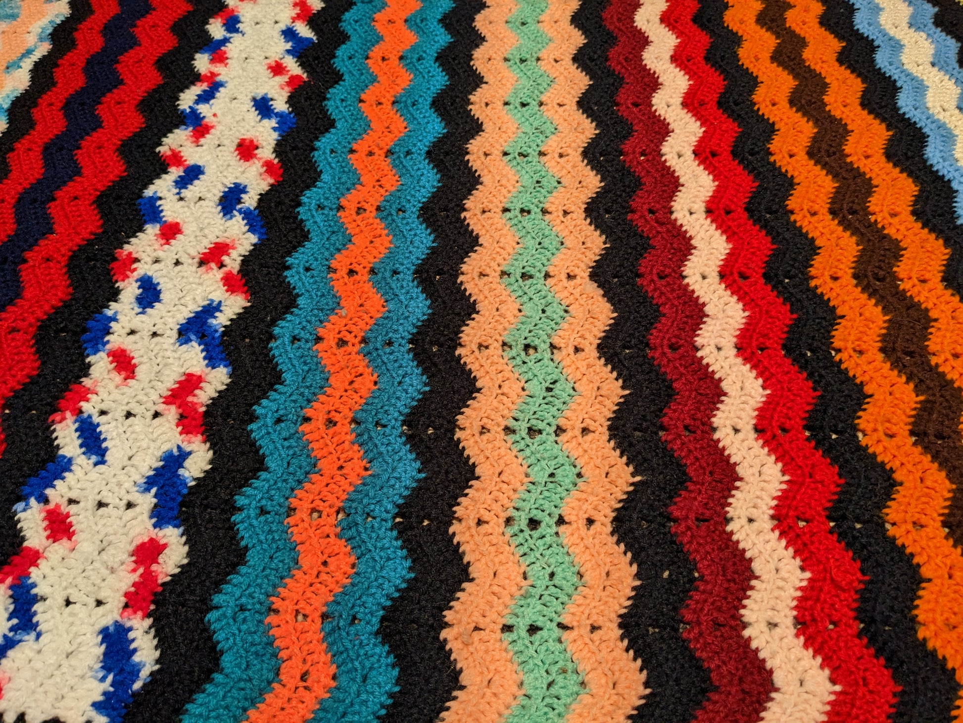 • Couverture en crochet acrylique vert, jaune et blanc vintage des années 1960