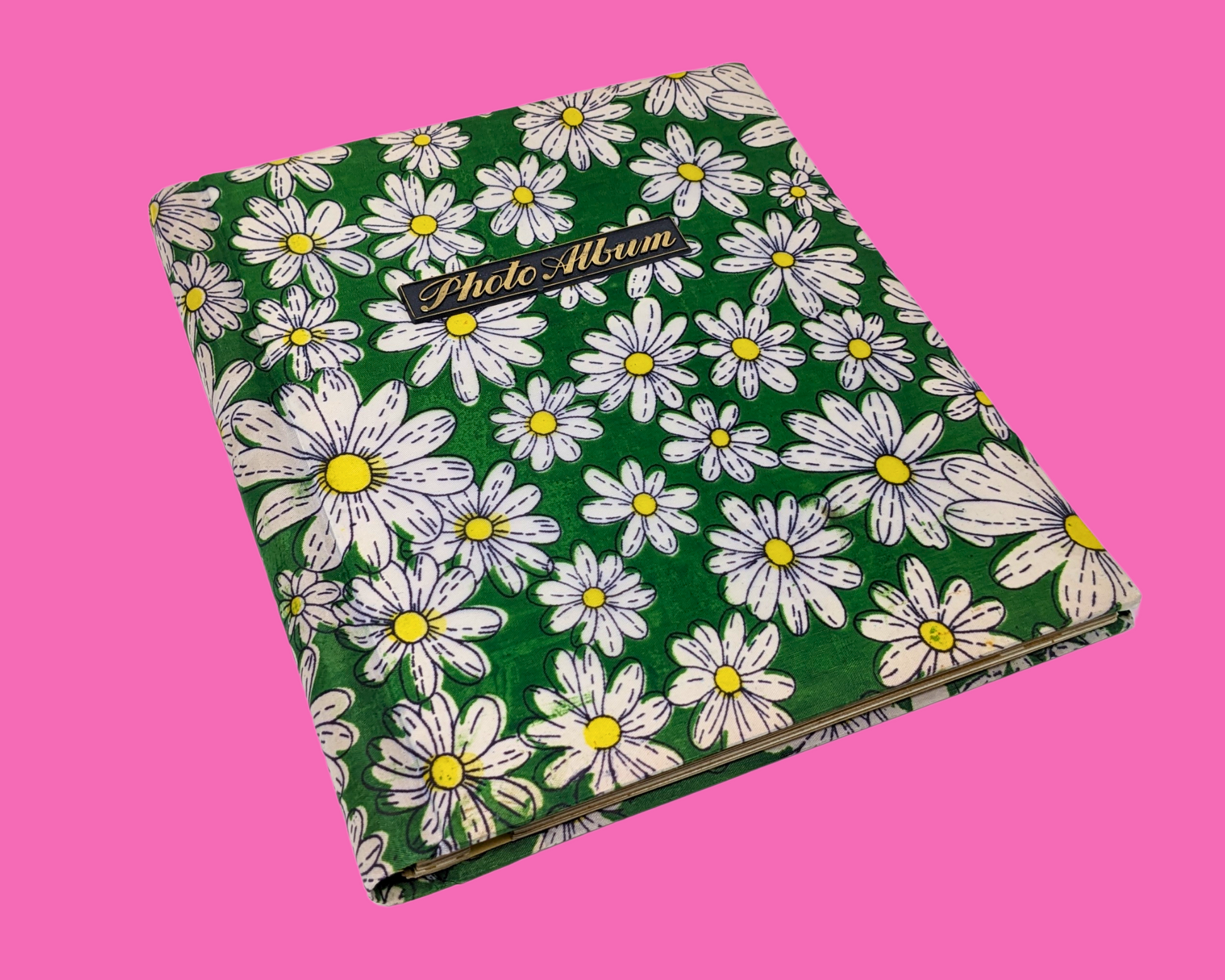 Album photo vintage des années 1960 avec marguerites et fleurs