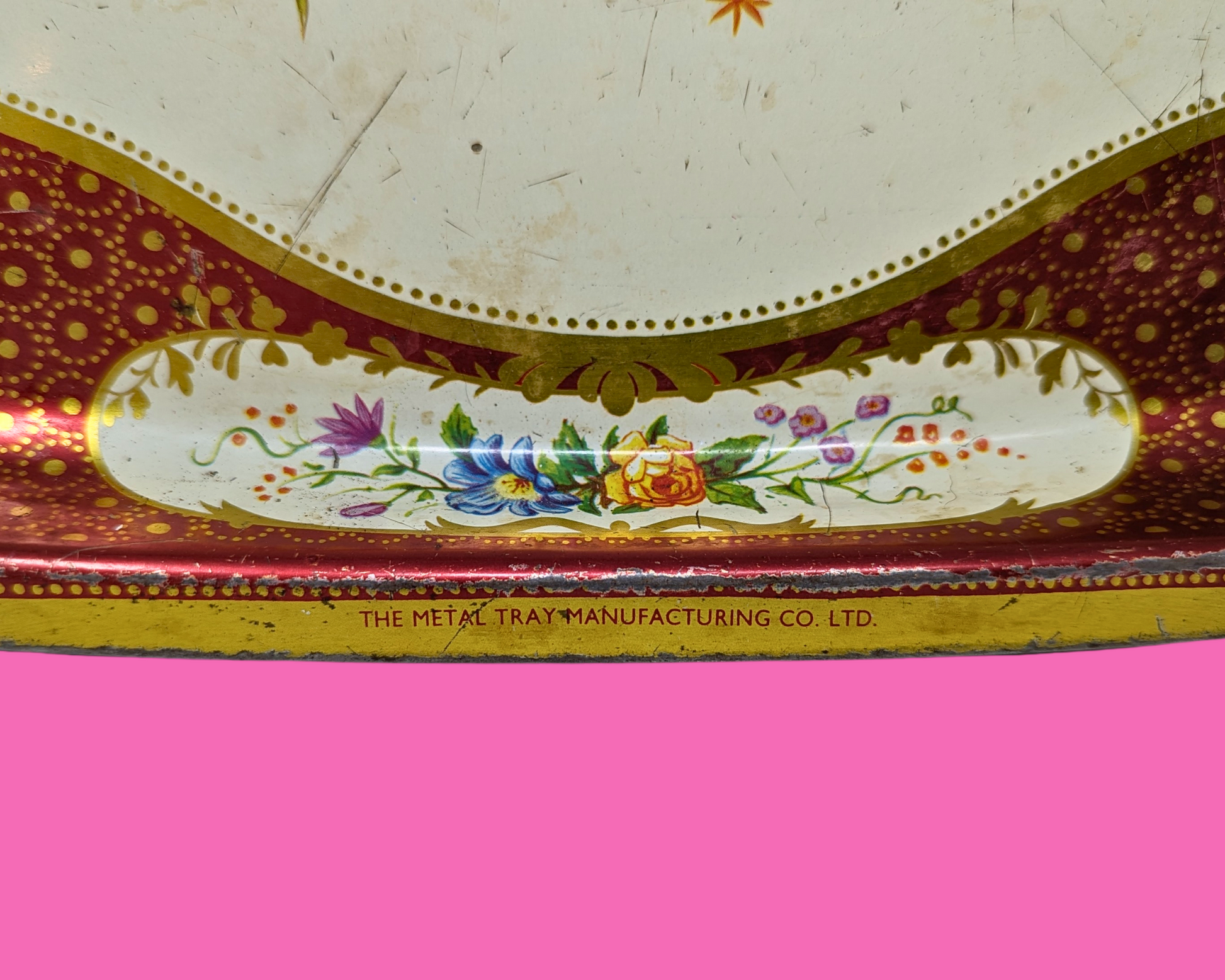 • Plateau en métal floral vintage des années 1960 fabriqué en Angleterre