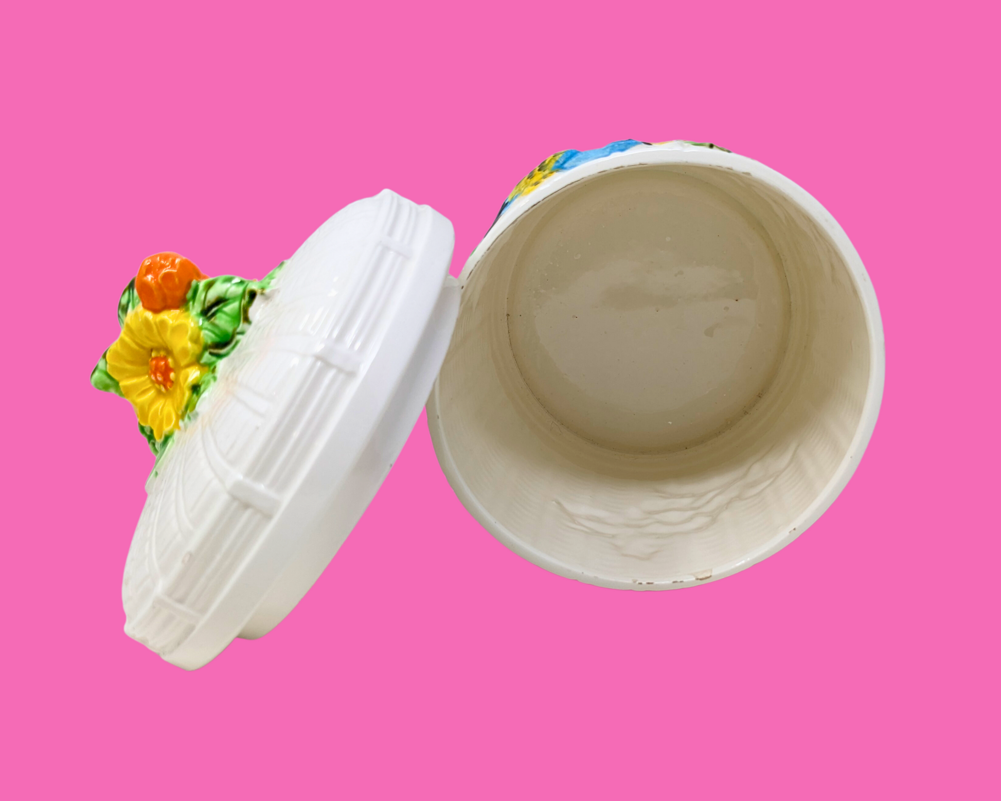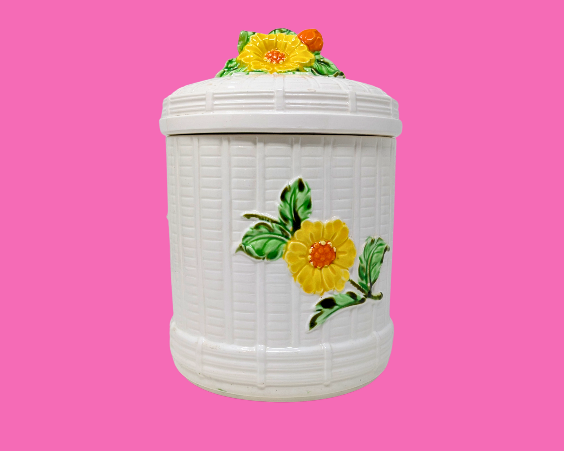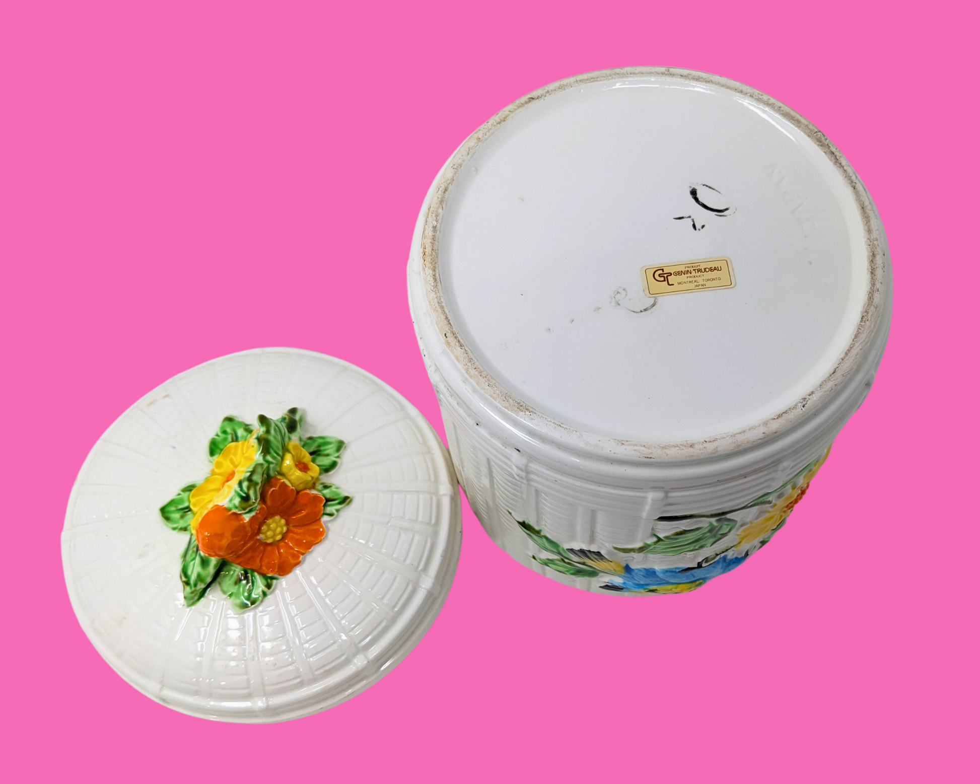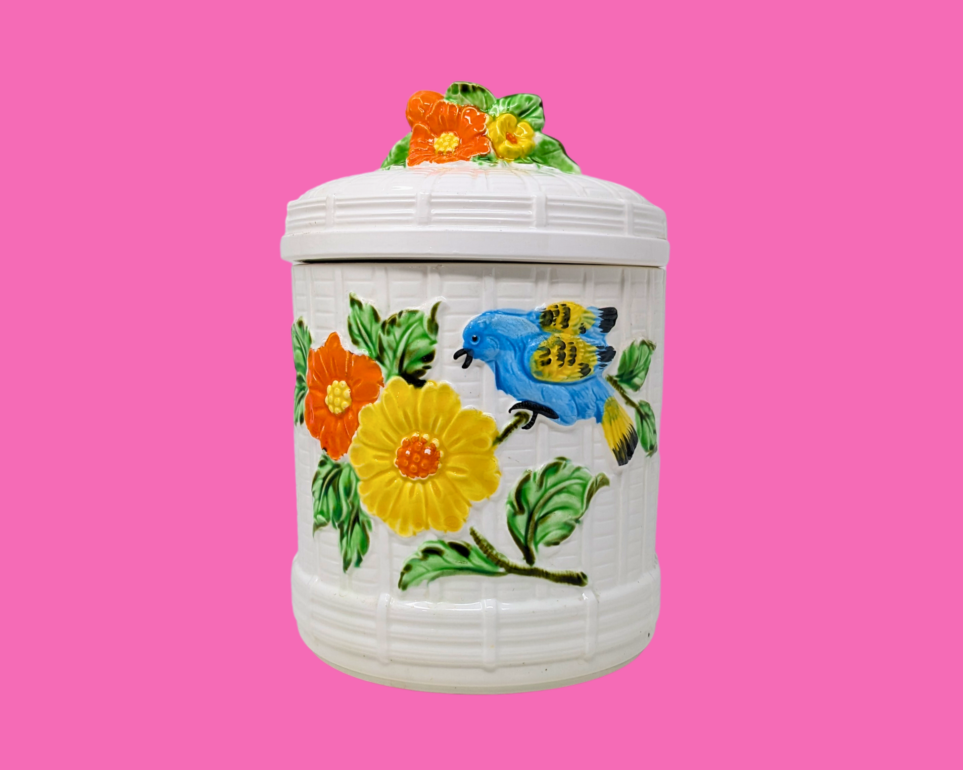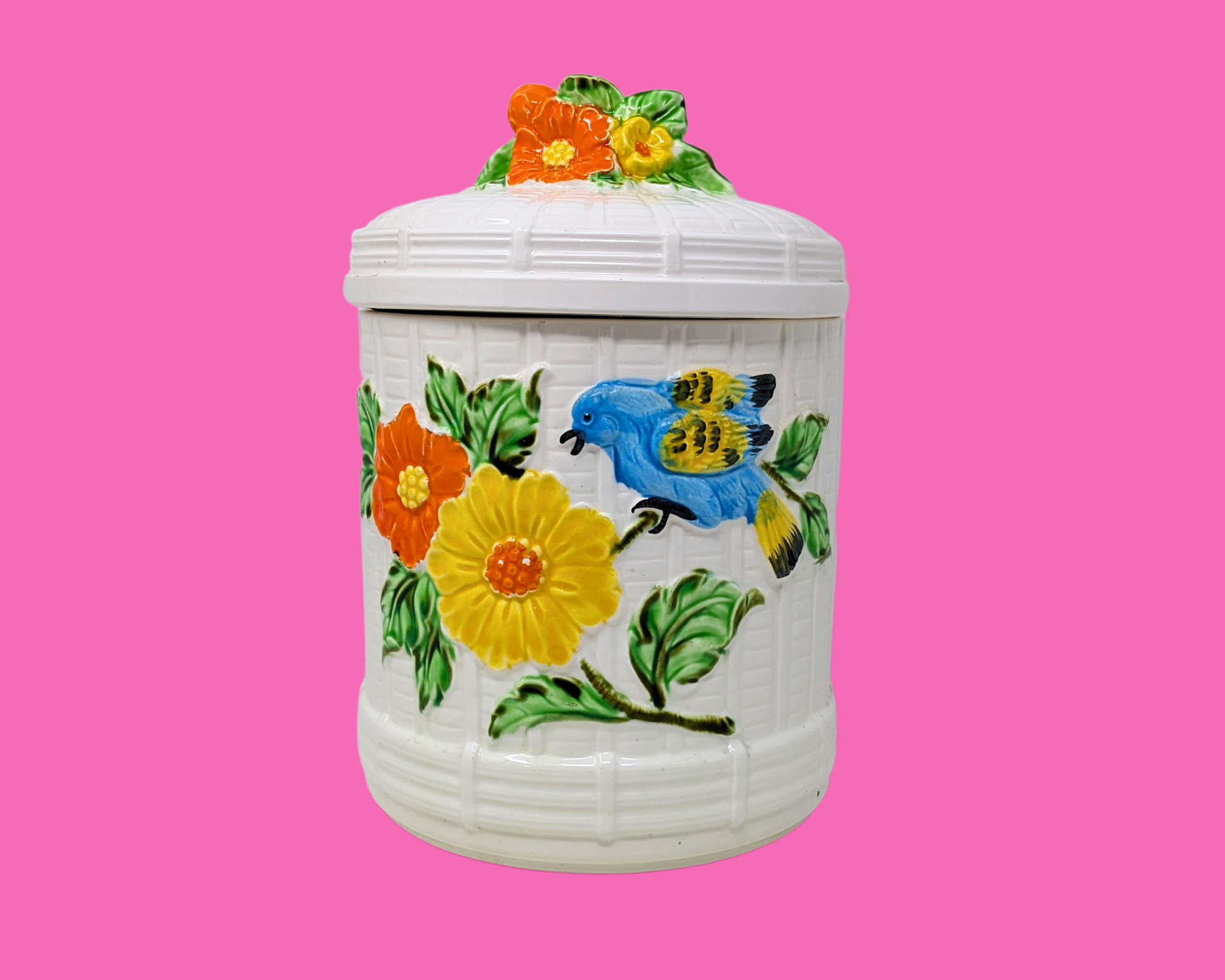 Pot à biscuits vintage fleurs et oiseaux des années 1960
