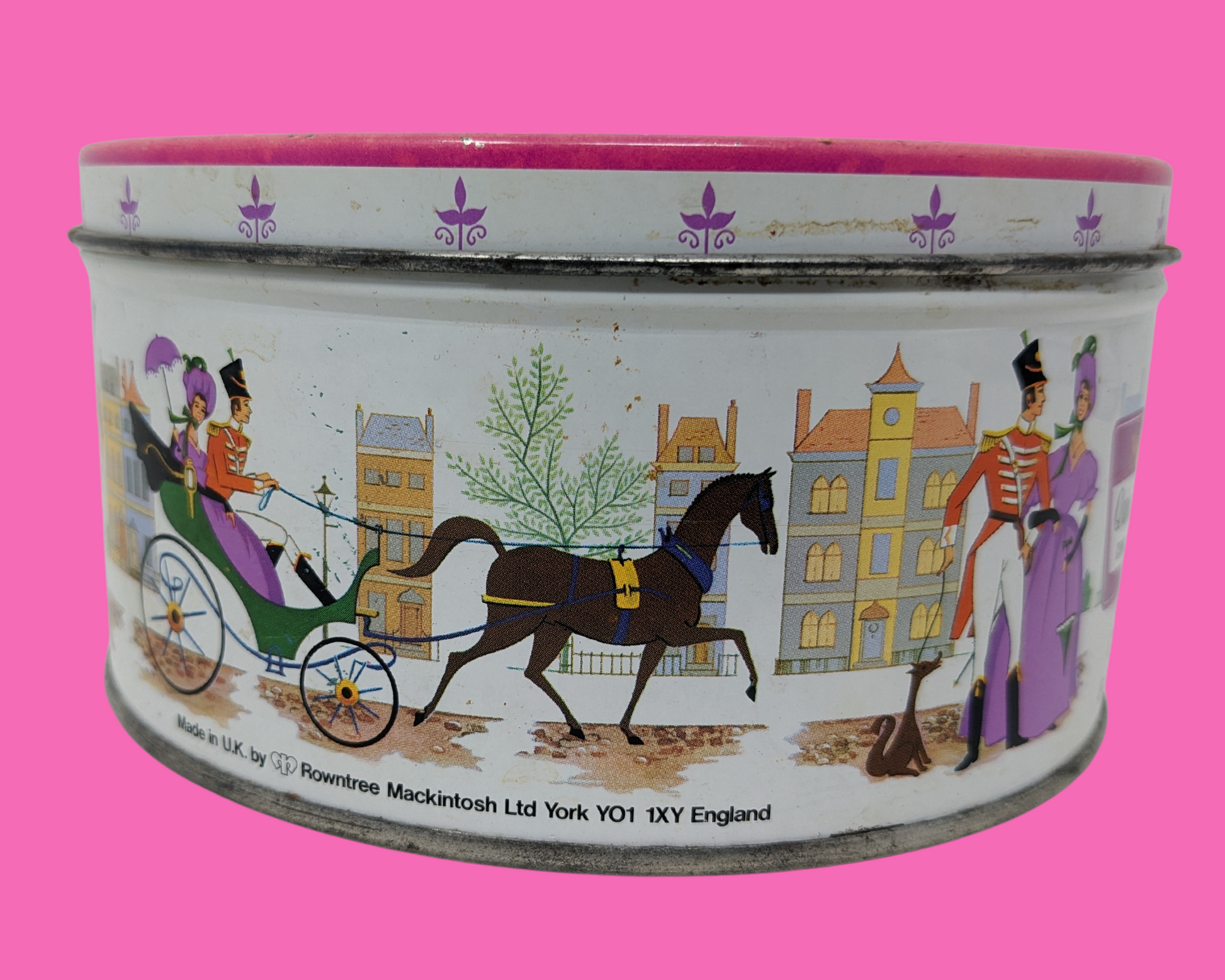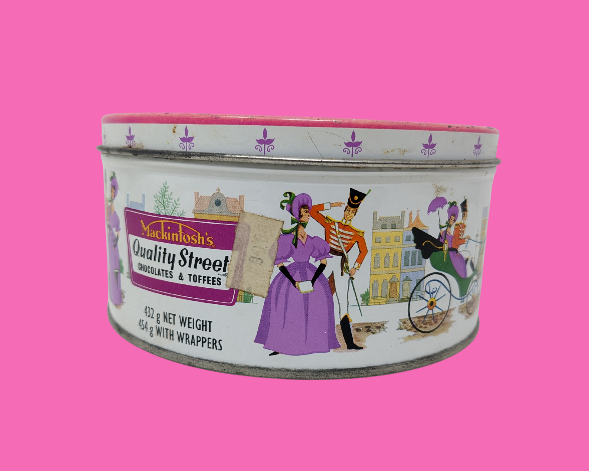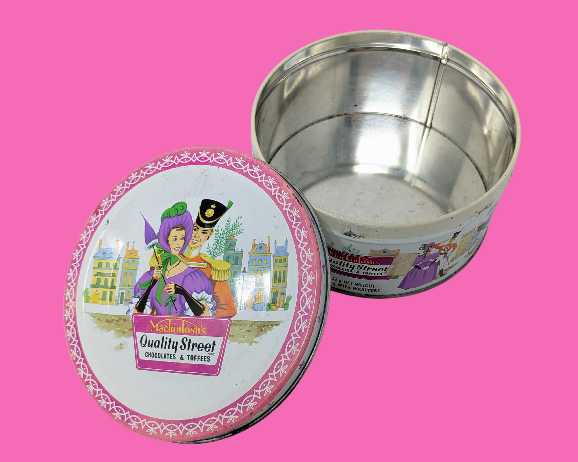 • Boîte en étain pour chocolat et caramel Mackintosh's Quality Street vintage des années 1960 fabriquée au Royaume-Uni