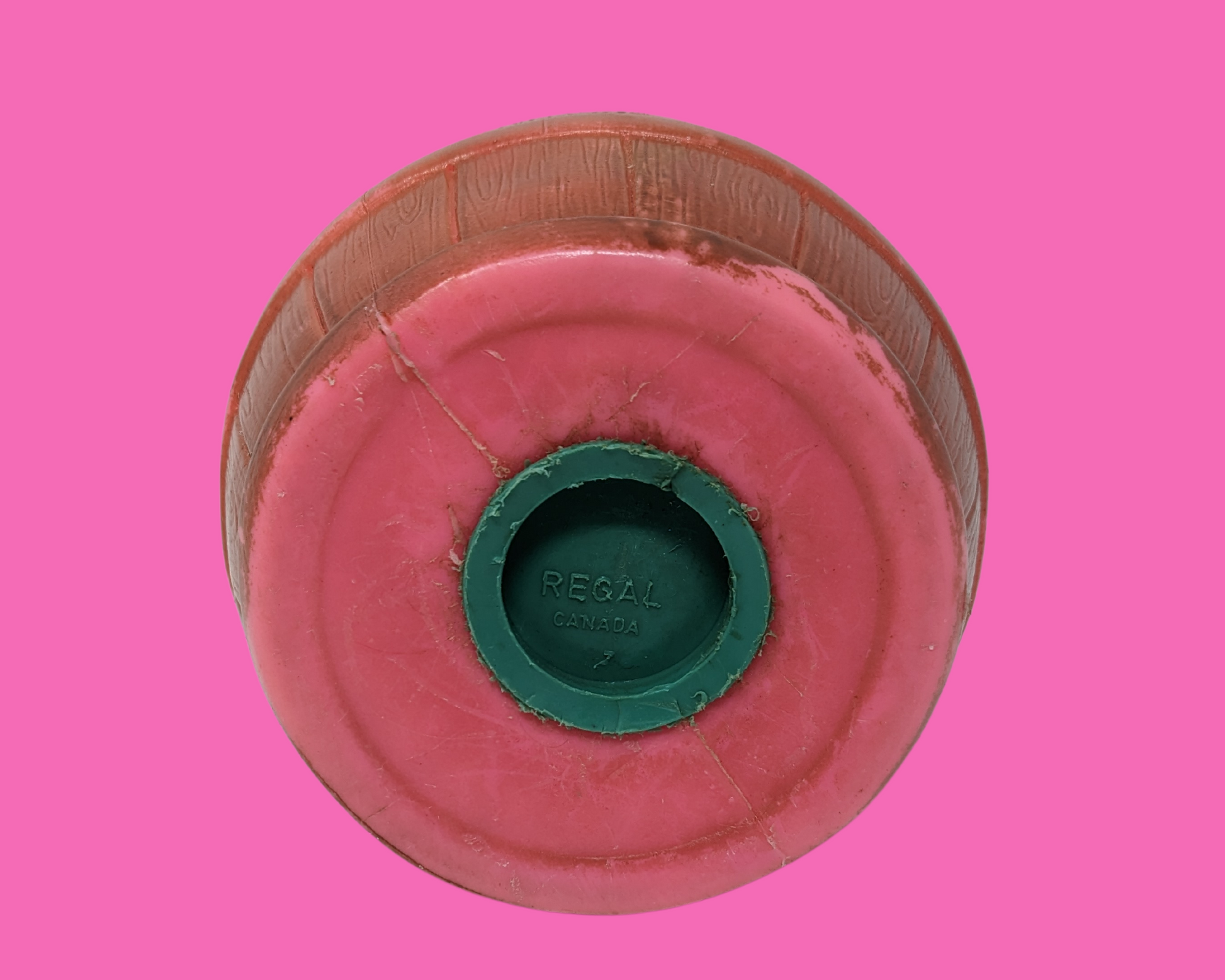 Tirelire en plastique vintage des années 1960, cochon dans un tonneau