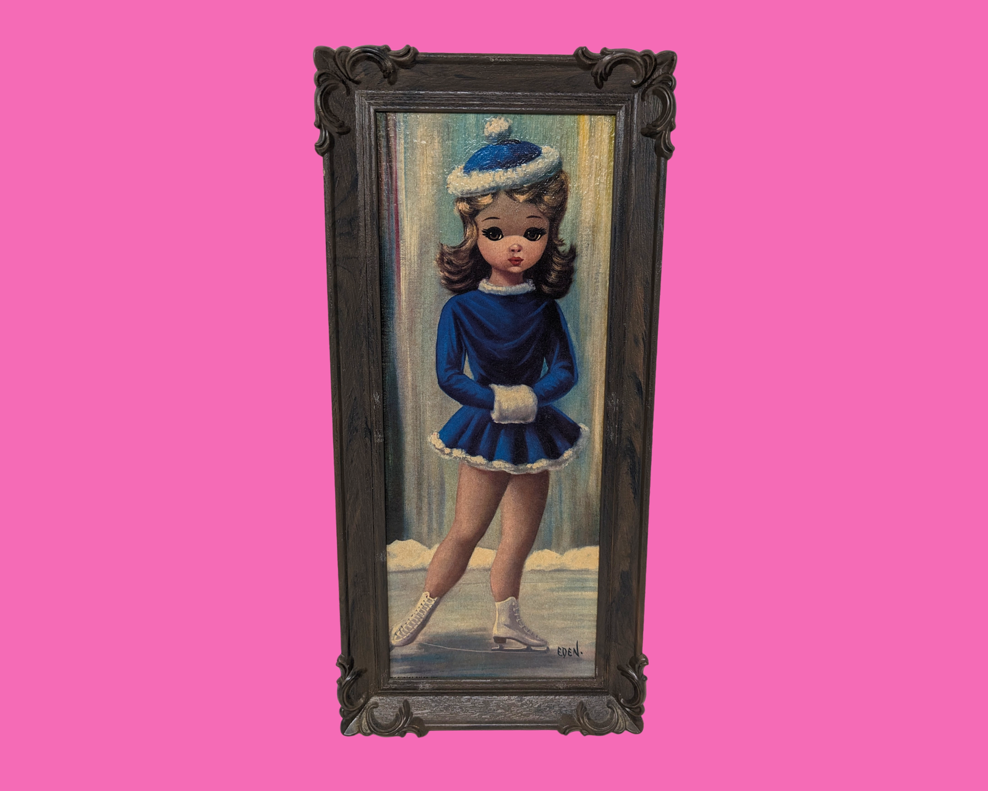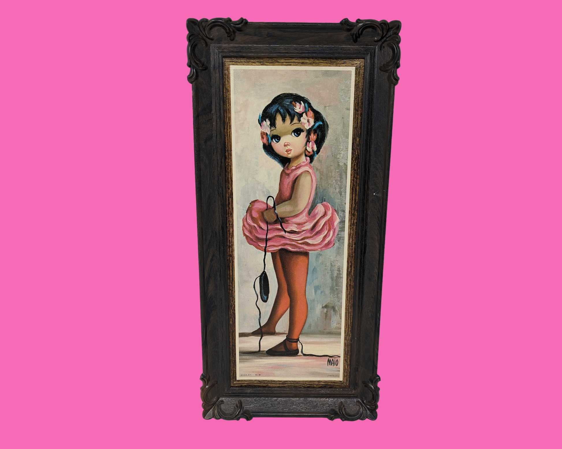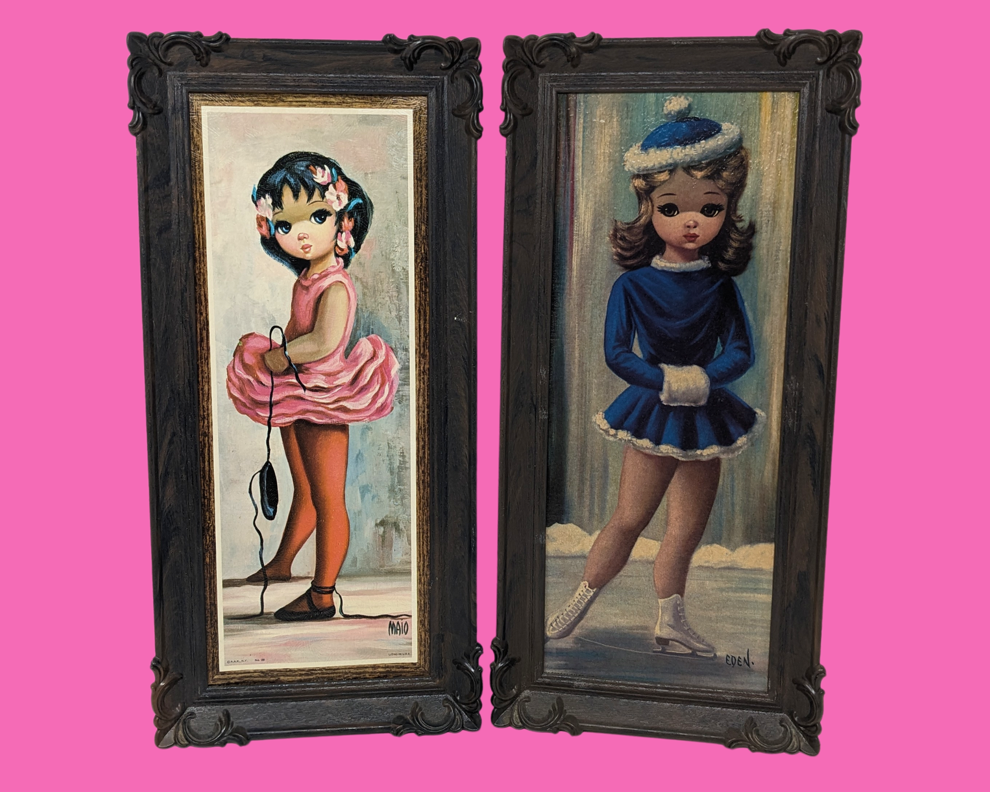 • Ensemble de deux cadres en plastique vintage des années 1960, peintures de petites filles sur impressions fabriquées aux États-Unis