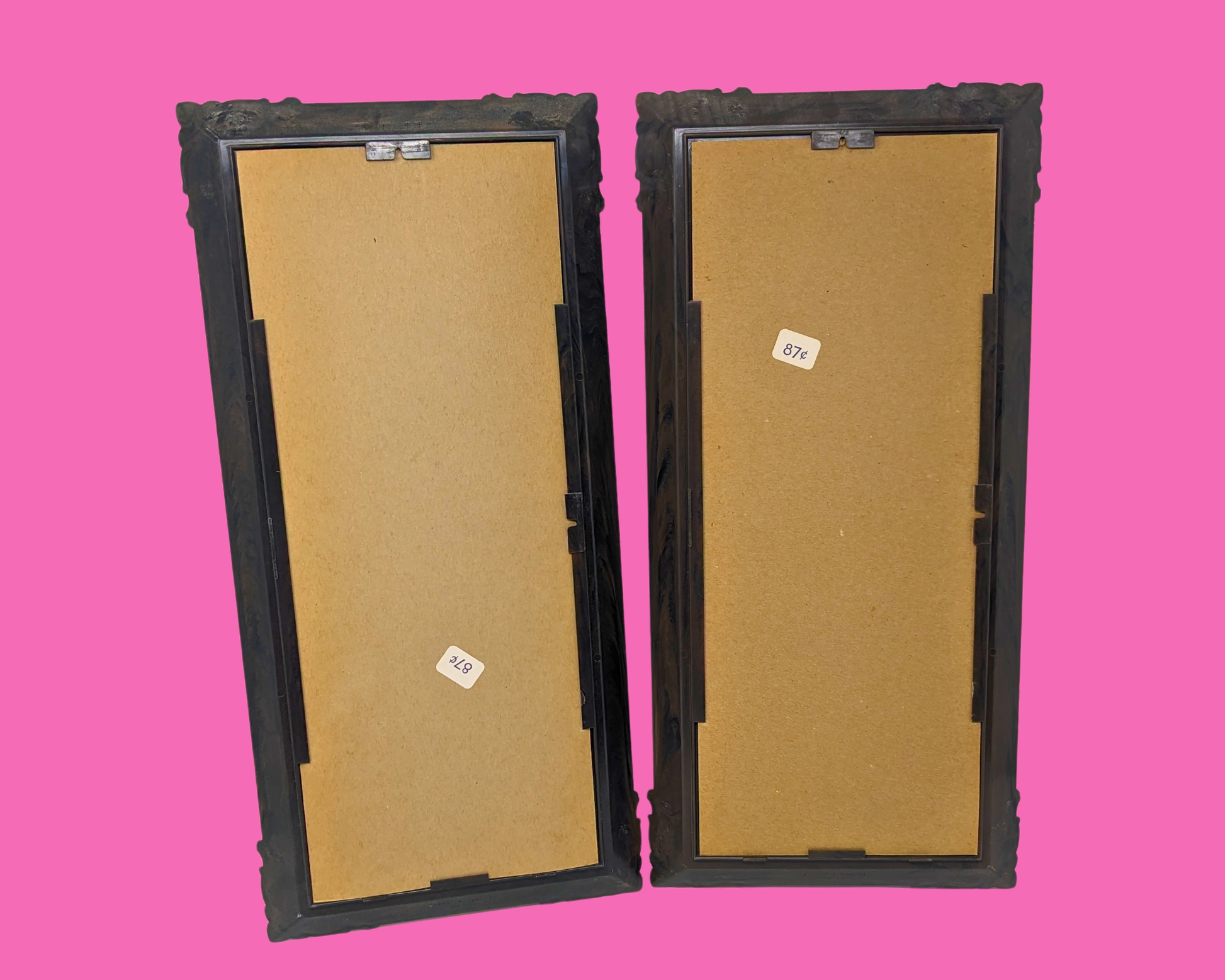 Ensemble de deux cadres en plastique vintage des années 1960, peintures de petites filles sur impressions, fabriqué aux États-Unis