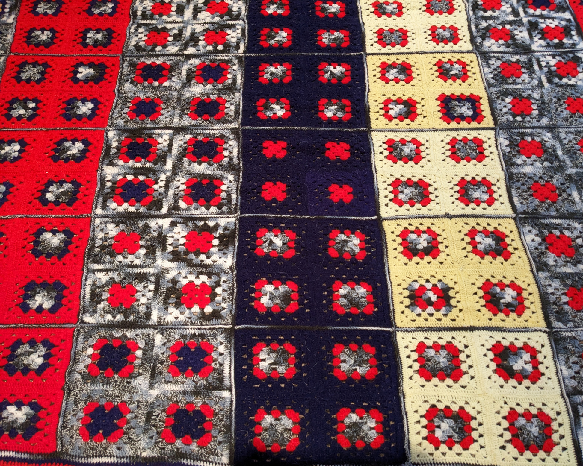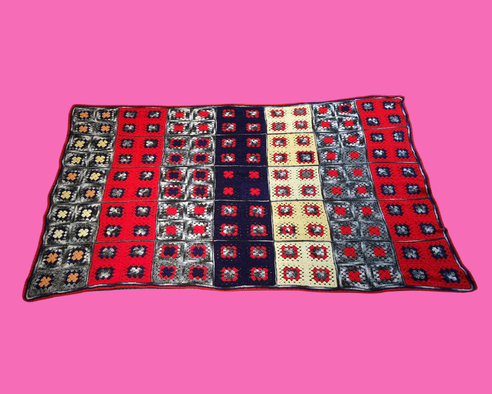 • Couverture en laine colorée vintage des années 1970, crochet léger