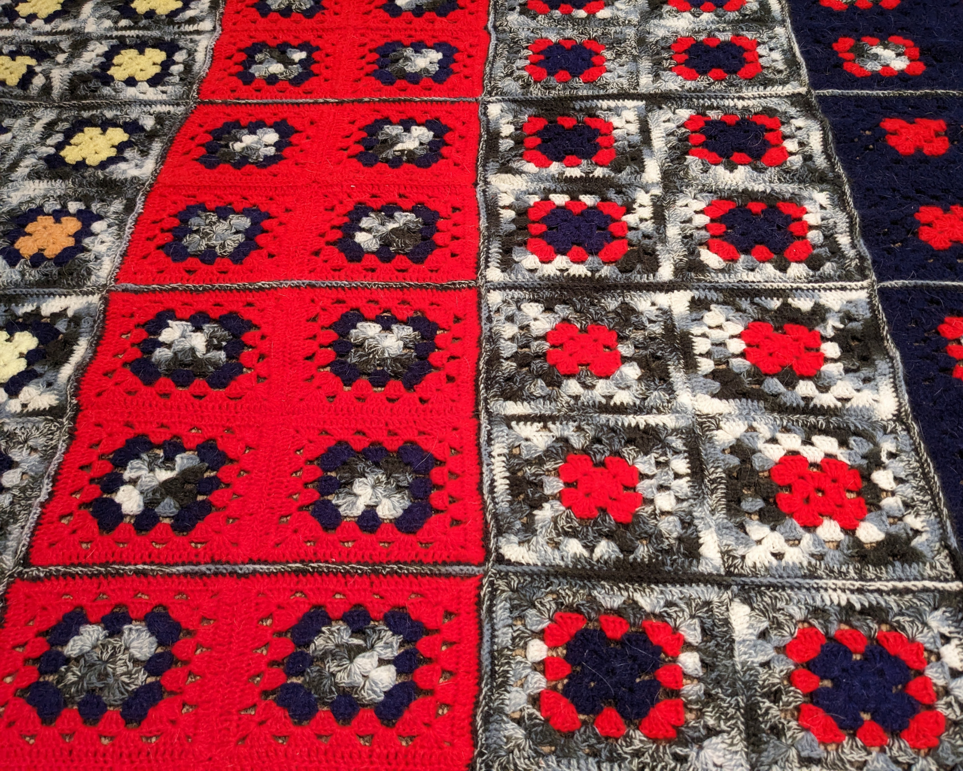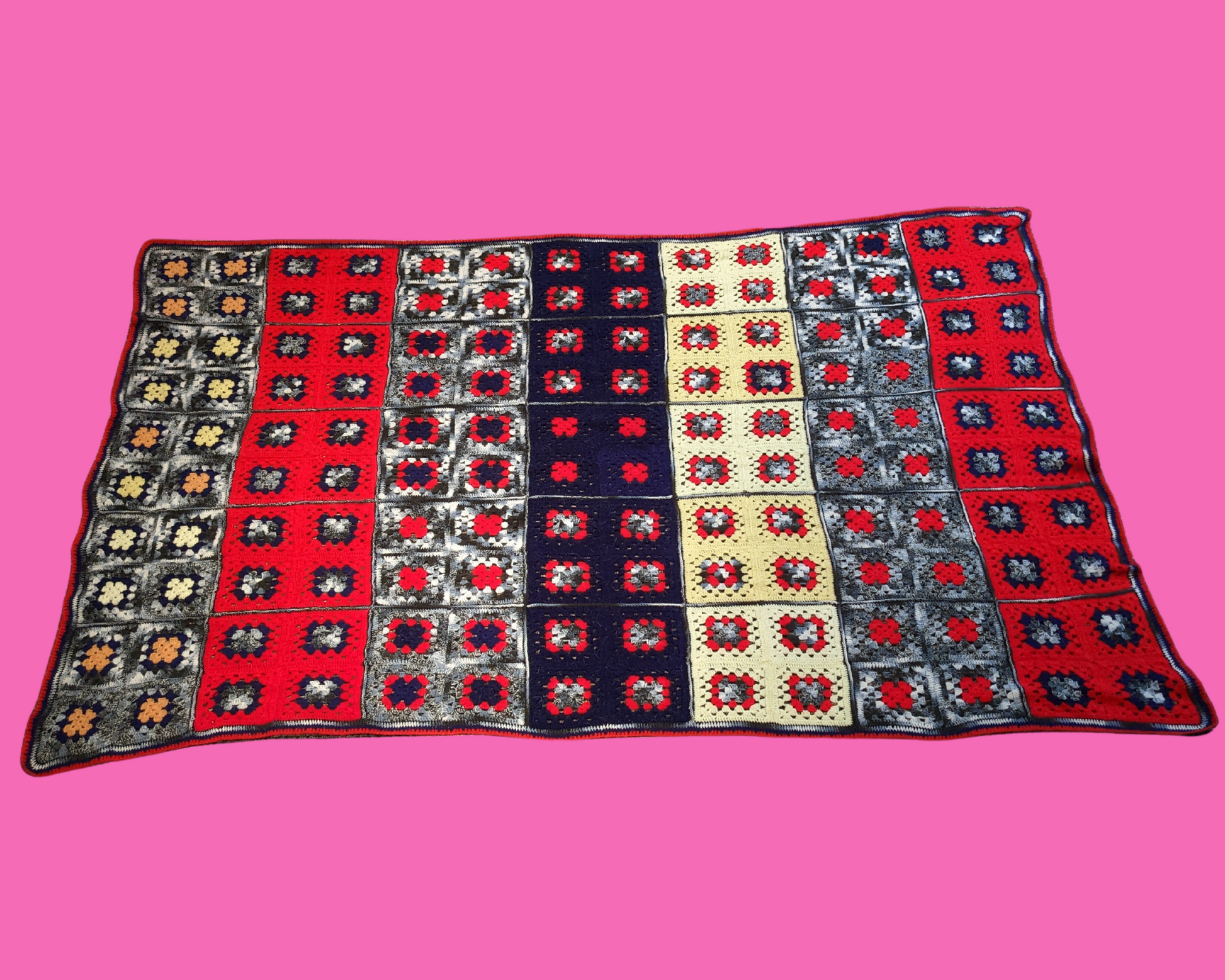 Couverture en laine colorée vintage des années 1970, au crochet léger