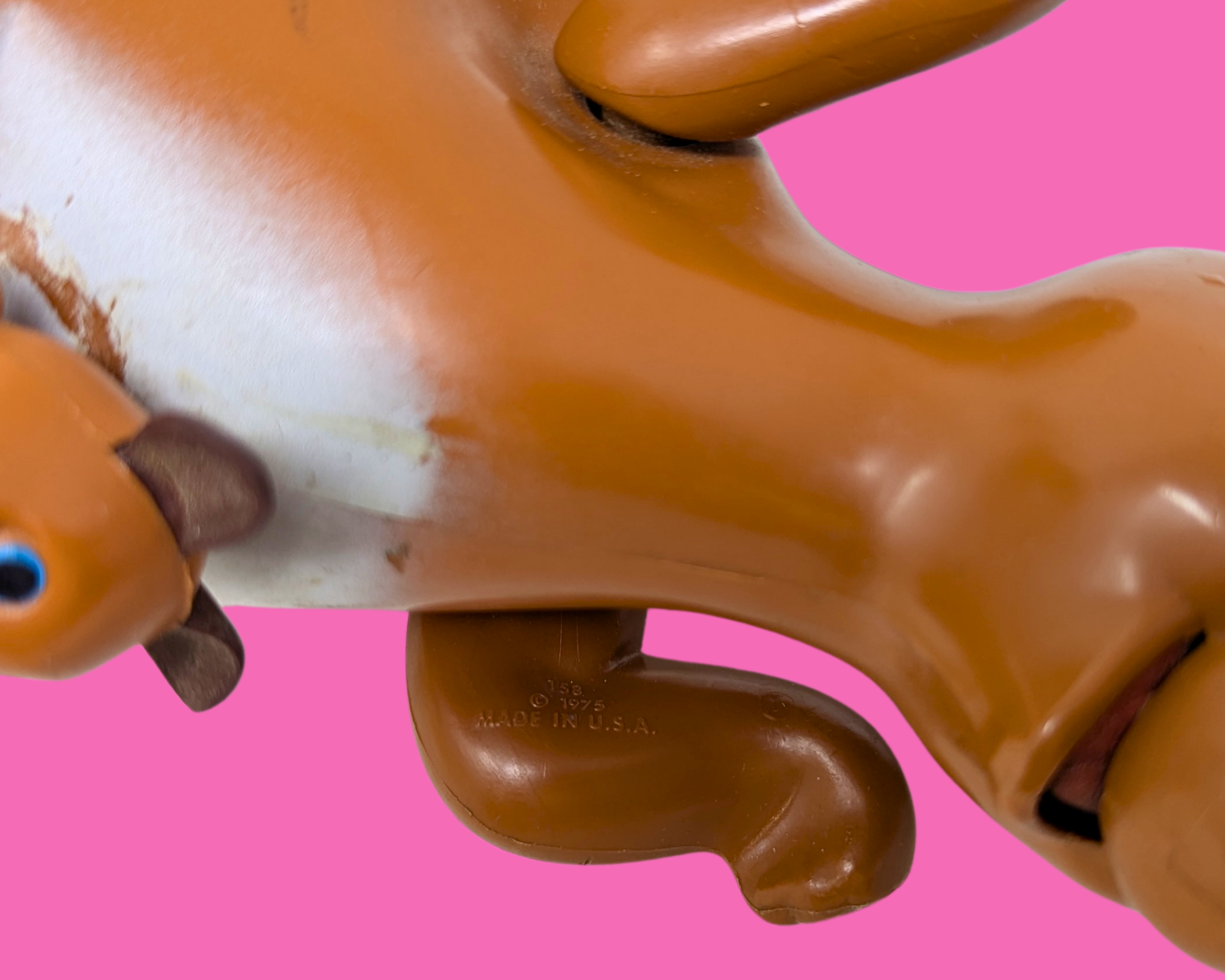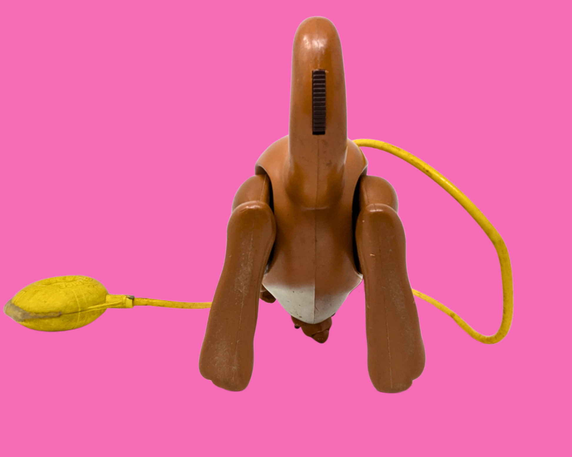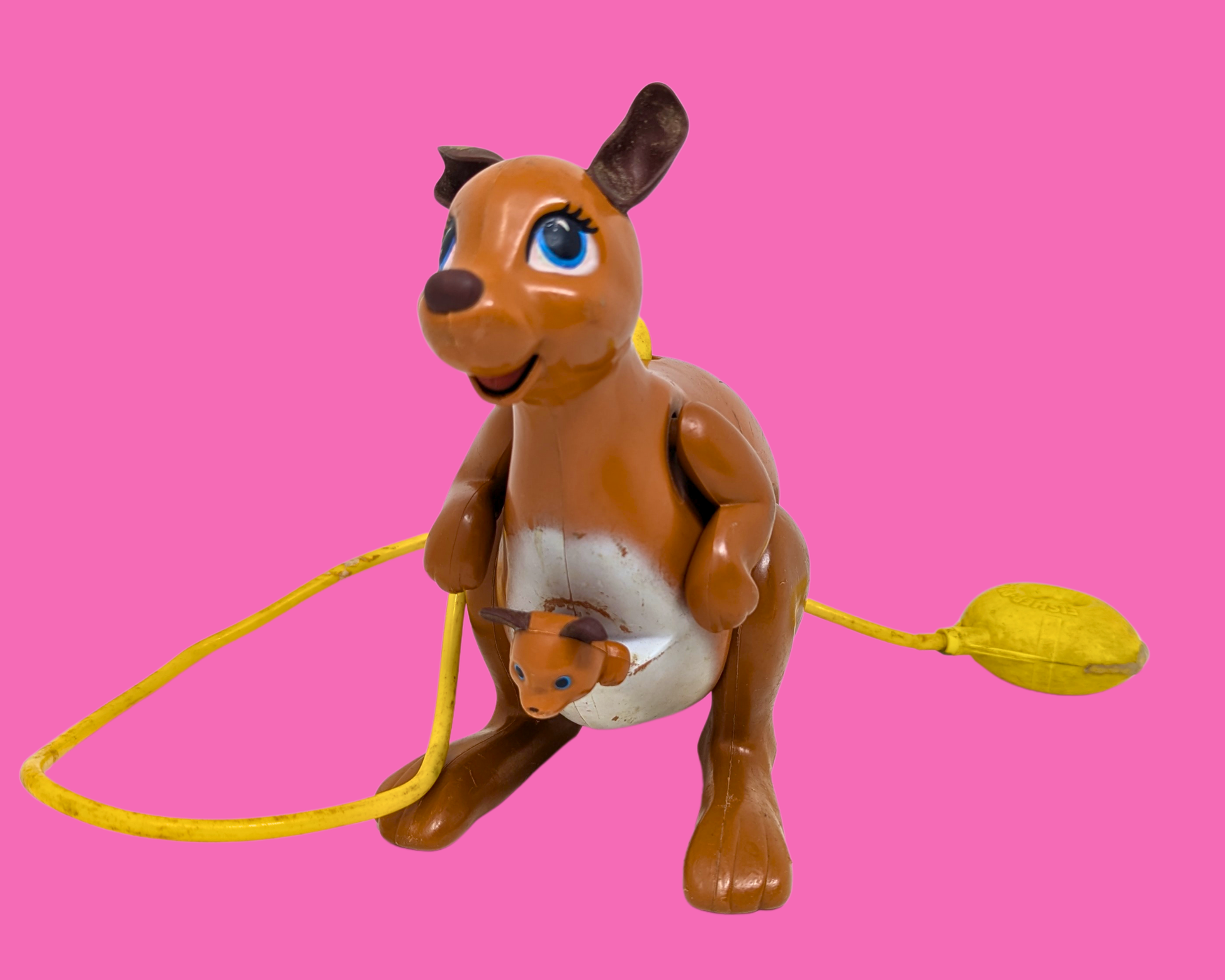 En excellent état vintage. La pompe est percée d'un trou pour empêcher l'air de rentrer, mais le kangourou saute quand même. De la colle a été ajoutée tout autour.