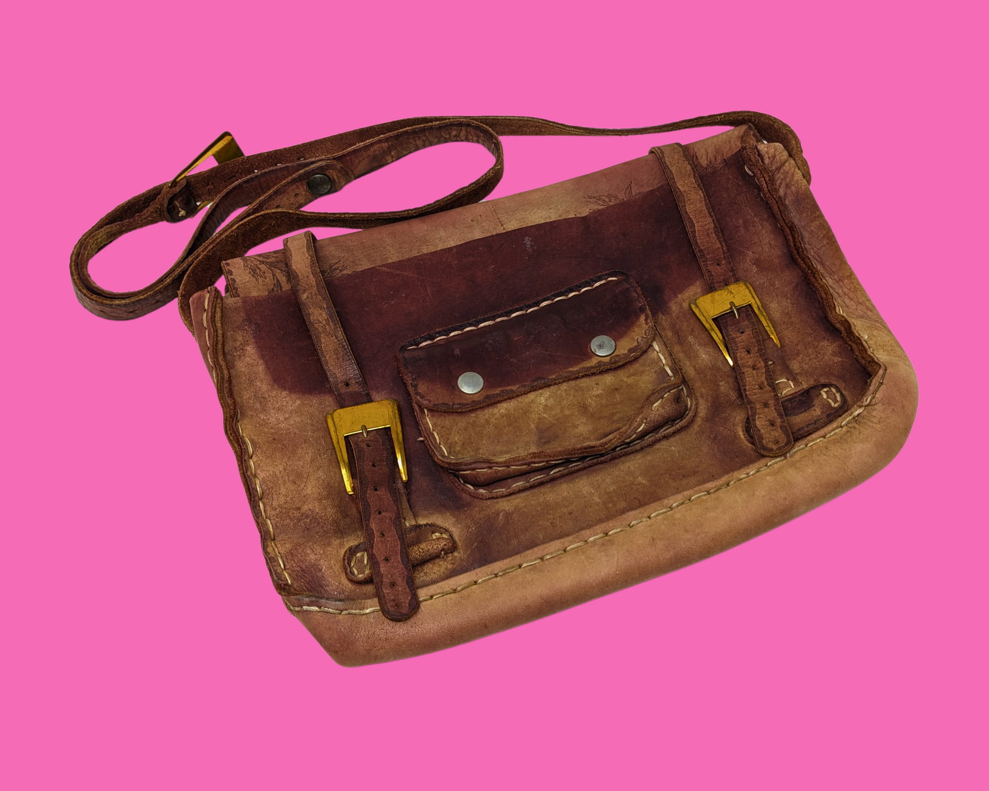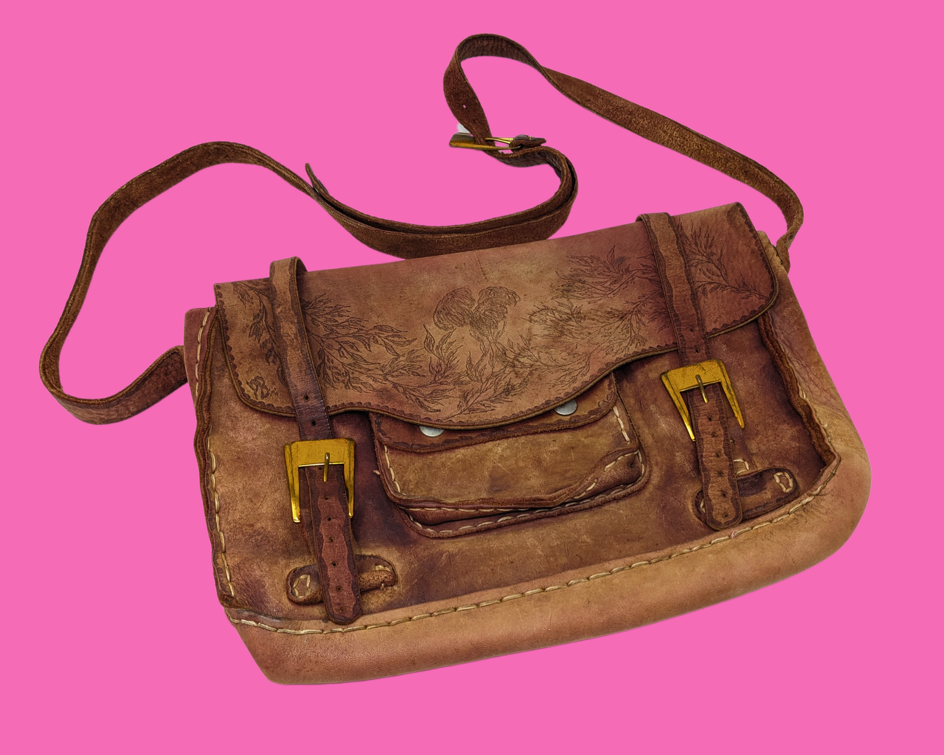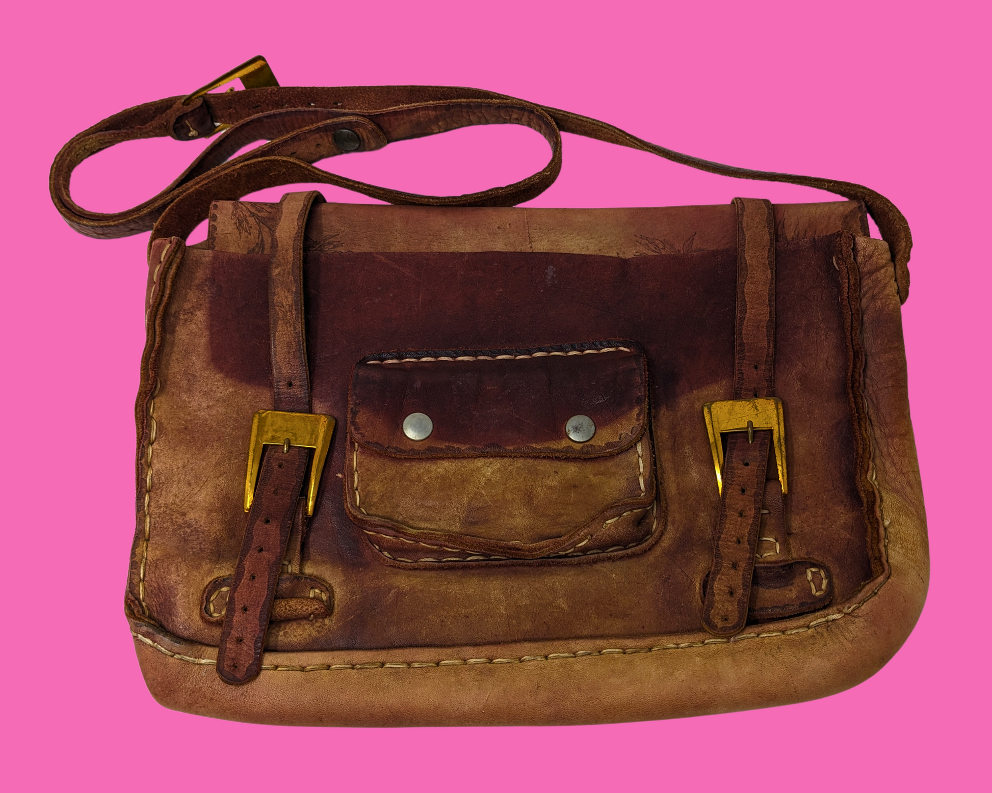 Sac messager vintage en cuir véritable des années 1970
