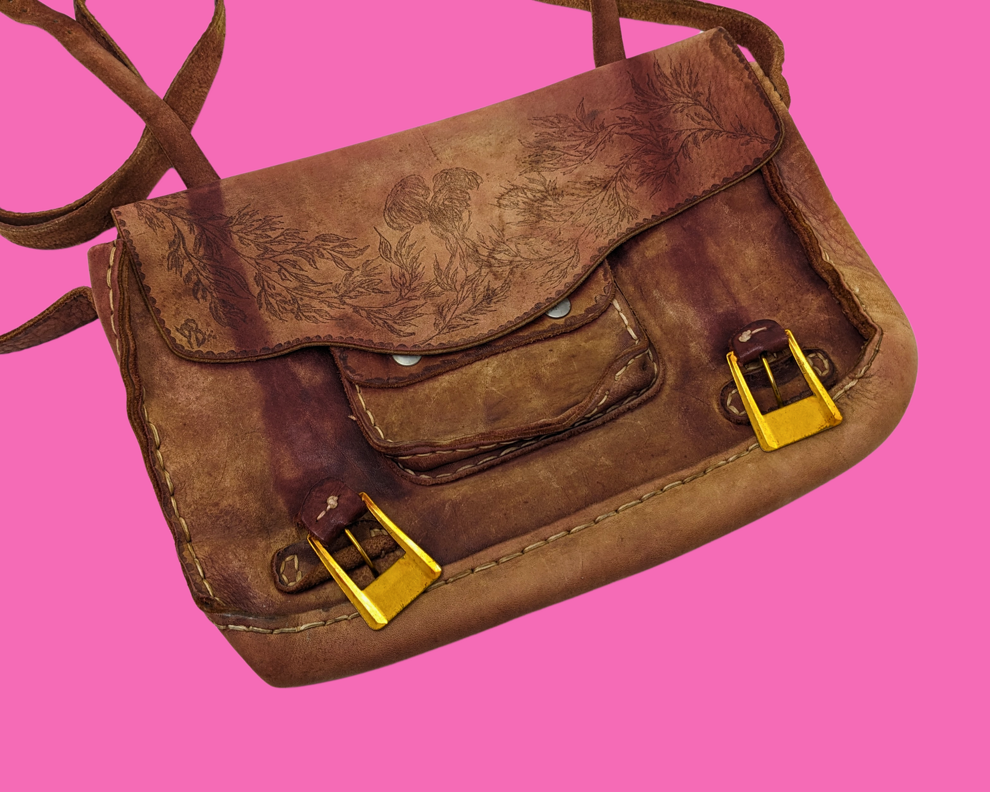 • Sac messager vintage en cuir véritable des années 1970