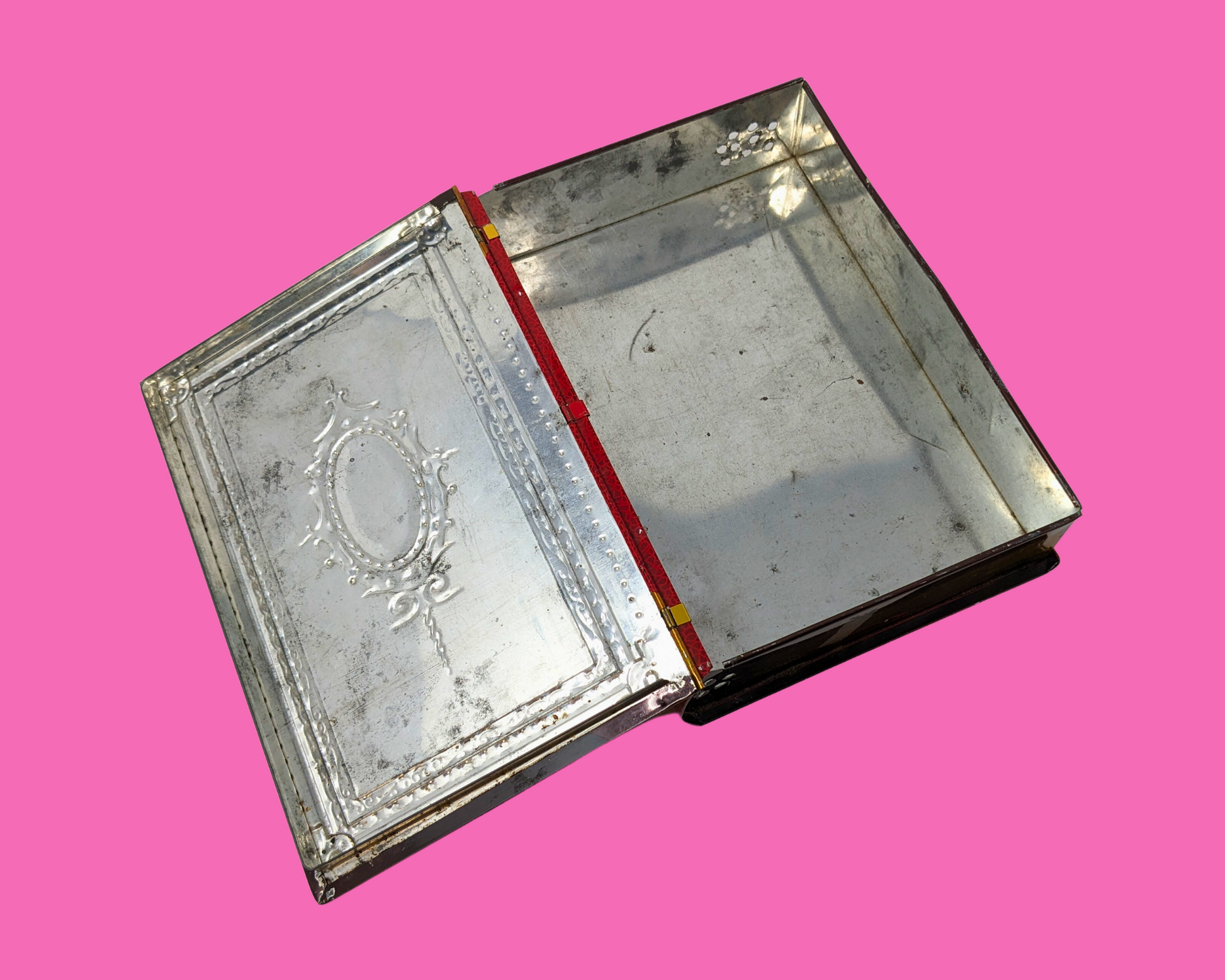 Boîte métallique rouge vintage Gourmets Delight des années 1970, en forme de livre