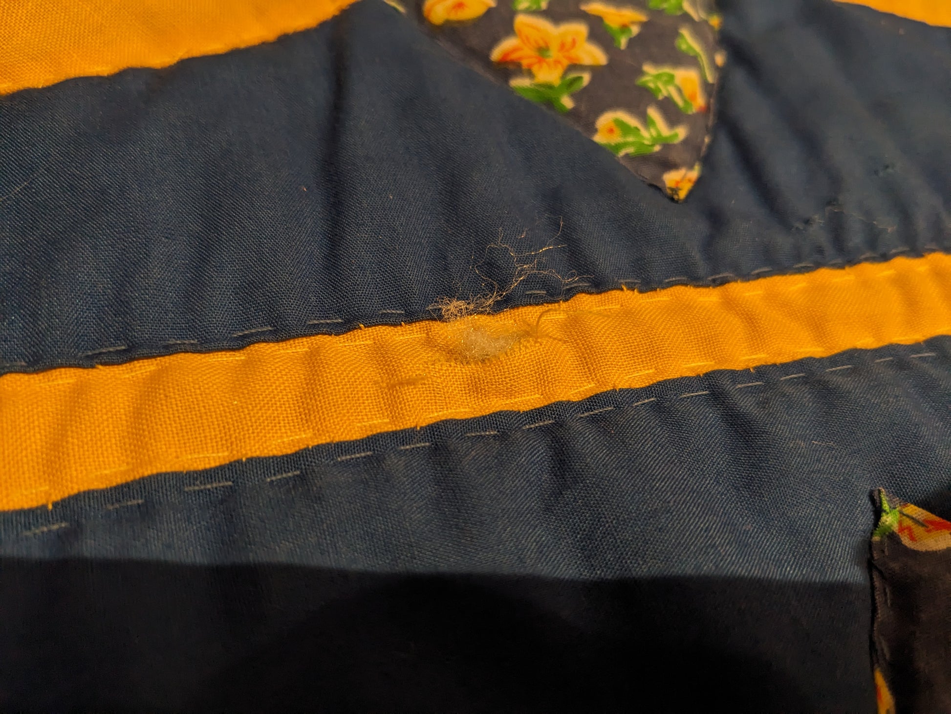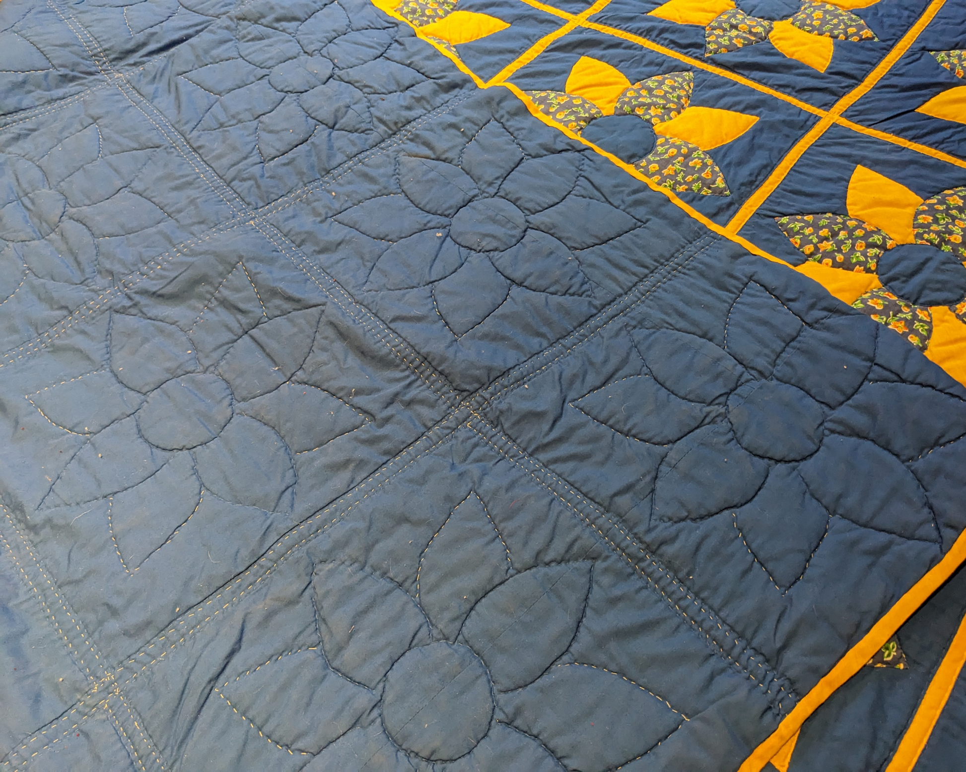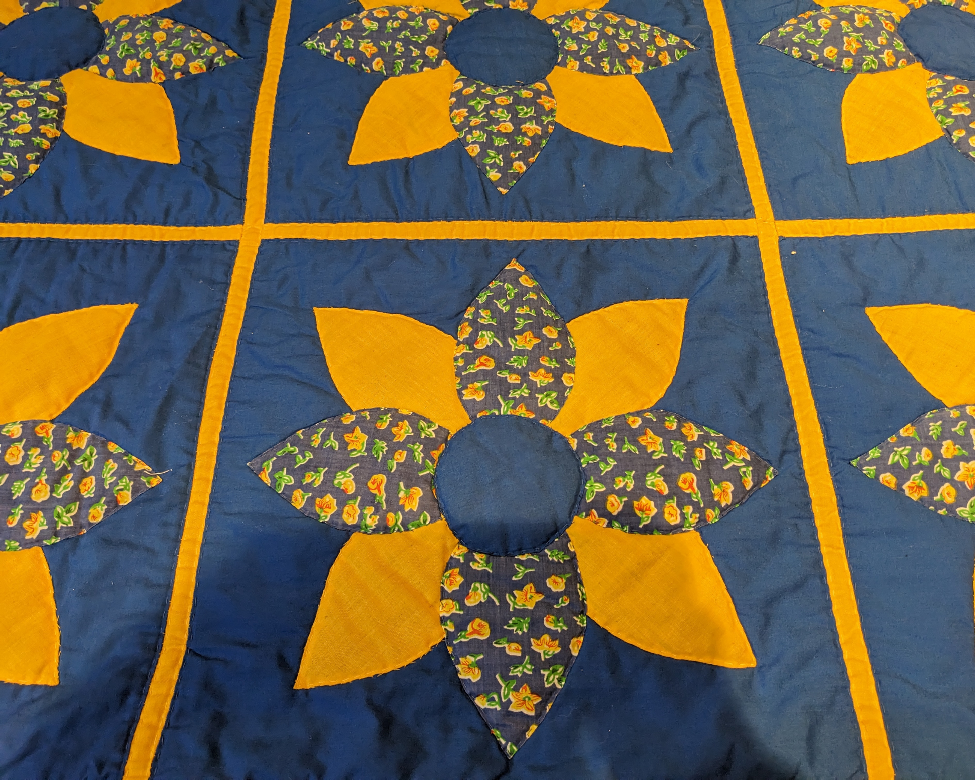 • Énorme couverture de couette bleue et jaune vintage des années 1970
