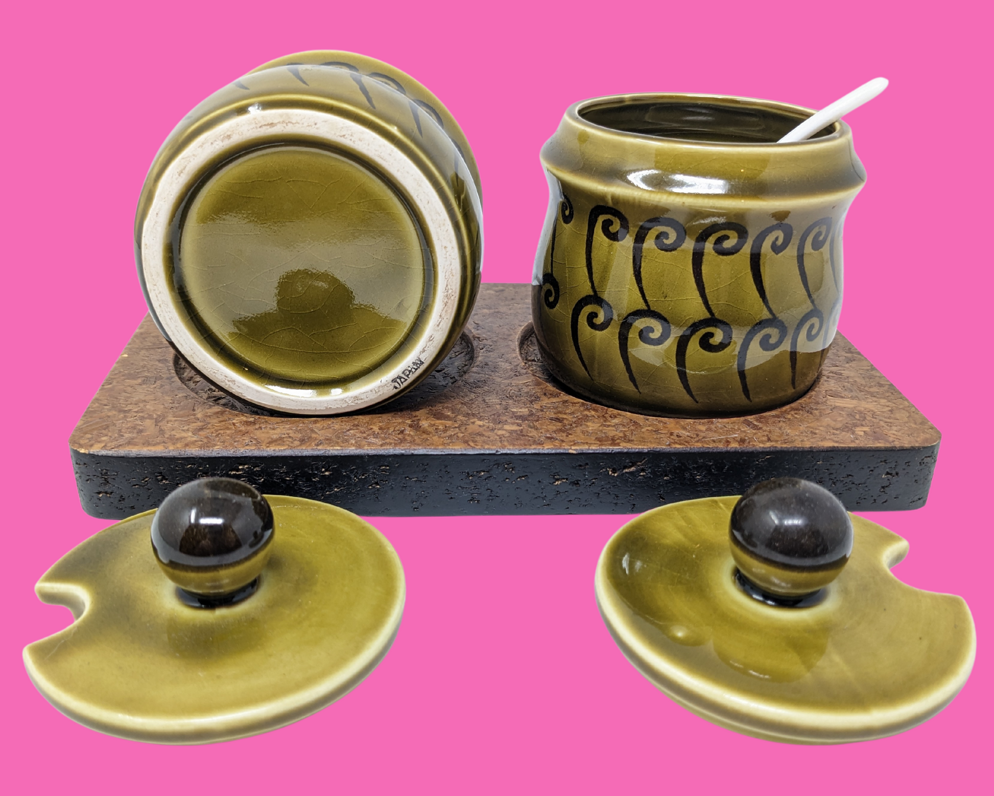 Japon vintage des années 1970, ensemble de deux bols de service verts